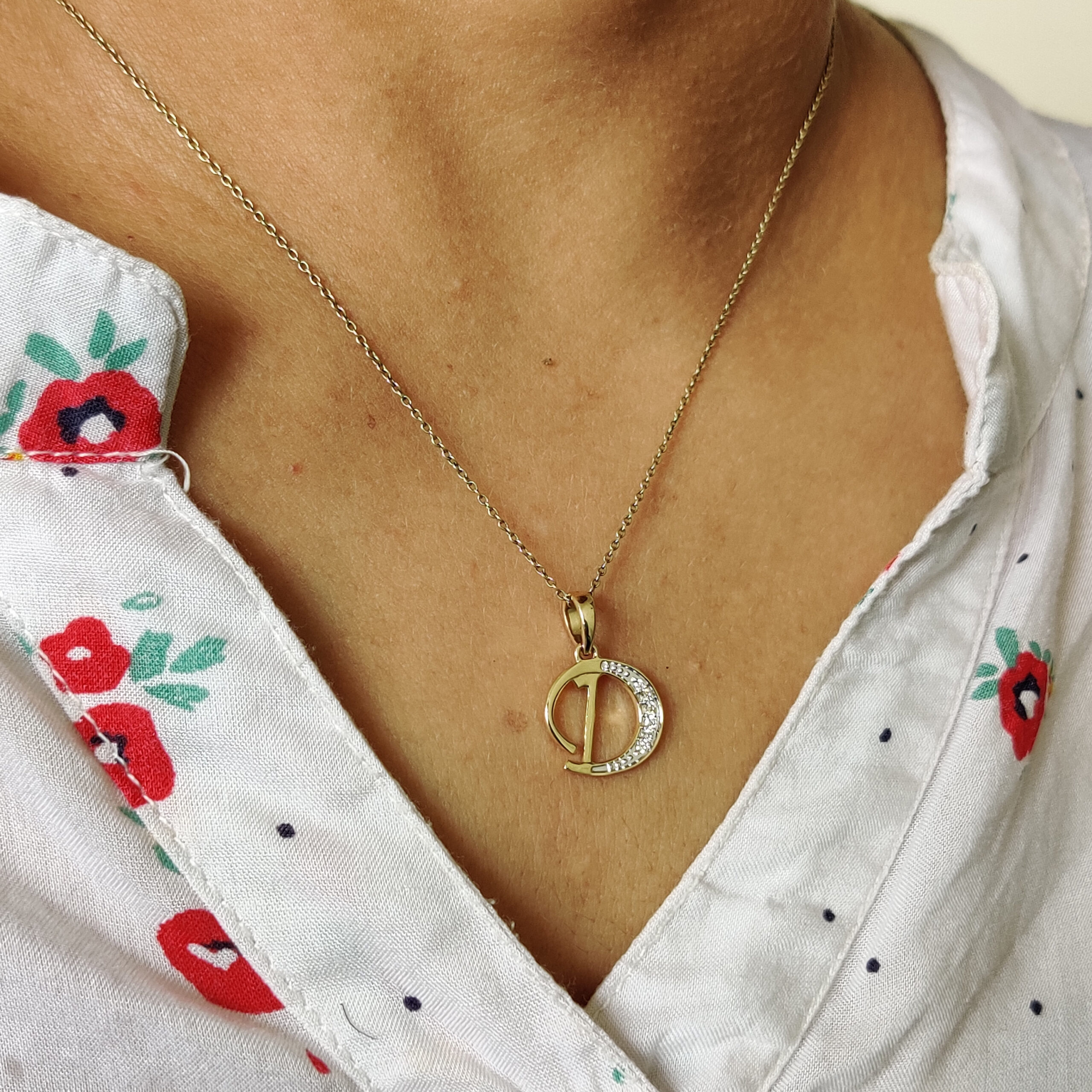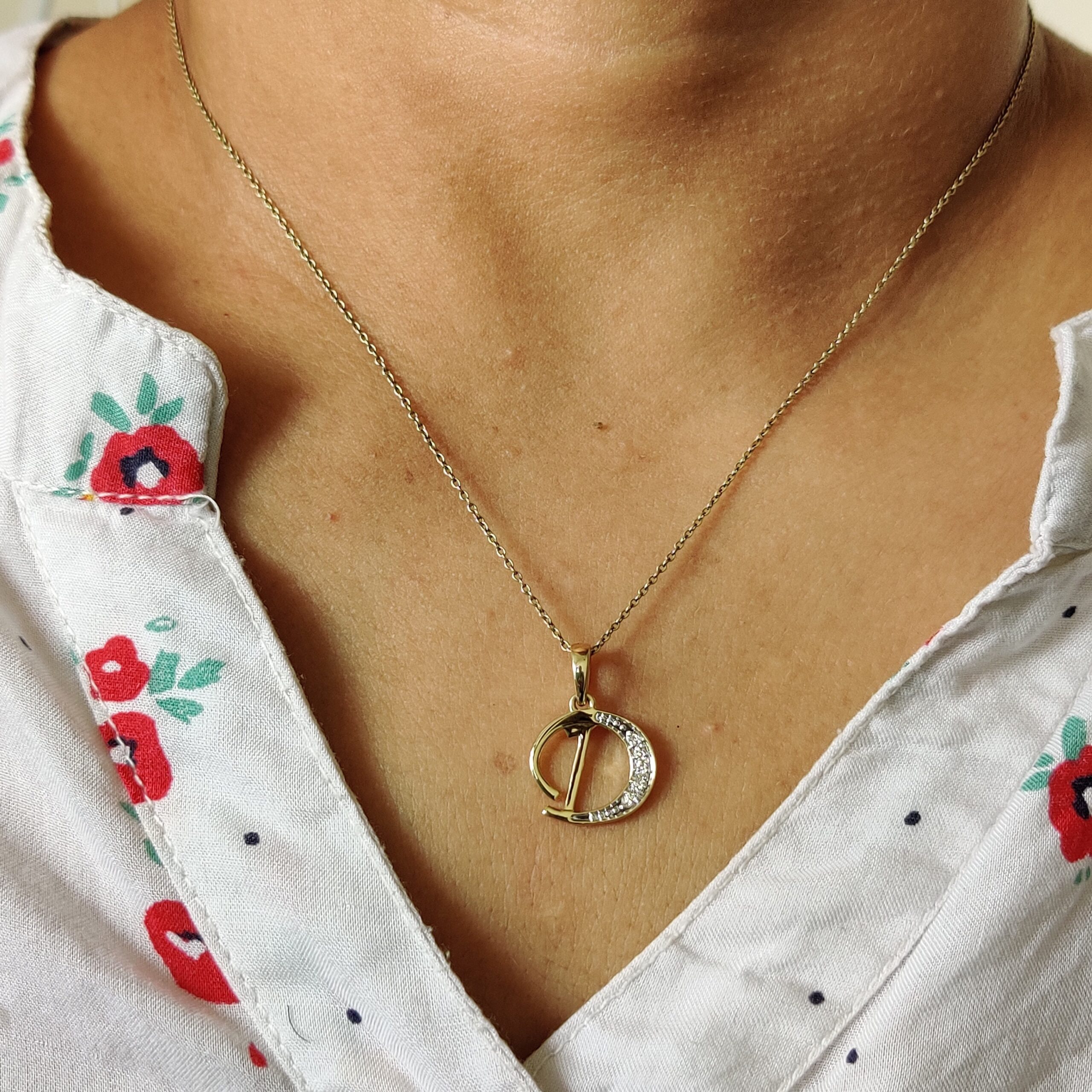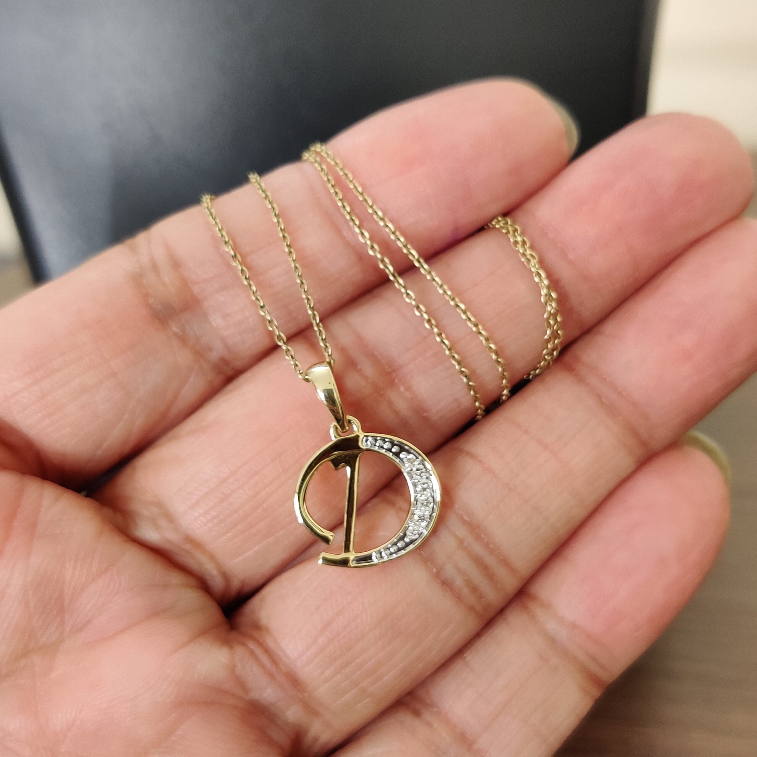 This is an exquisite initial diamond charm pendant set in 14K Solid Gold. An elegant design, perfect for any occassion. ITEM DETAILS: ✓ Letter : D ✓ Gold Kt: Solid 14K Yellow Gold ✓ 14 K Gold Weight : 1.28…