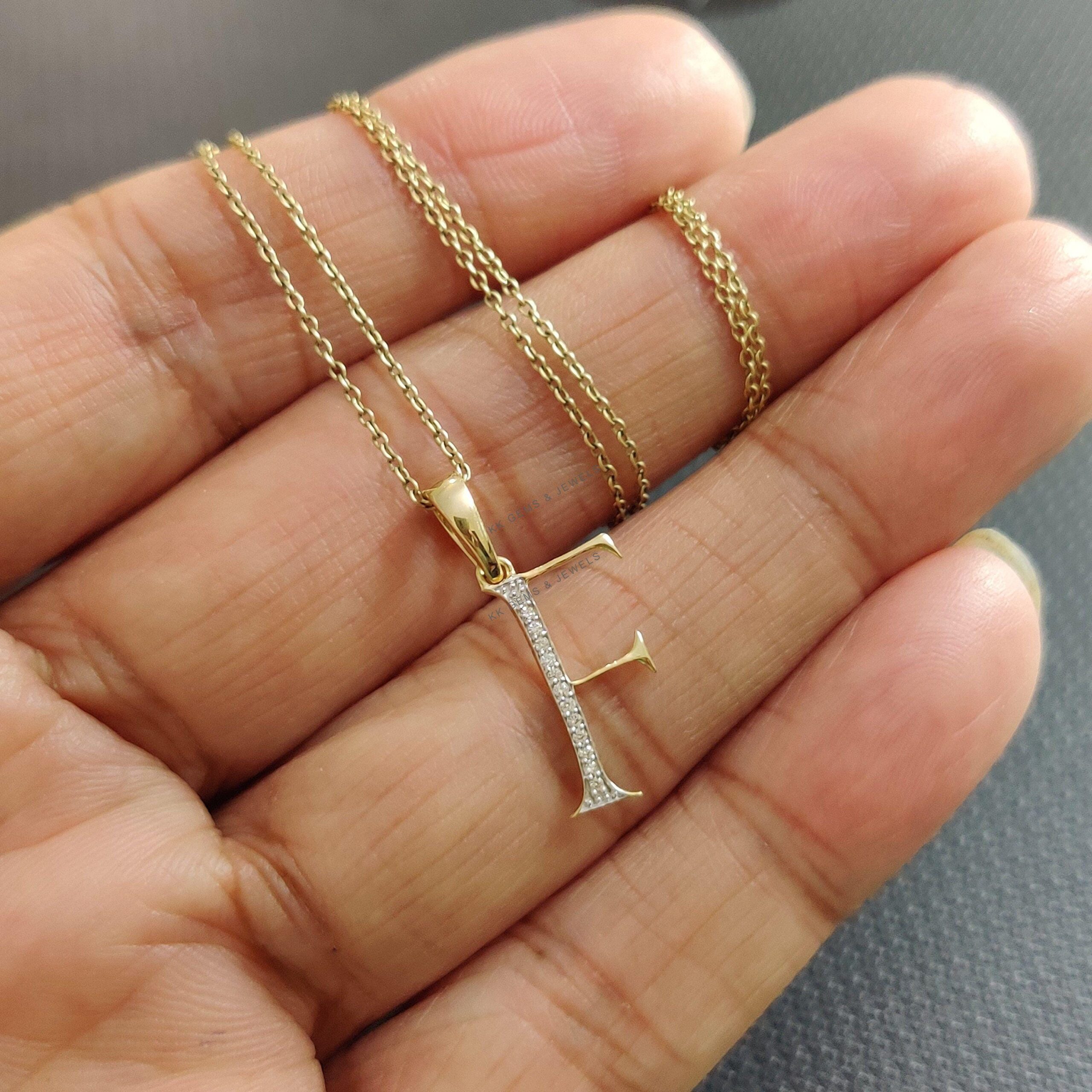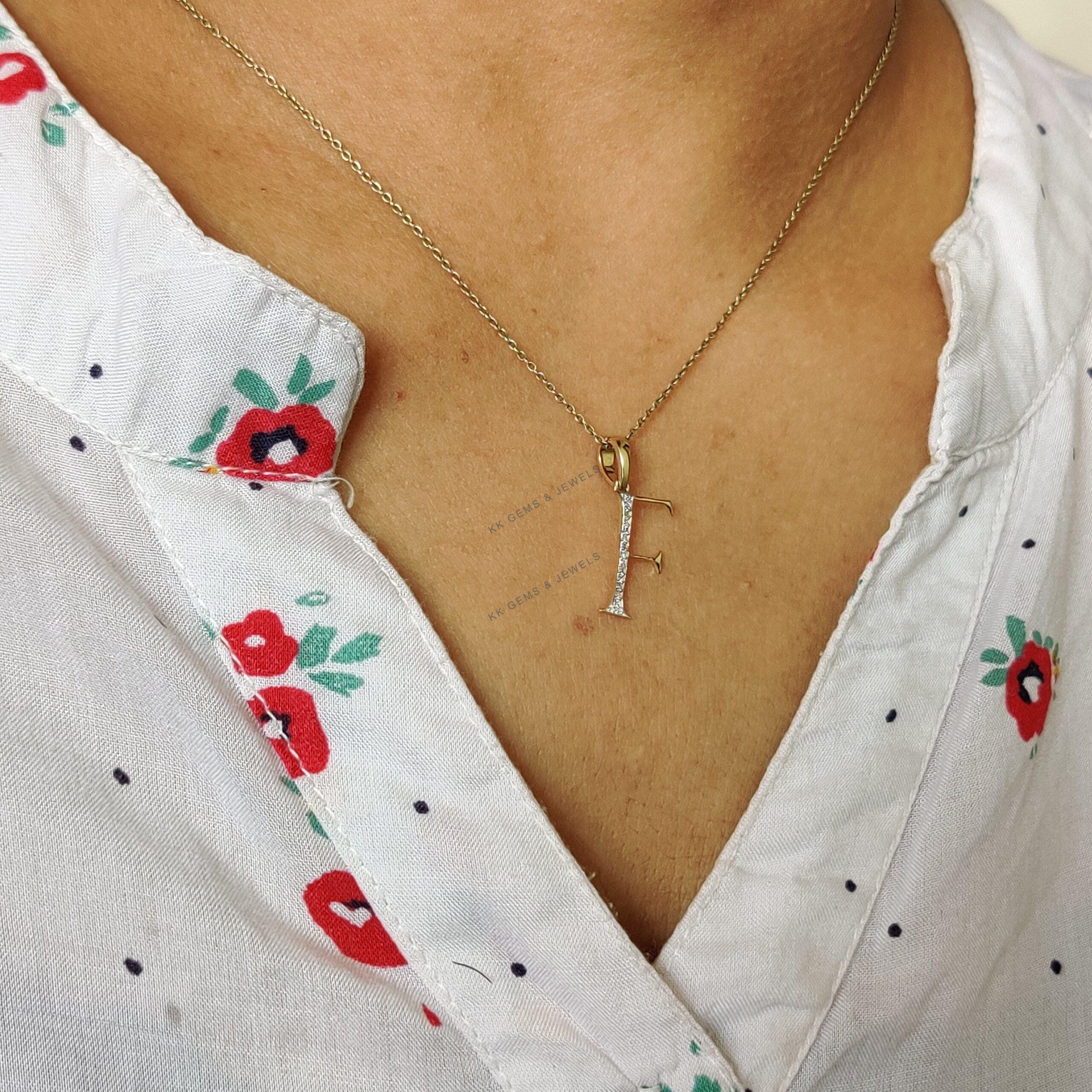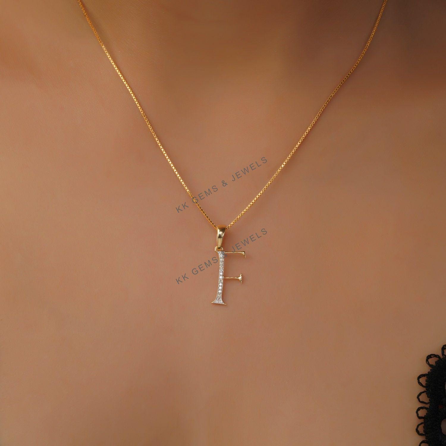 Initial F Pendant Set in 14K Solid Gold, Alphabet Charm Pendant with Diamonds