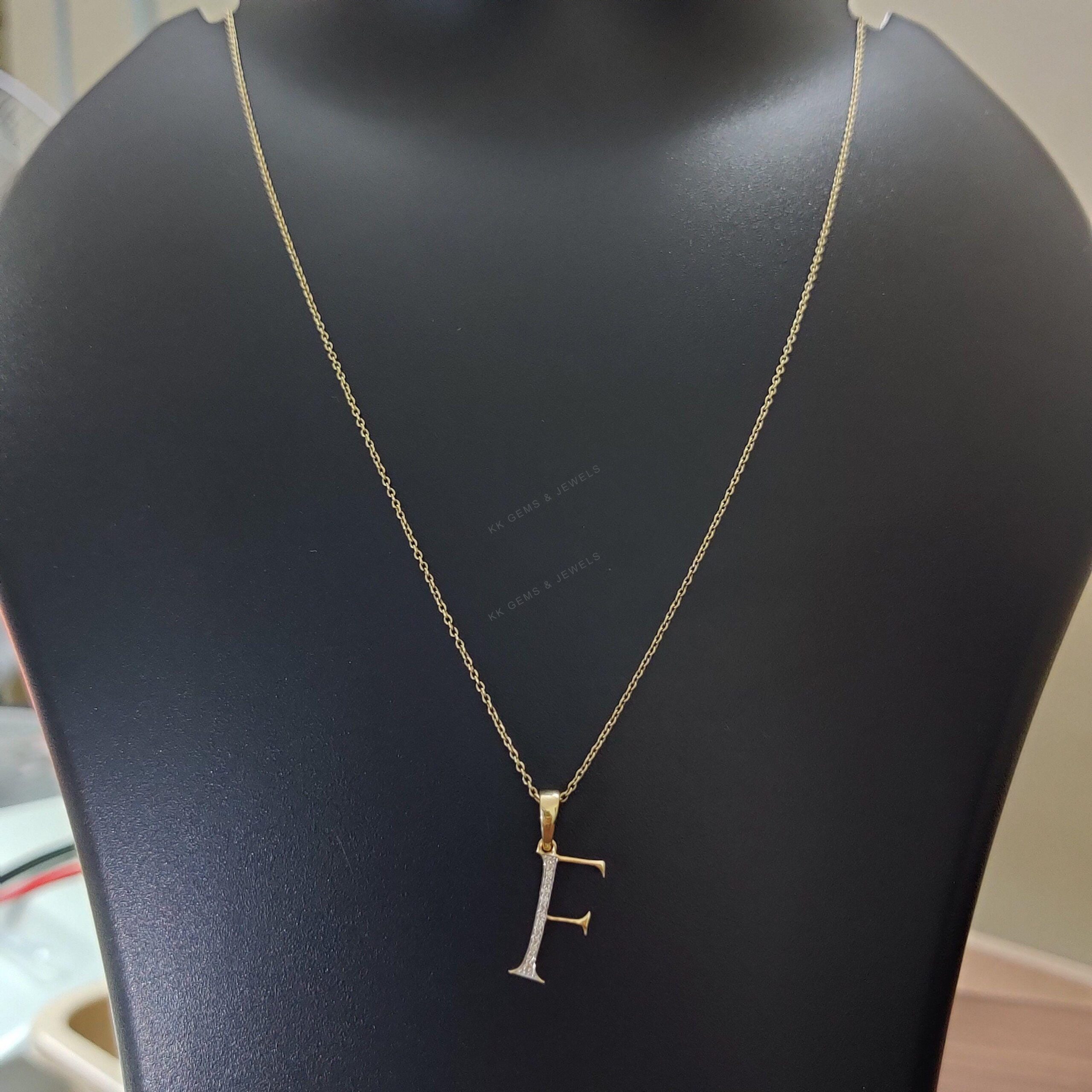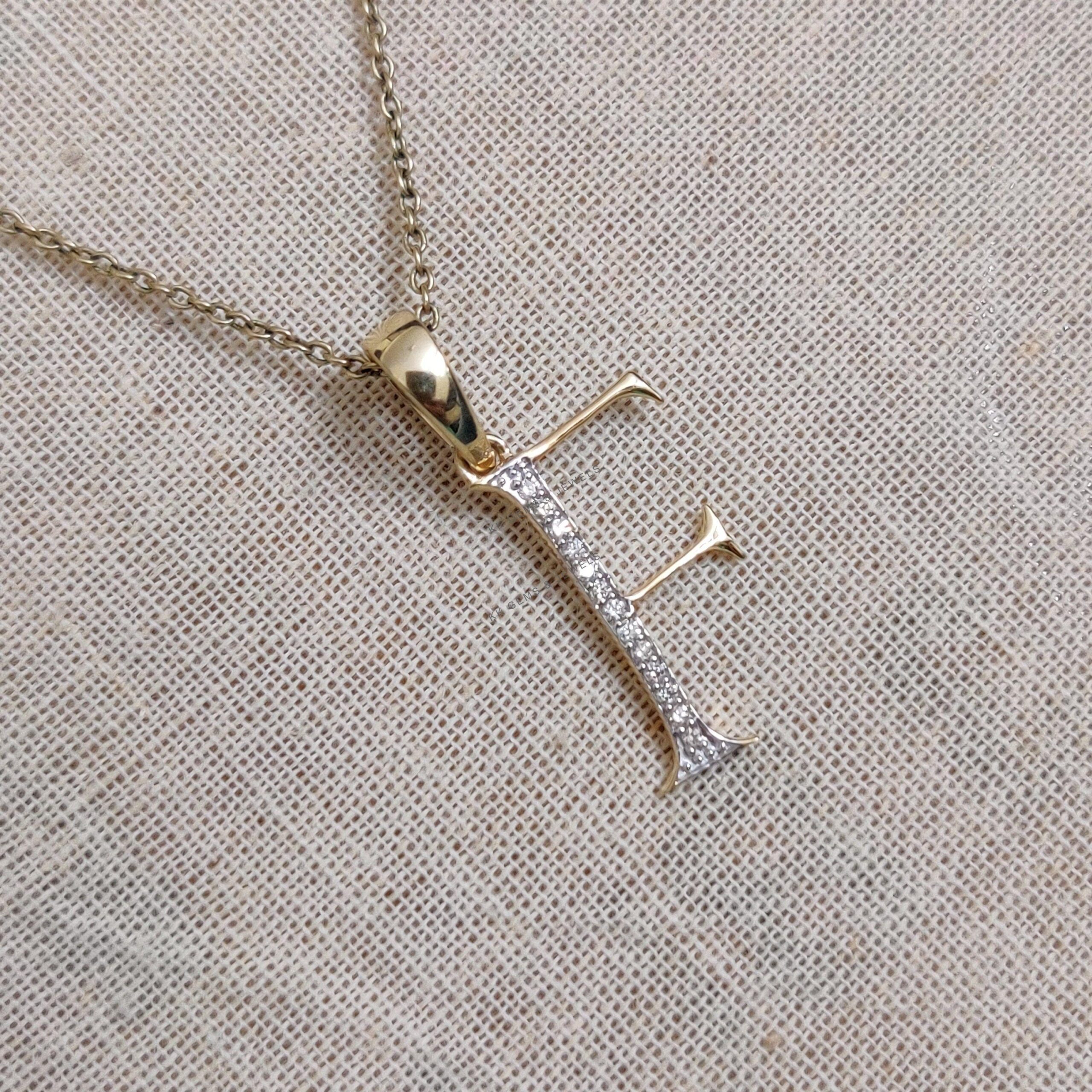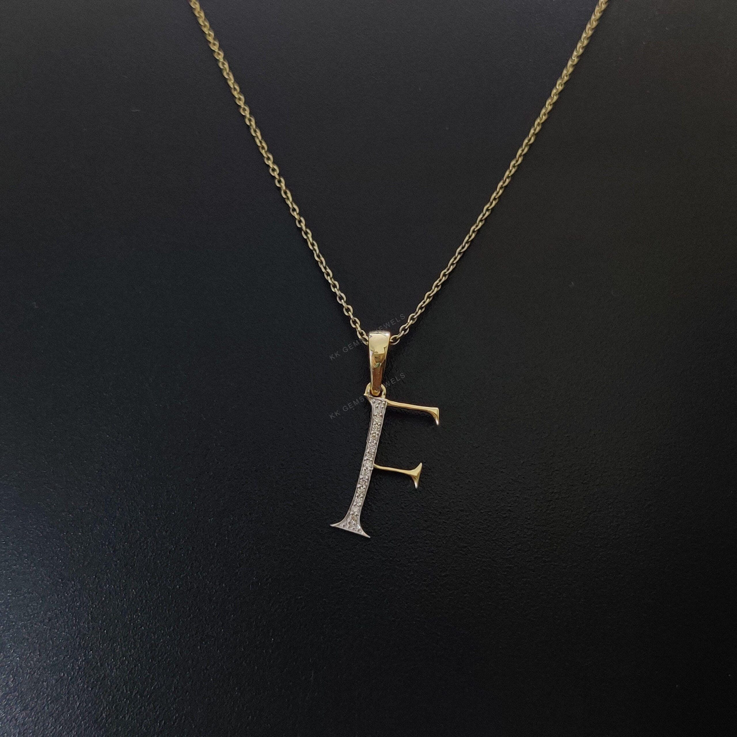 Initial F Pendant Set in 14K Solid Gold, Alphabet Charm Pendant with Diamonds
