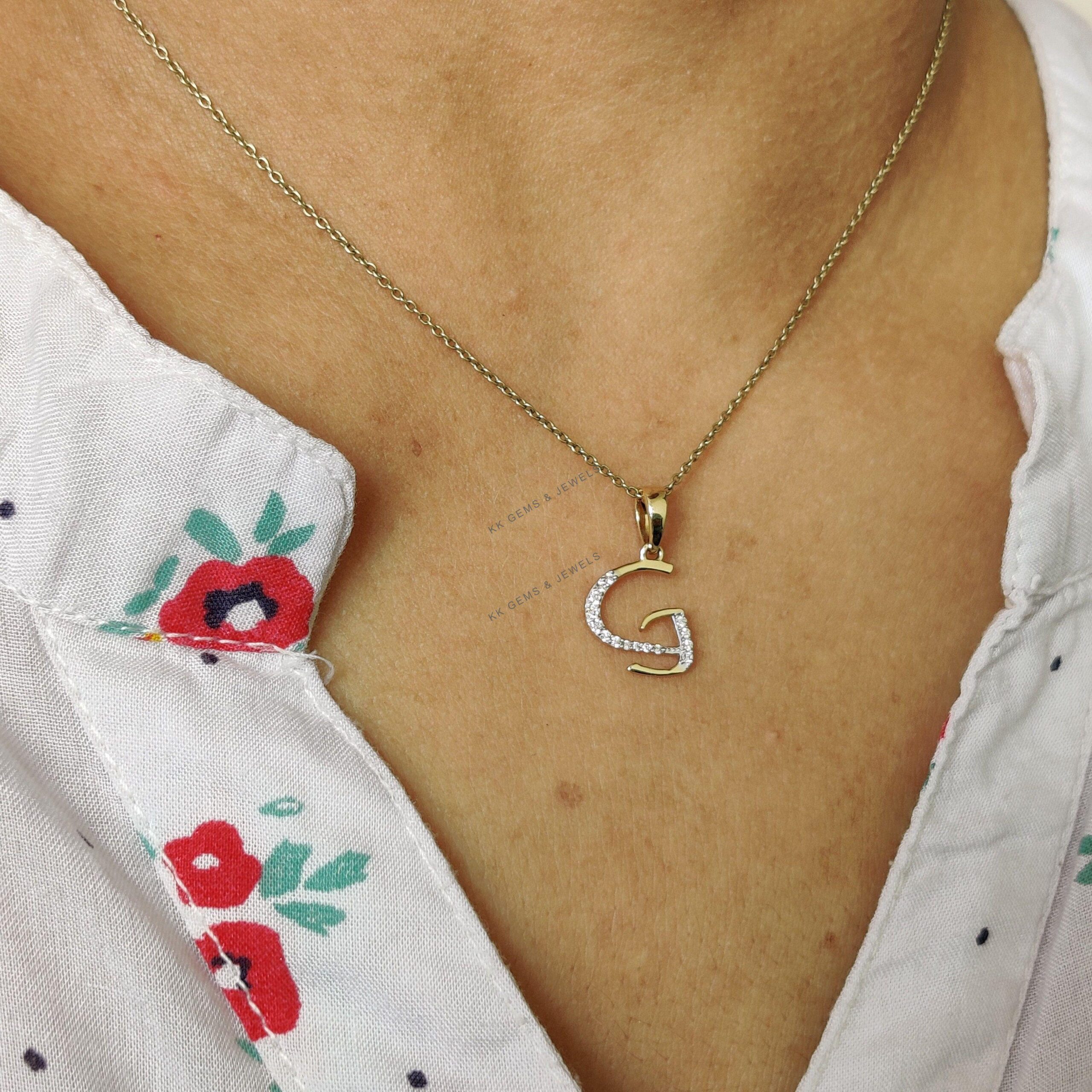This is an exquisite initial diamond charm pendant set in 14K Solid Gold. An elegant design, perfect for any occassion ITEM DETAILS: ✓ Letter : G ✓ Gold Kt: Solid 14K Yellow Gold ✓ 14 K Gold Weight : 0.68…