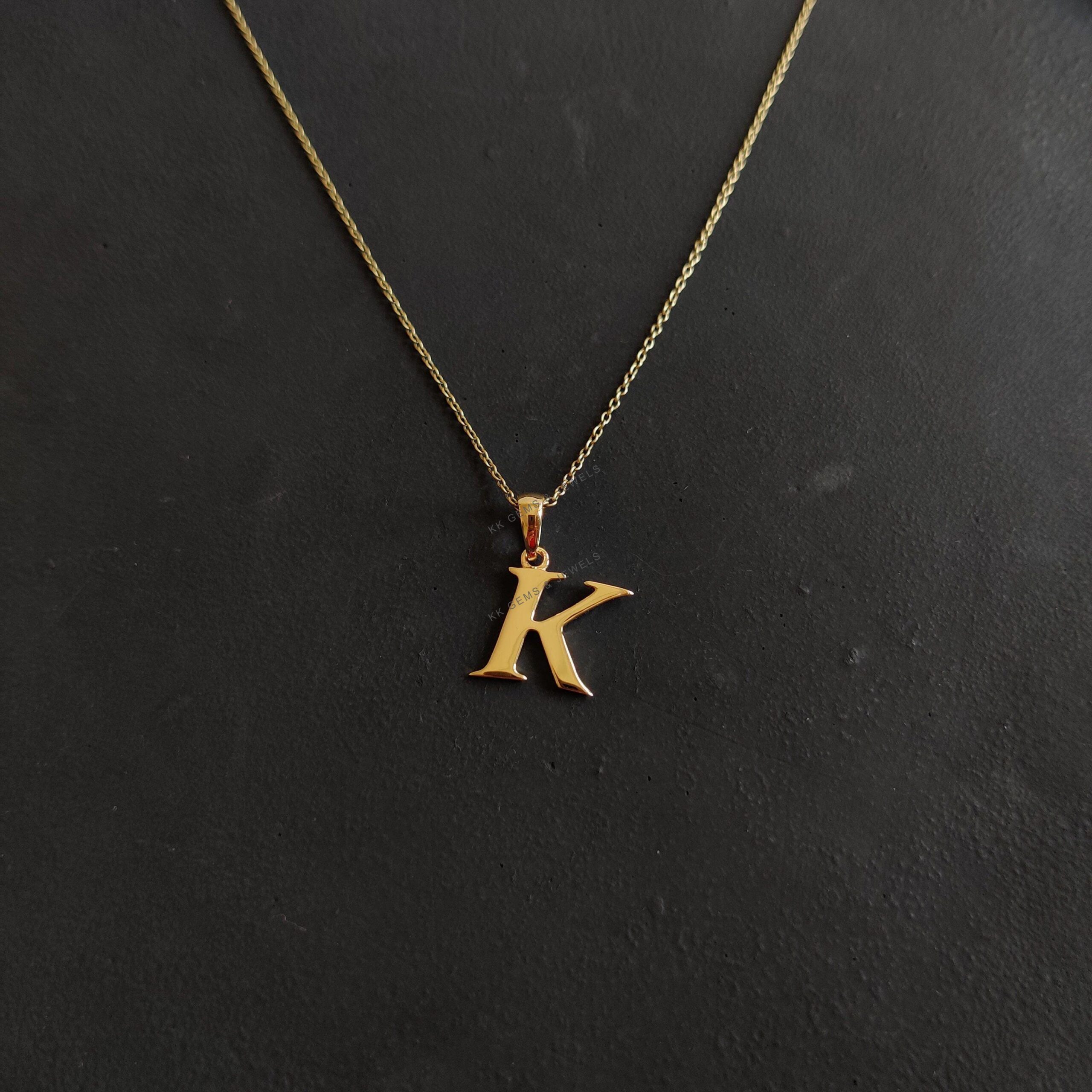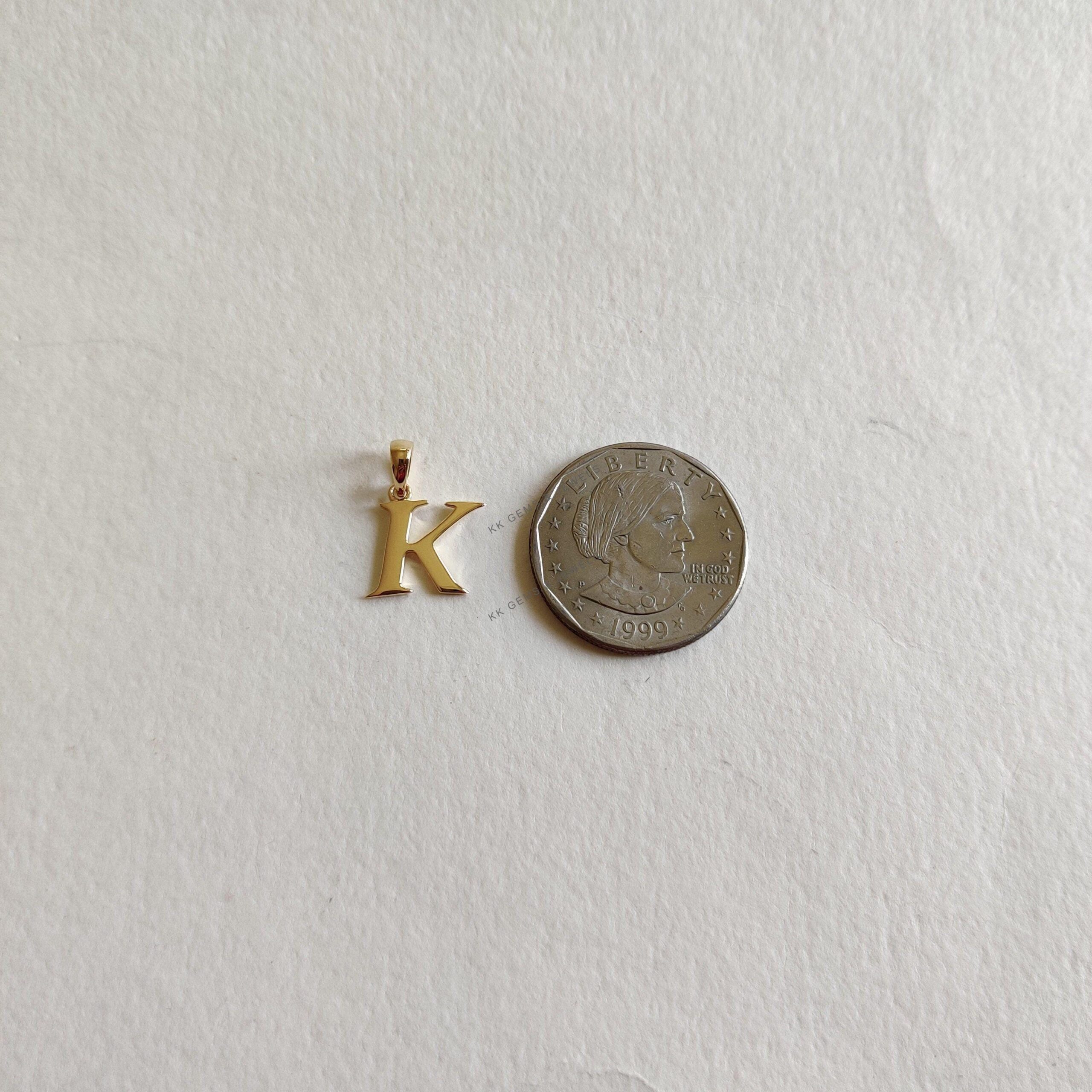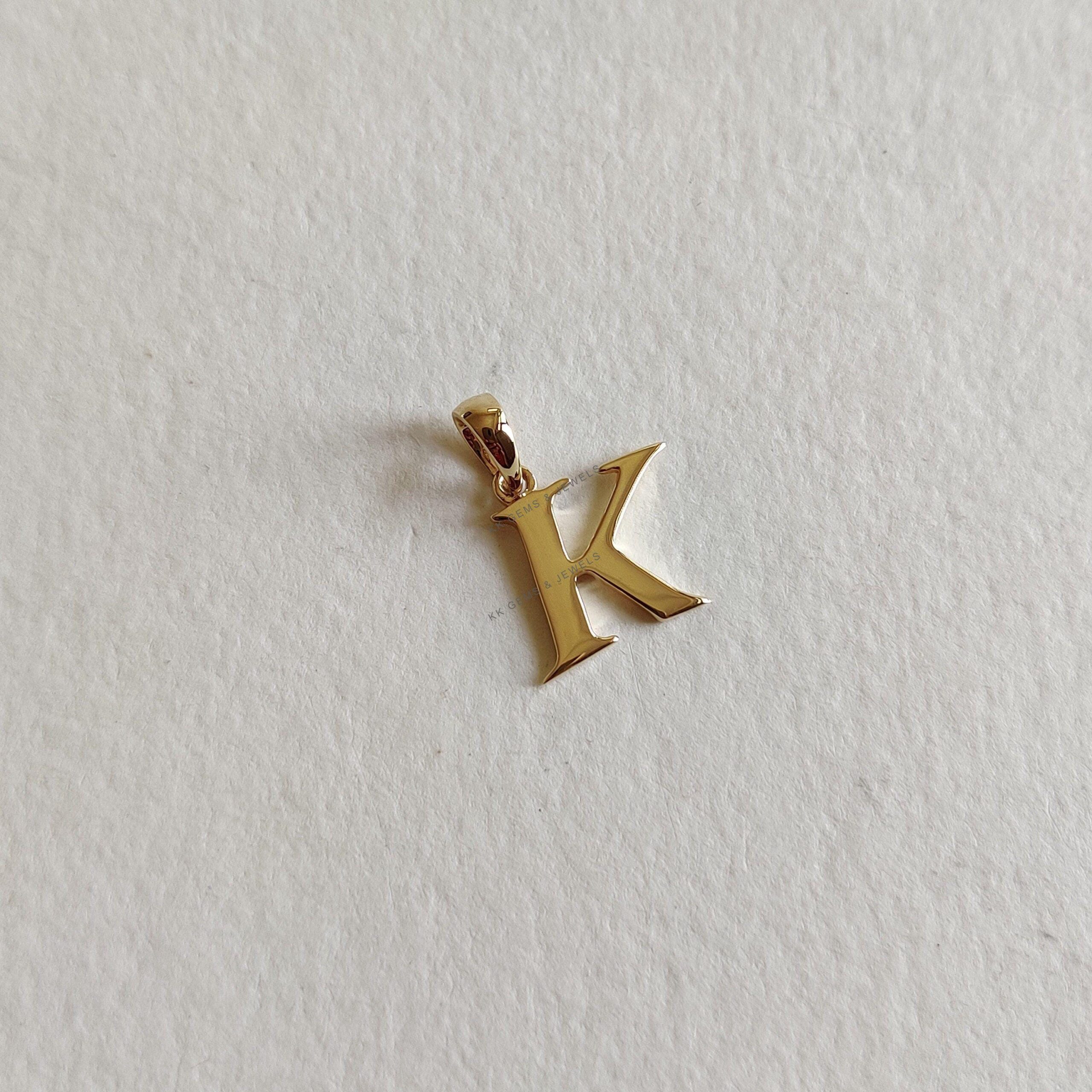 This is an exquisite initial charm pendant set in 14K Solid Gold. An elegant design, perfect for any occassion. ITEM DETAILS: ✓ Letter : K ✓ Gold Kt: Solid 14K Yellow Gold ✓ 14 K Gold Weight : 1.23 grams…
