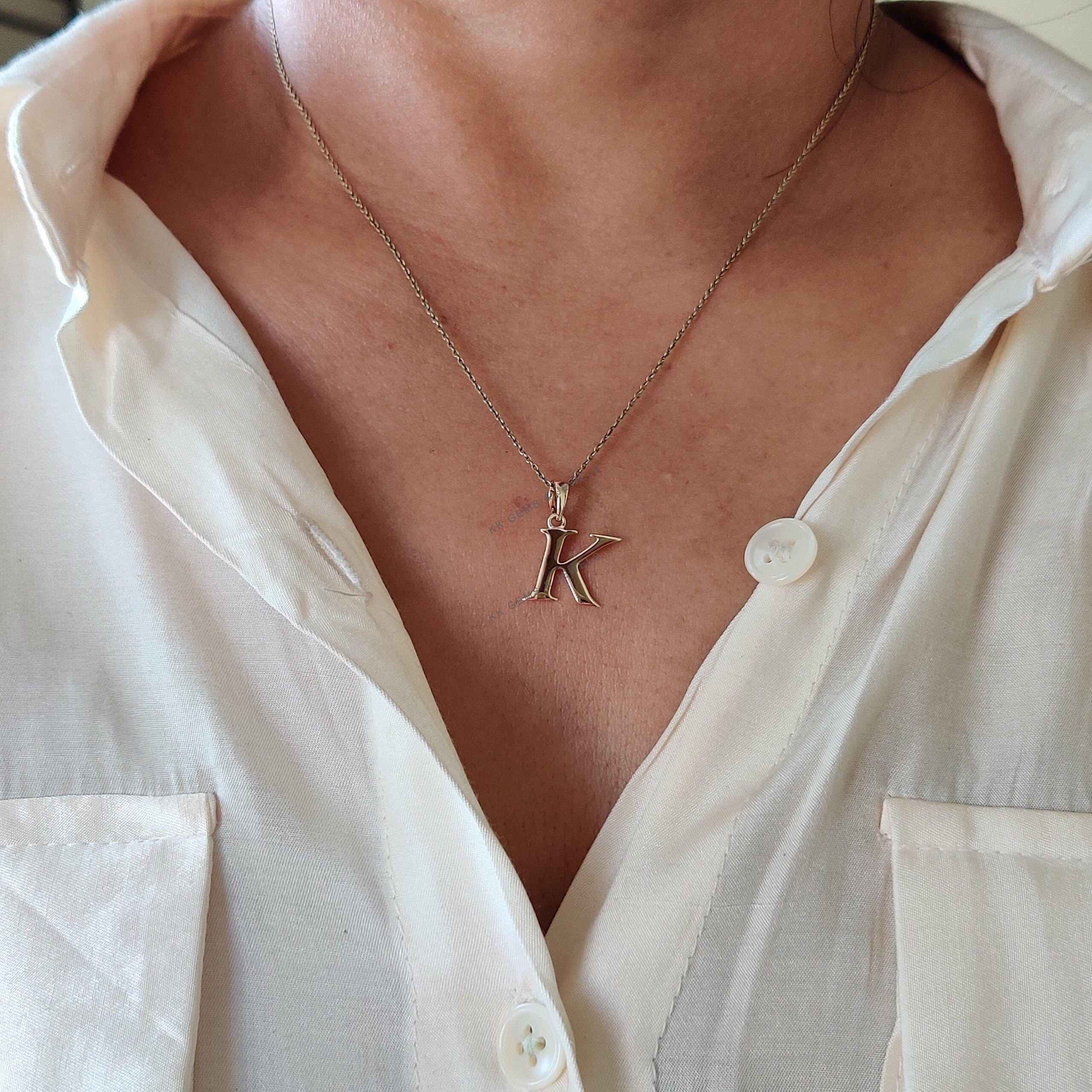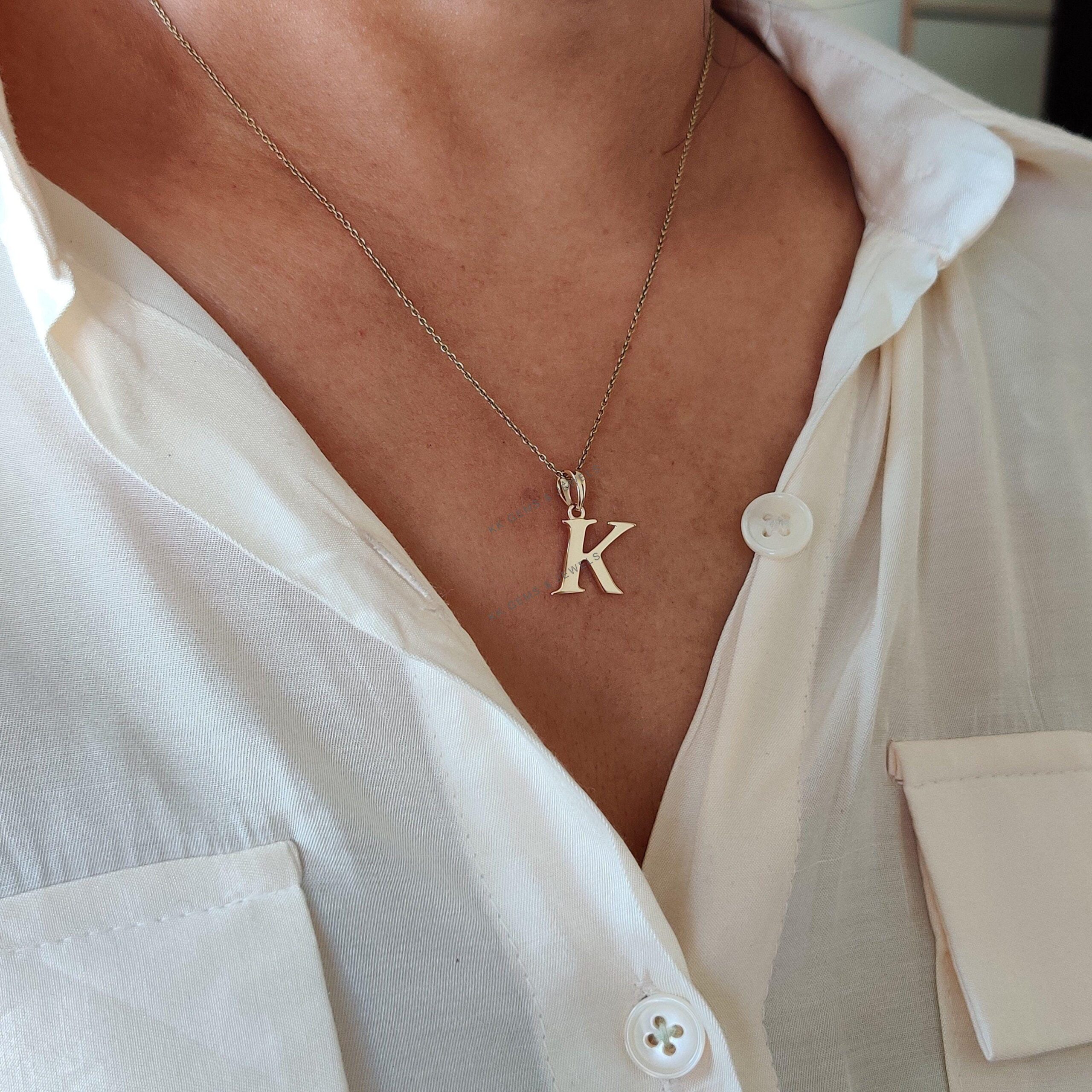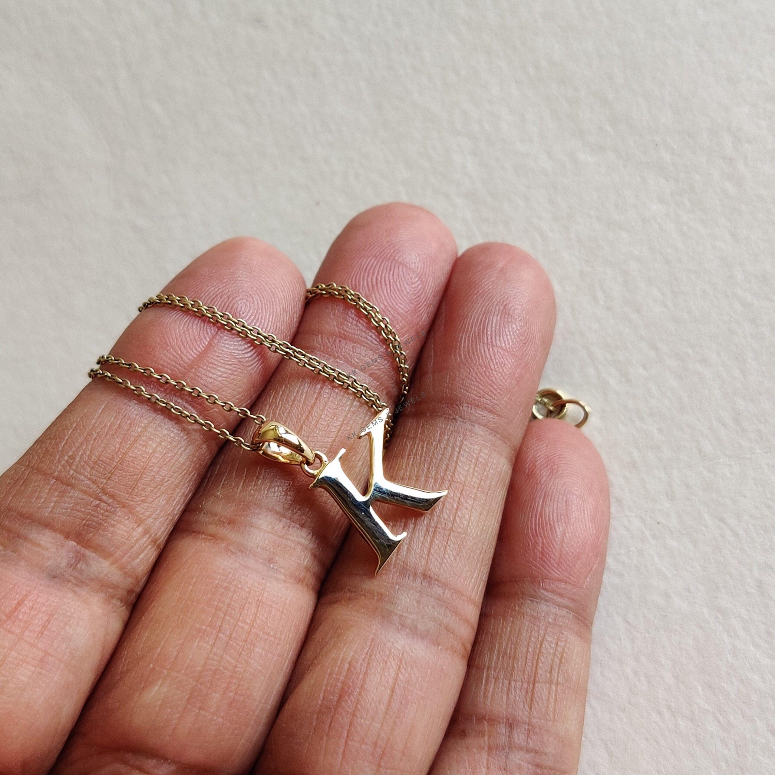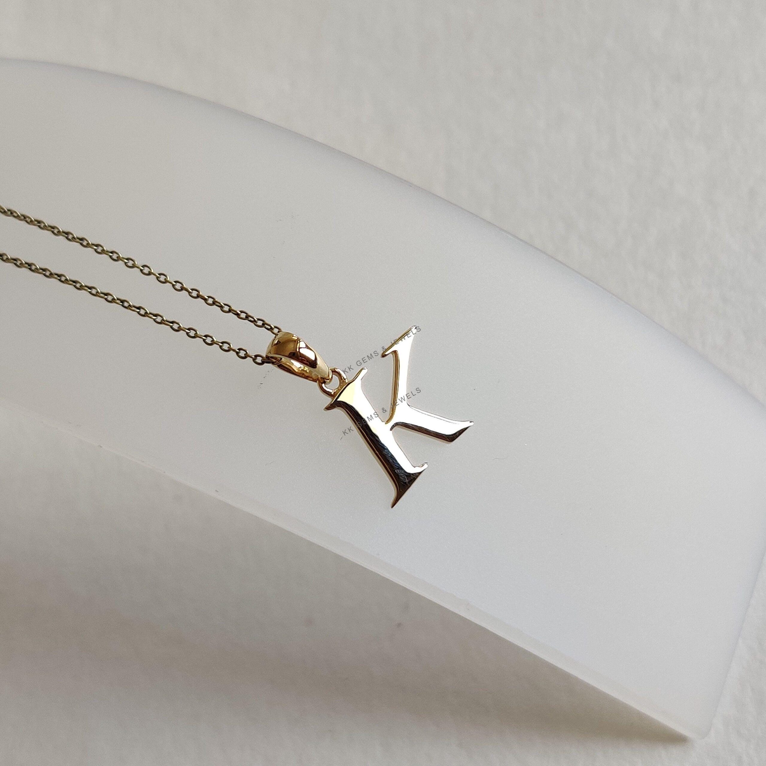 This is an exquisite initial charm pendant set in 14K Solid Gold. An elegant design, perfect for any occassion. ITEM DETAILS: ✓ Letter : K ✓ Gold Kt: Solid 14K Yellow Gold ✓ 14 K Gold Weight : 1.23 grams…