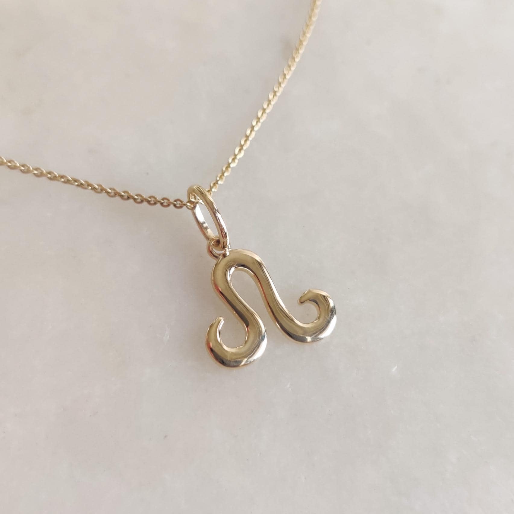 This is an exquisite initial "Leo" Zodiac Pendant set in 14K Solid Gold.