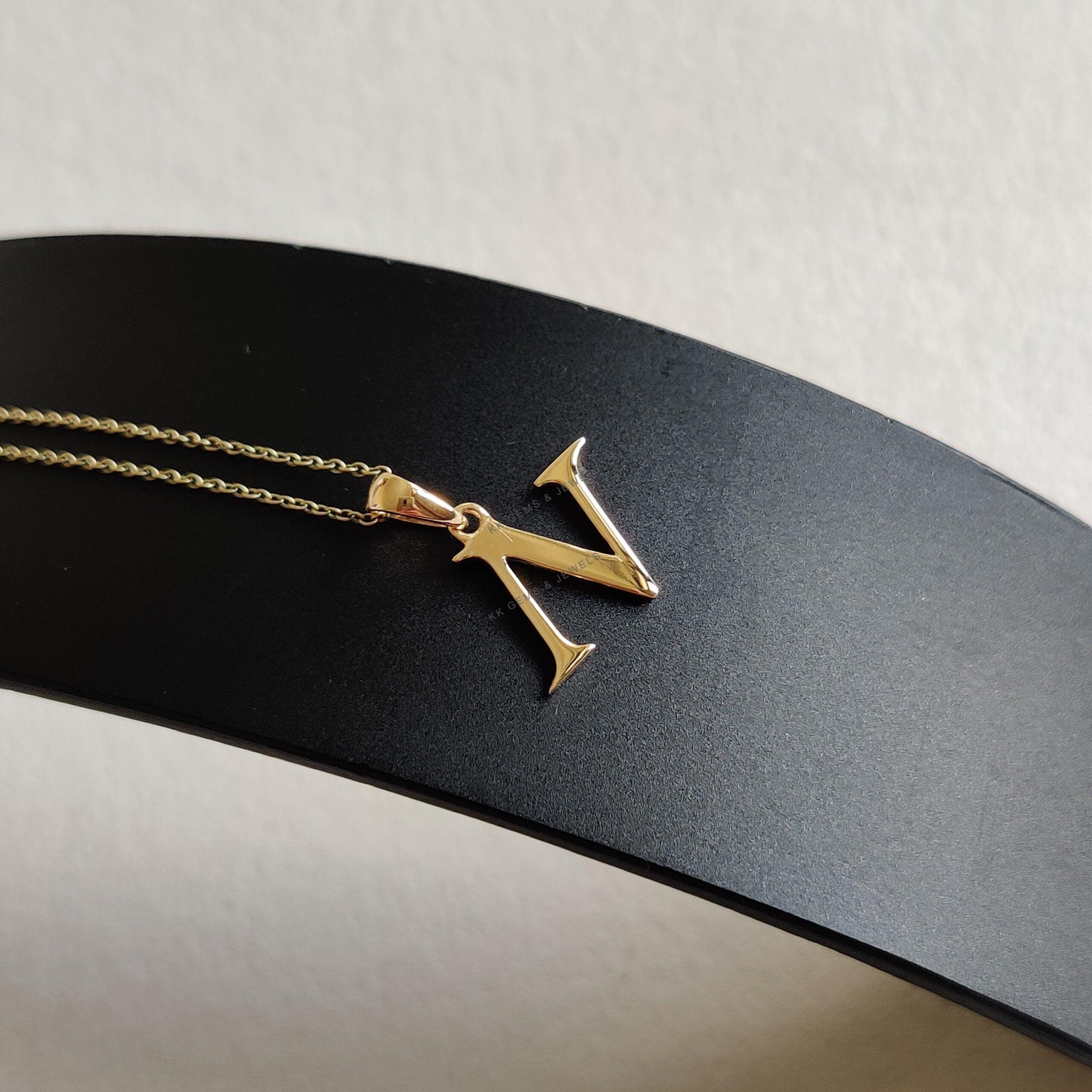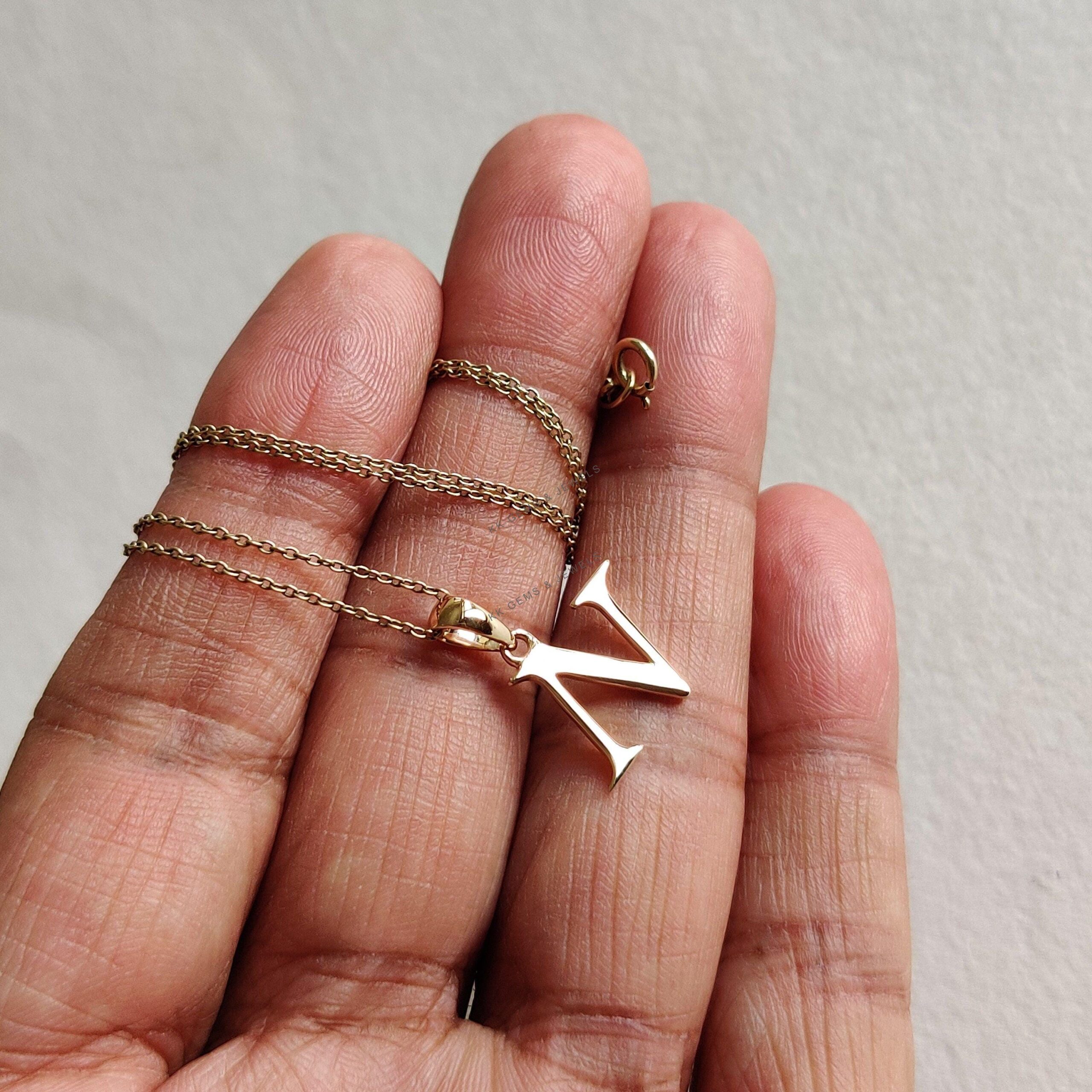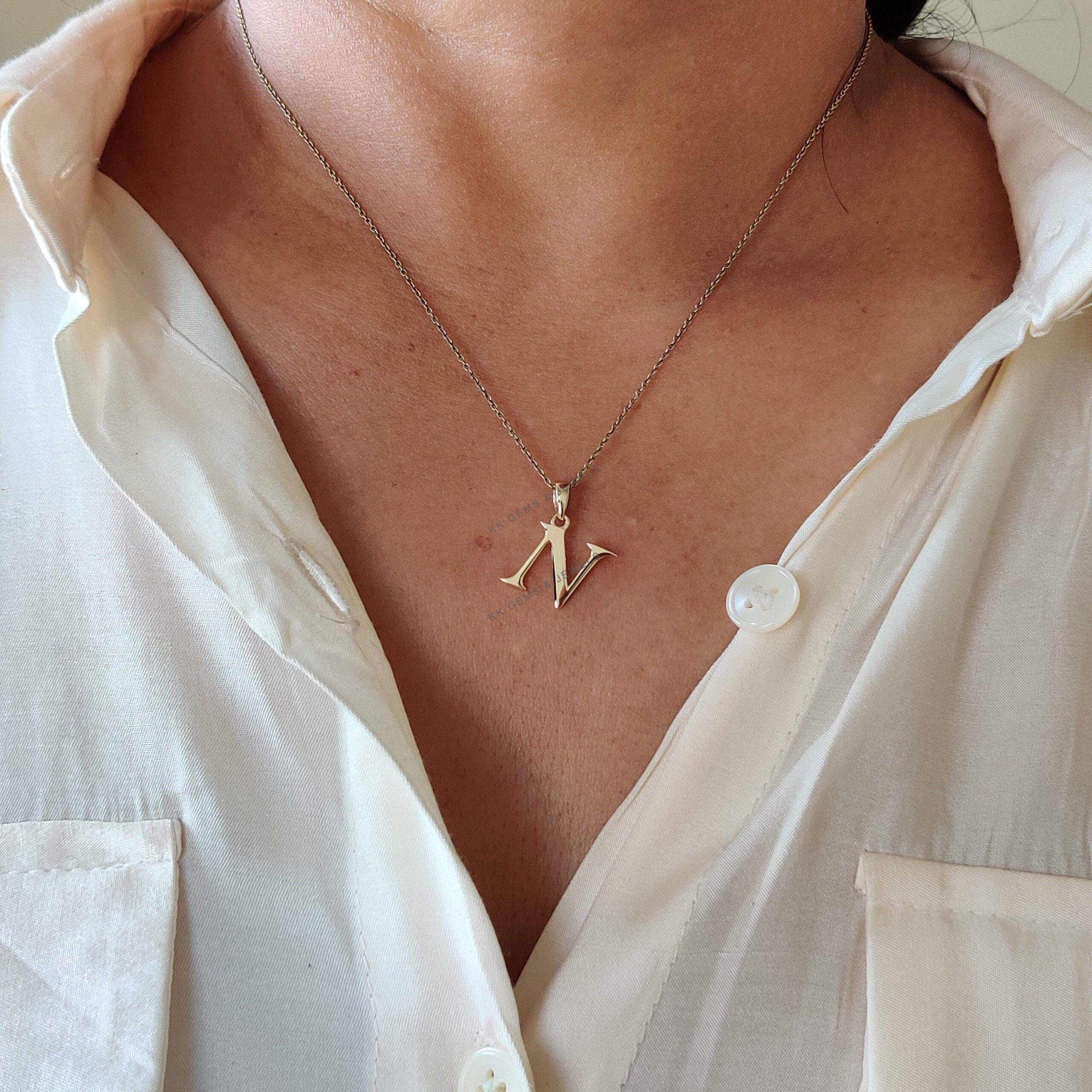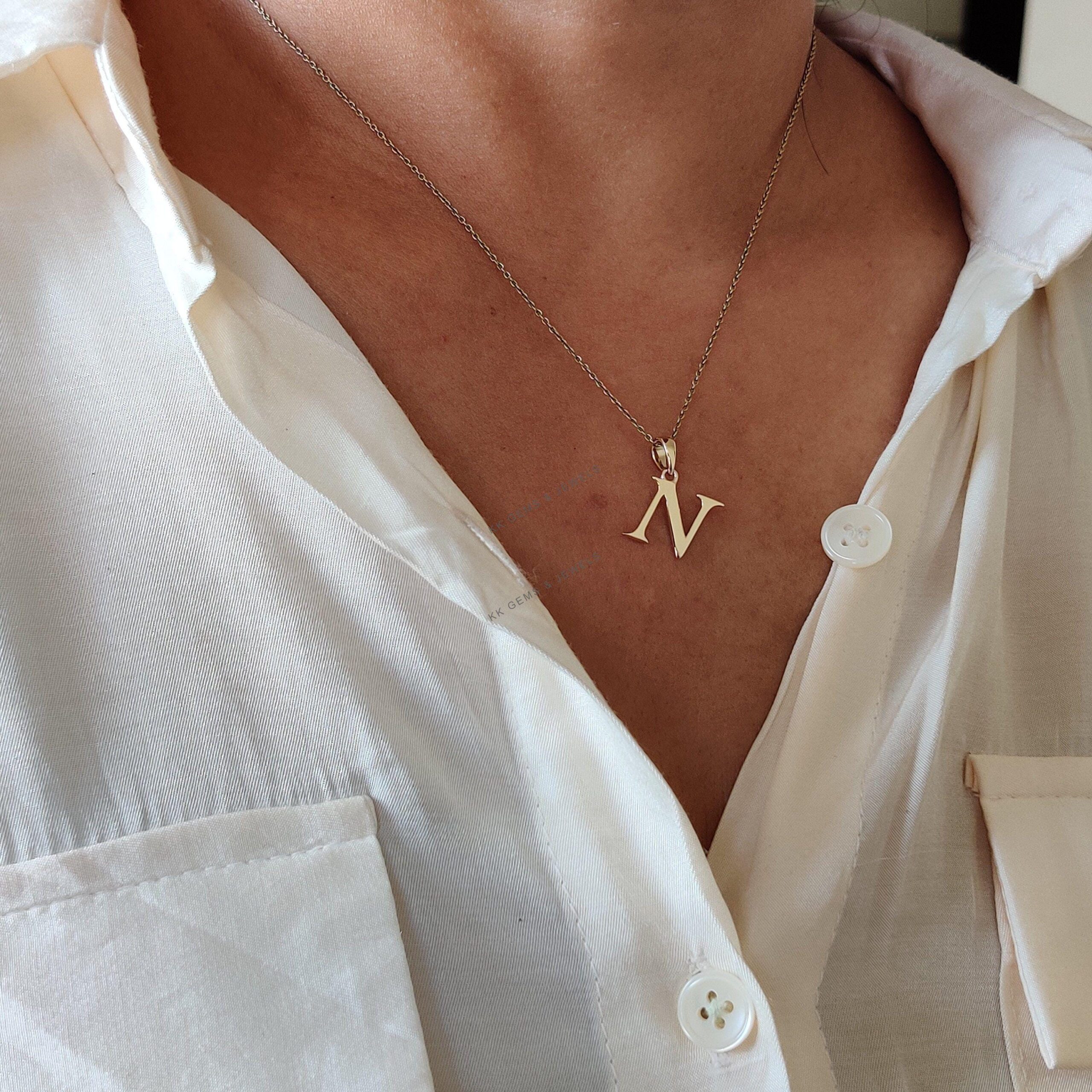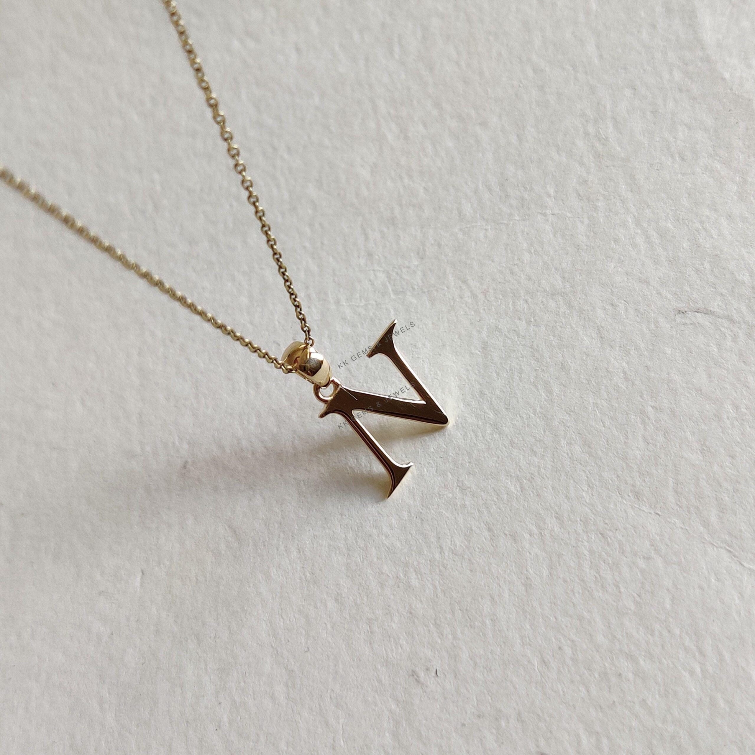 Initial N Pendant Set in 14K Solid Gold, Alphabet Charm Pendant
