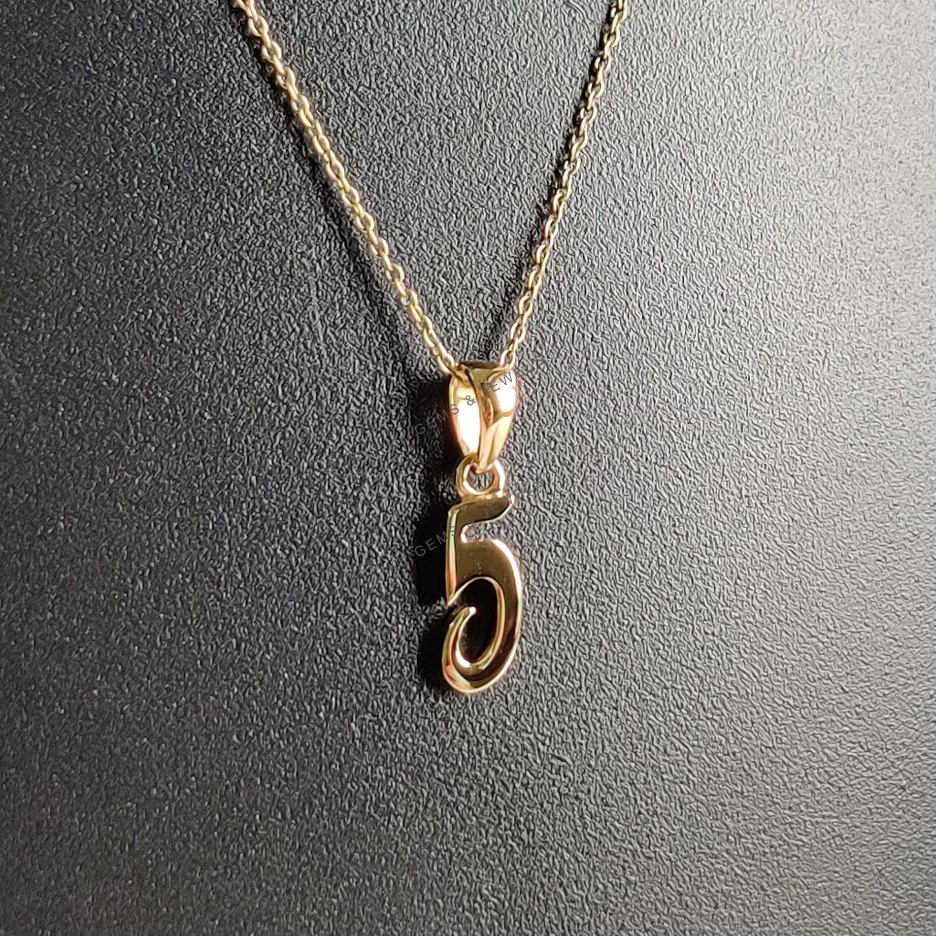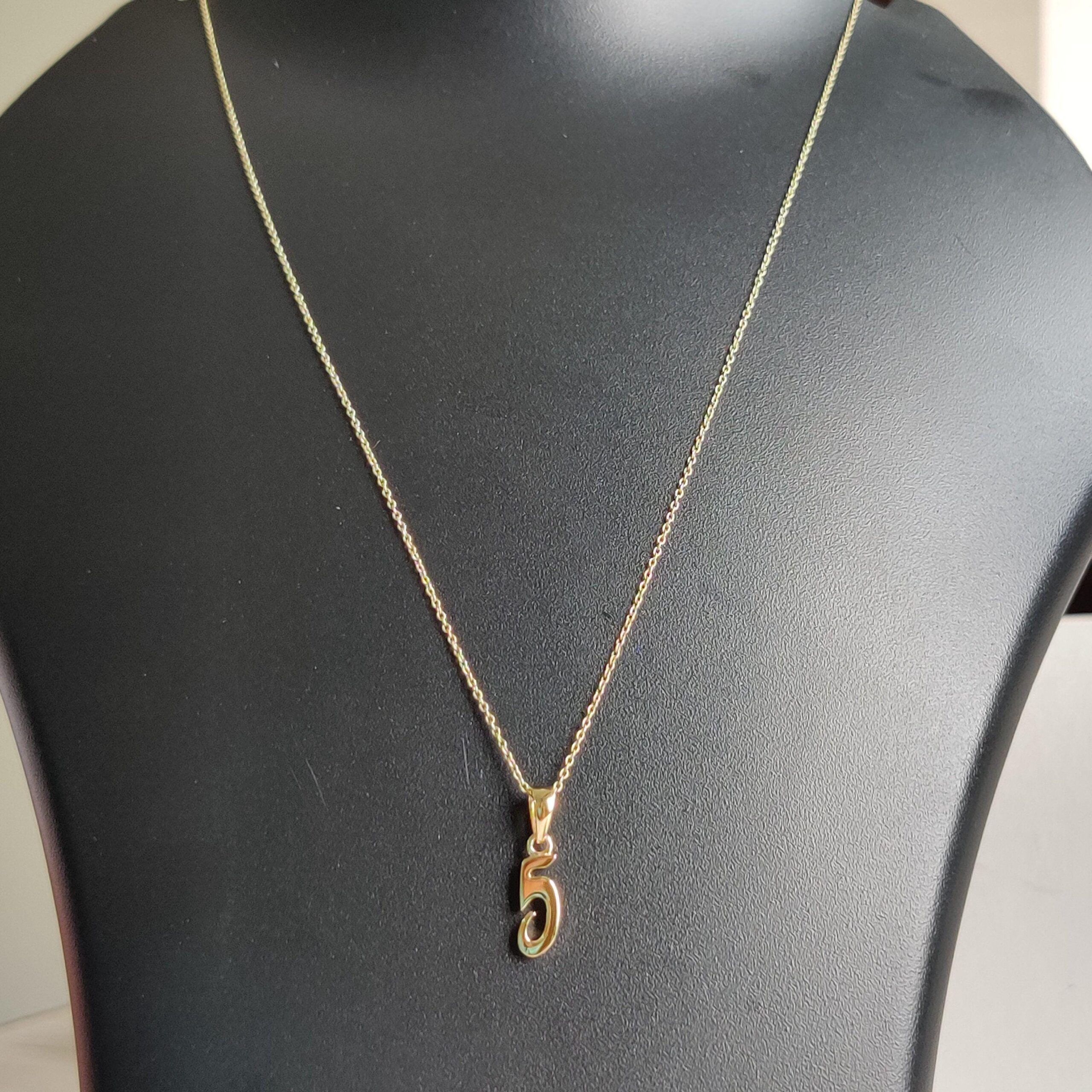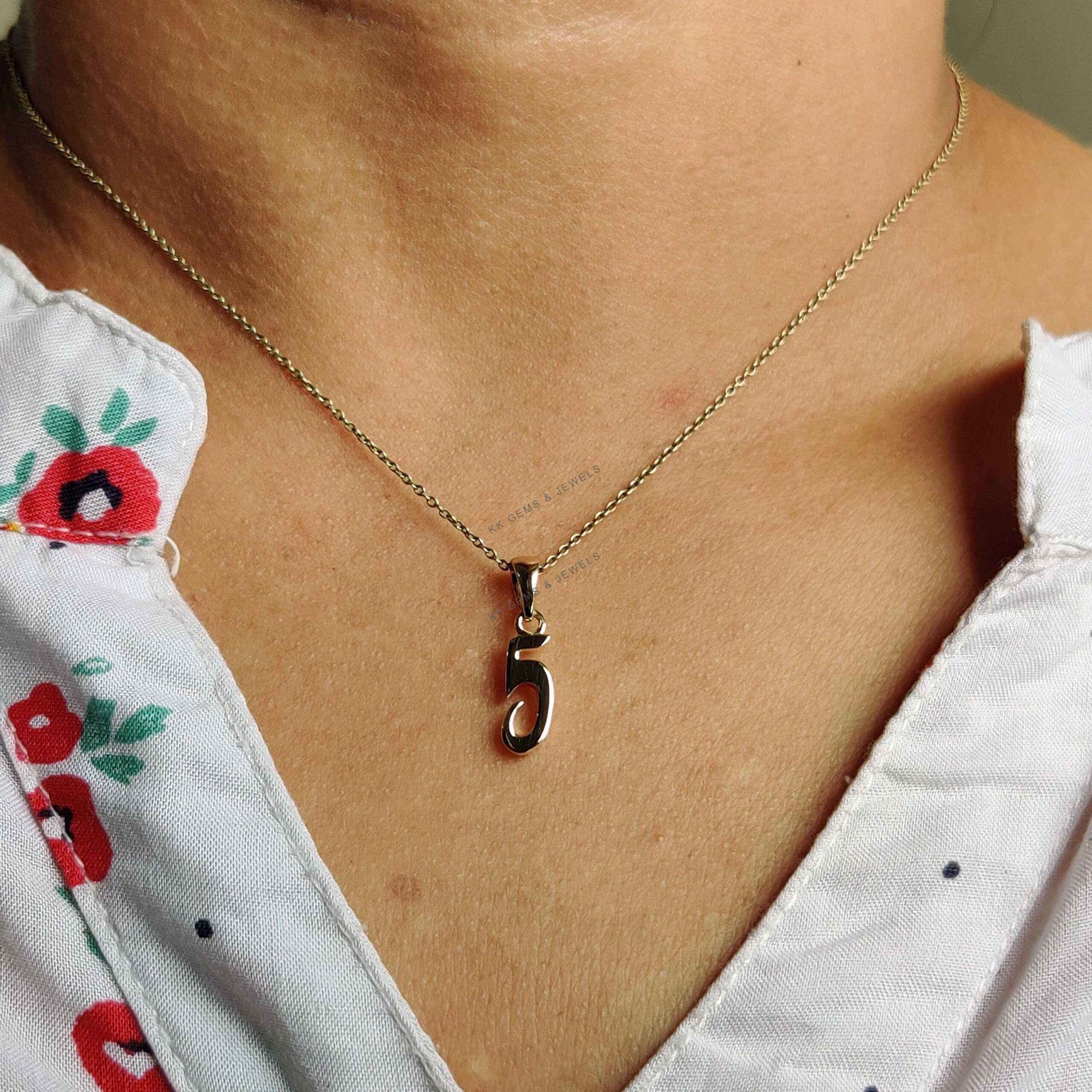 Initial Number 5 Pendant Set in 14K Solid Gold, Charm Necklace
