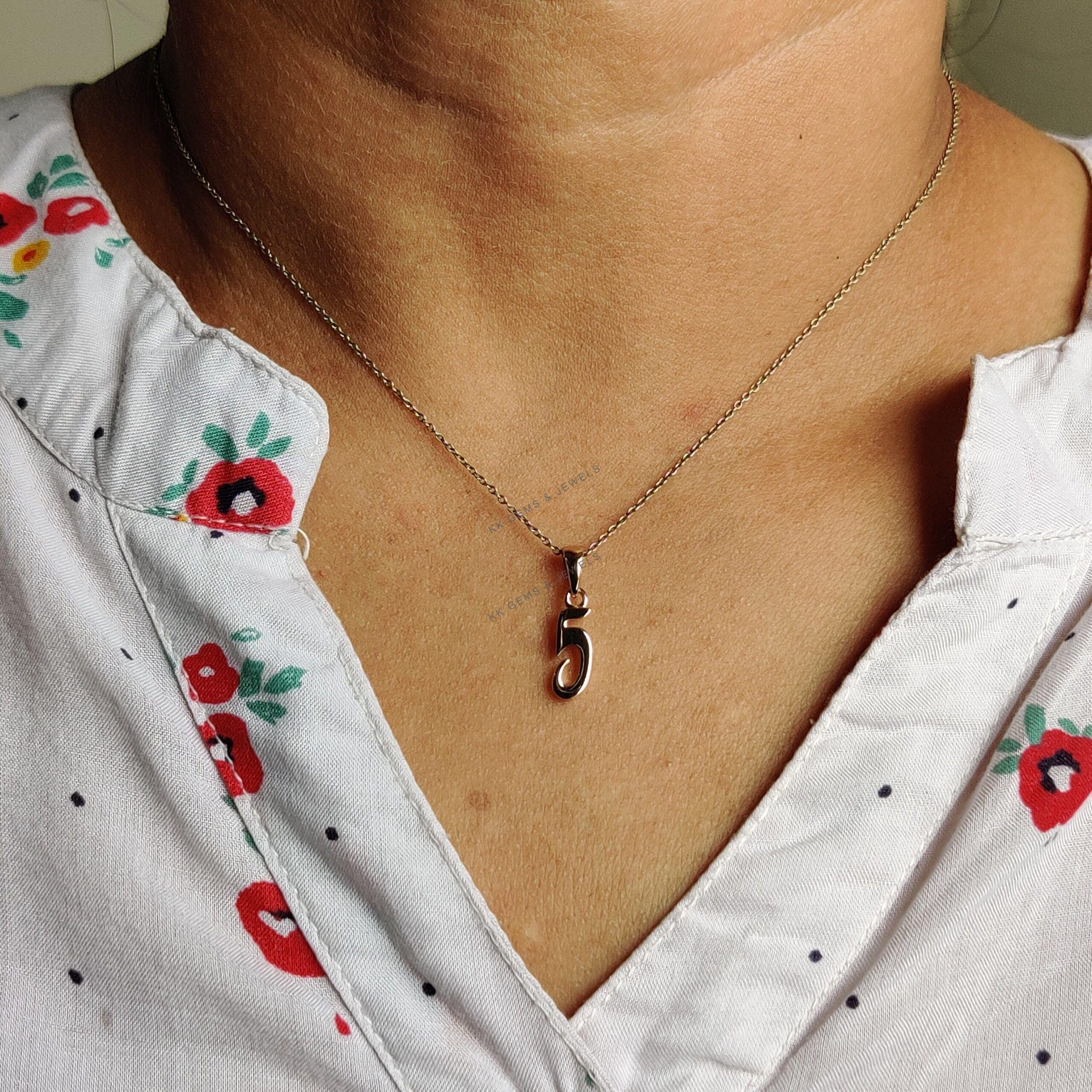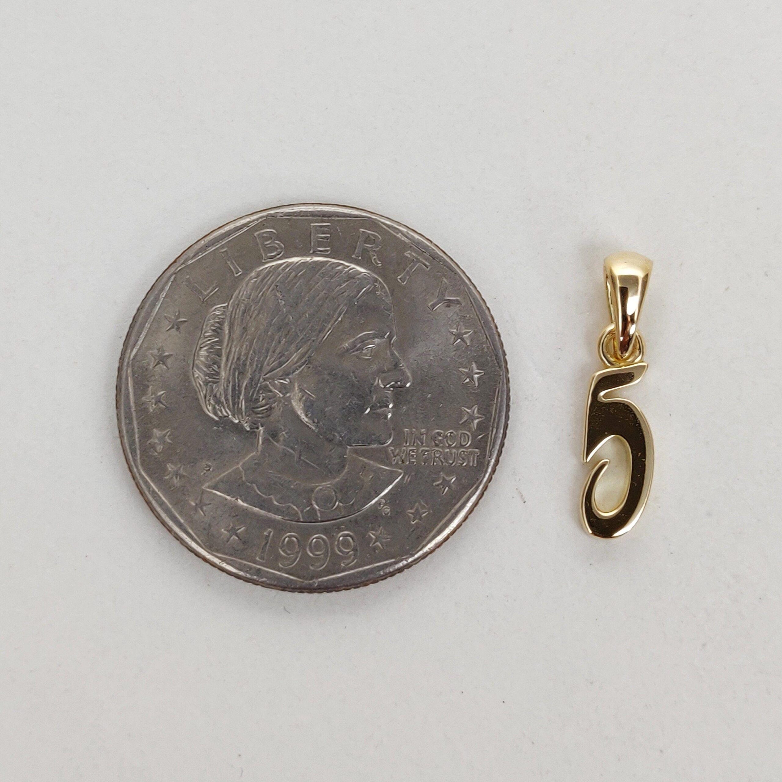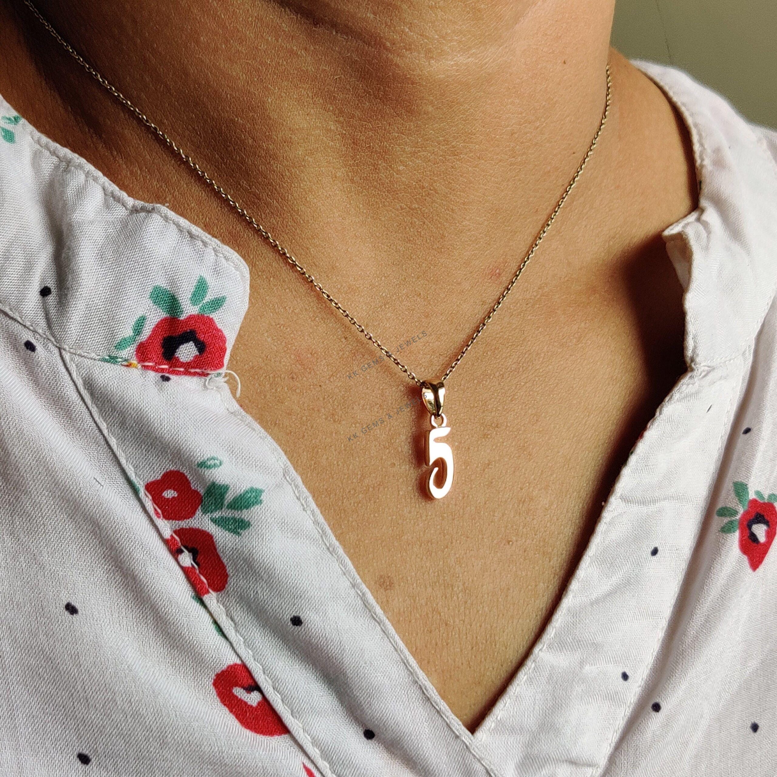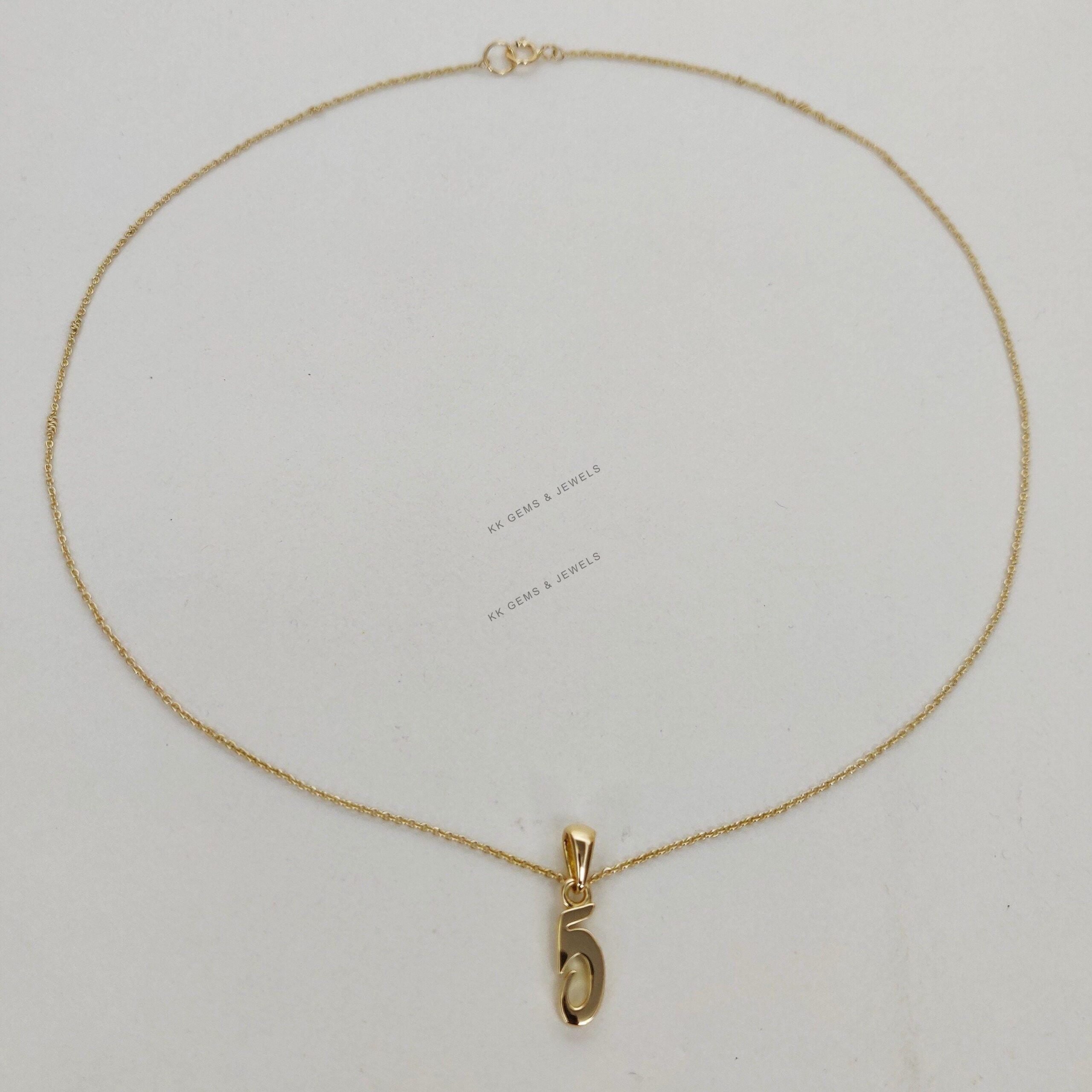 Initial Number 5 Pendant Set in 14K Solid Gold, Charm Necklace