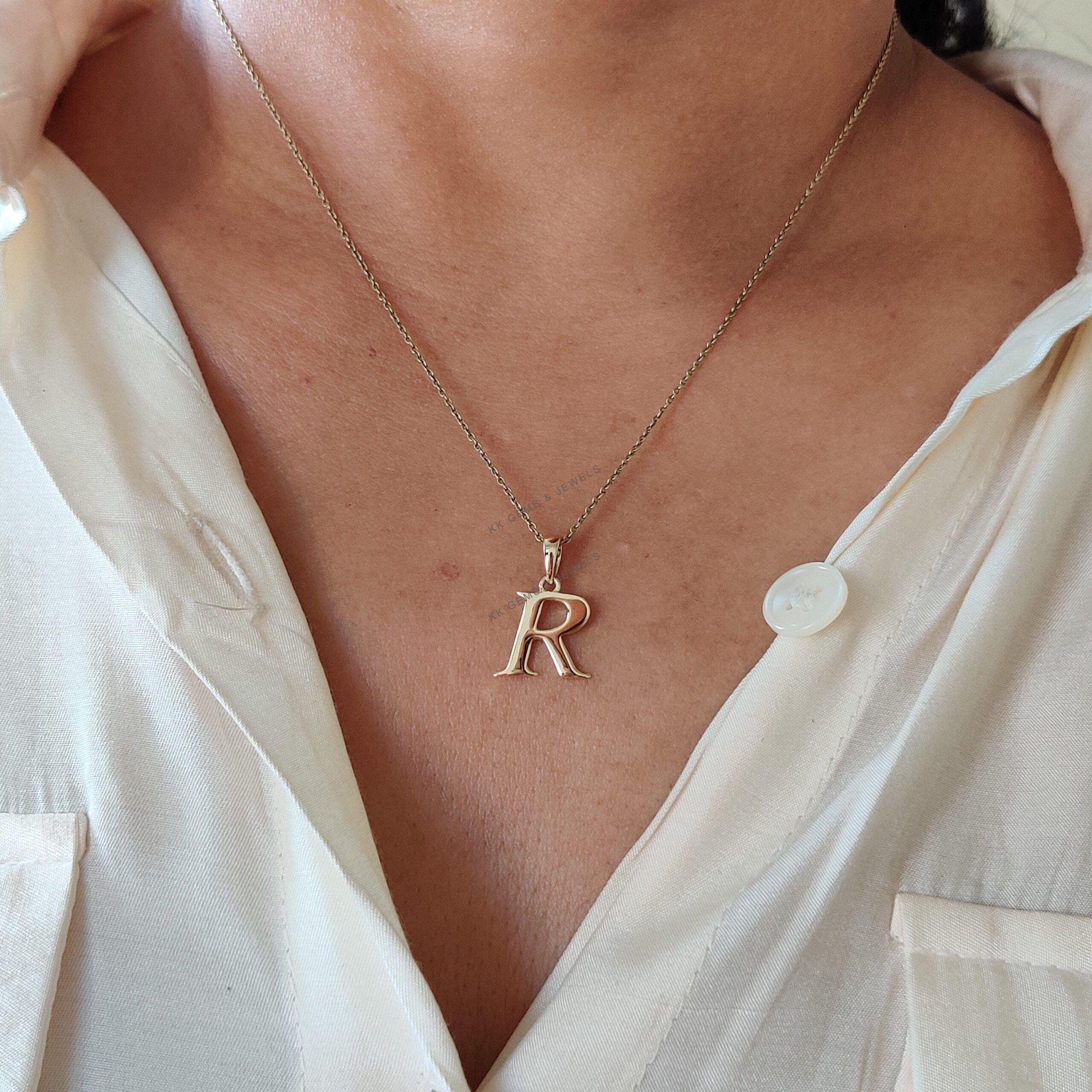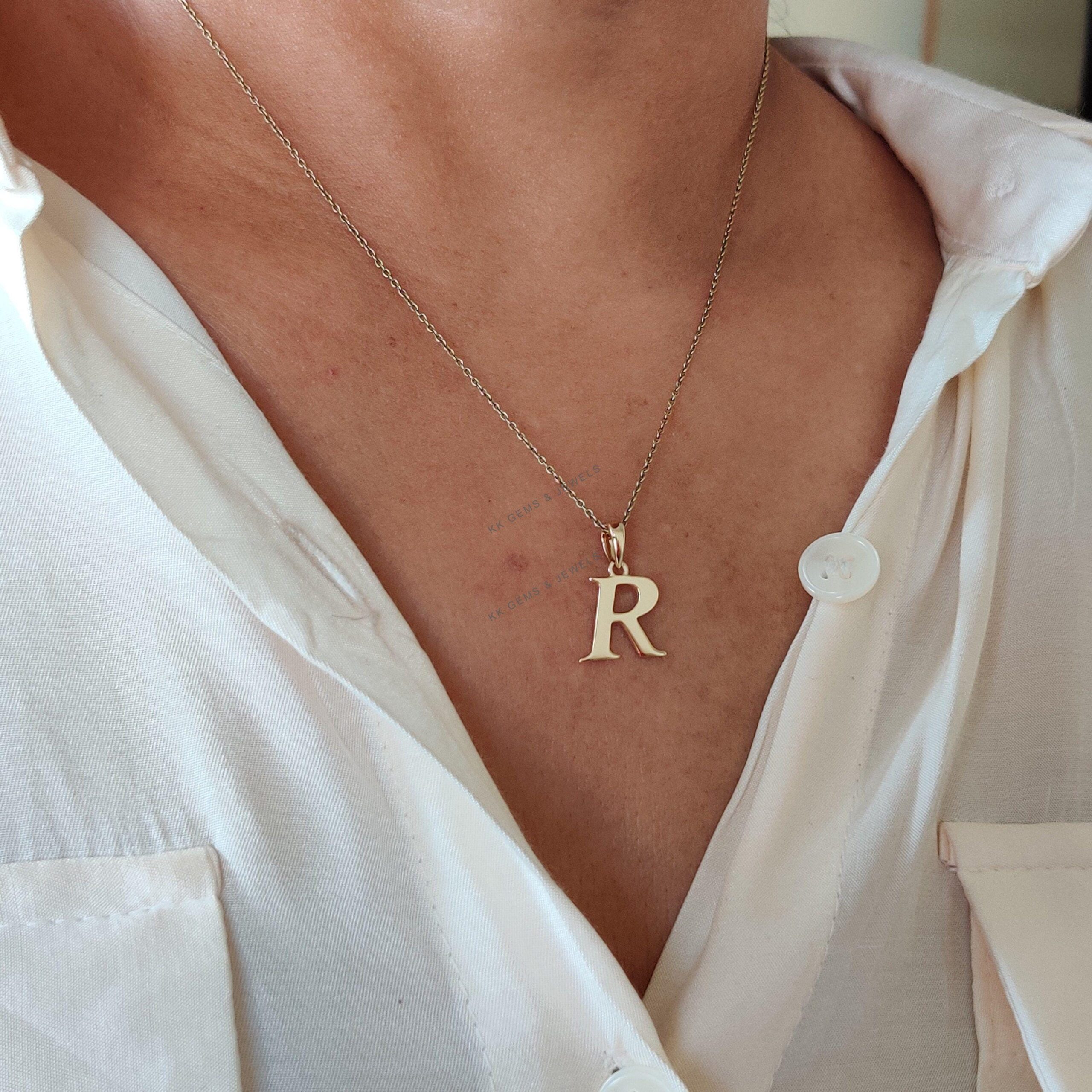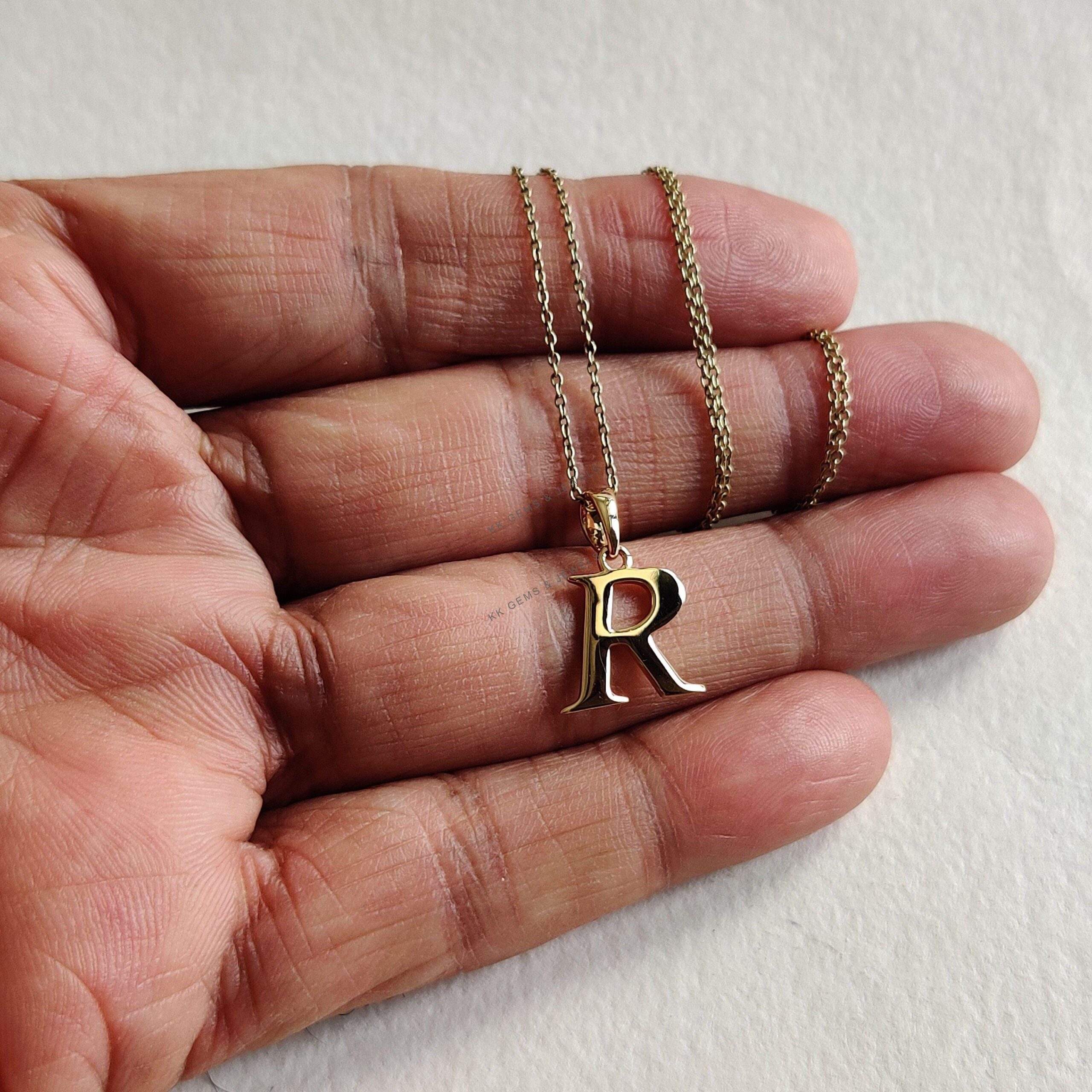 Initial R Pendant Set in 14K Solid Gold, Alphabet Charm 14K Yellow Gold Pendant