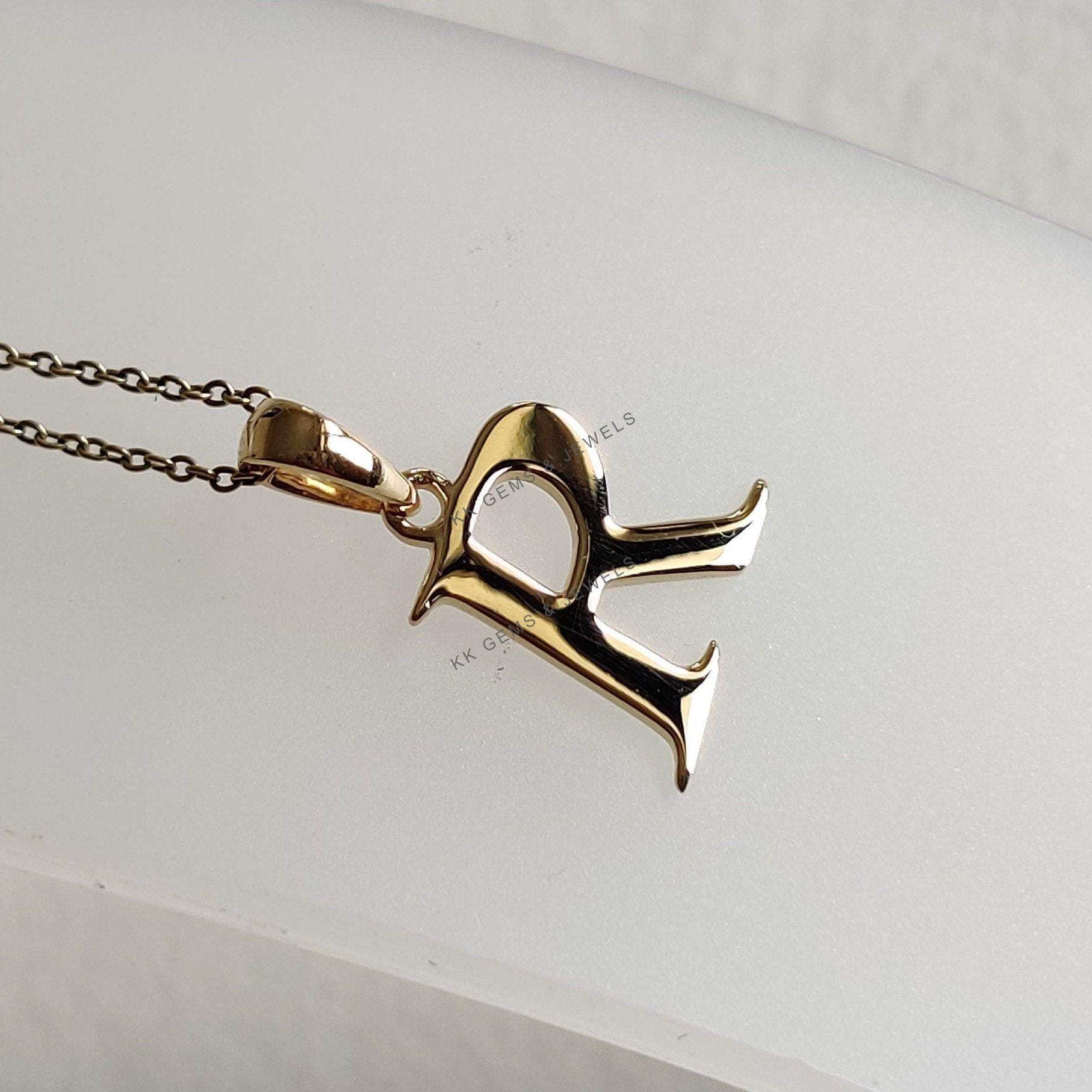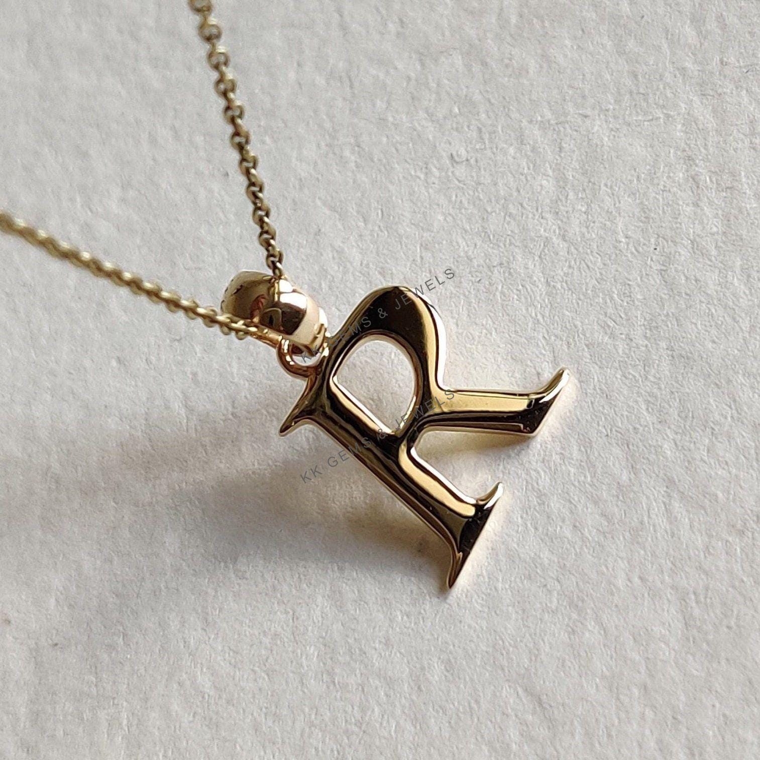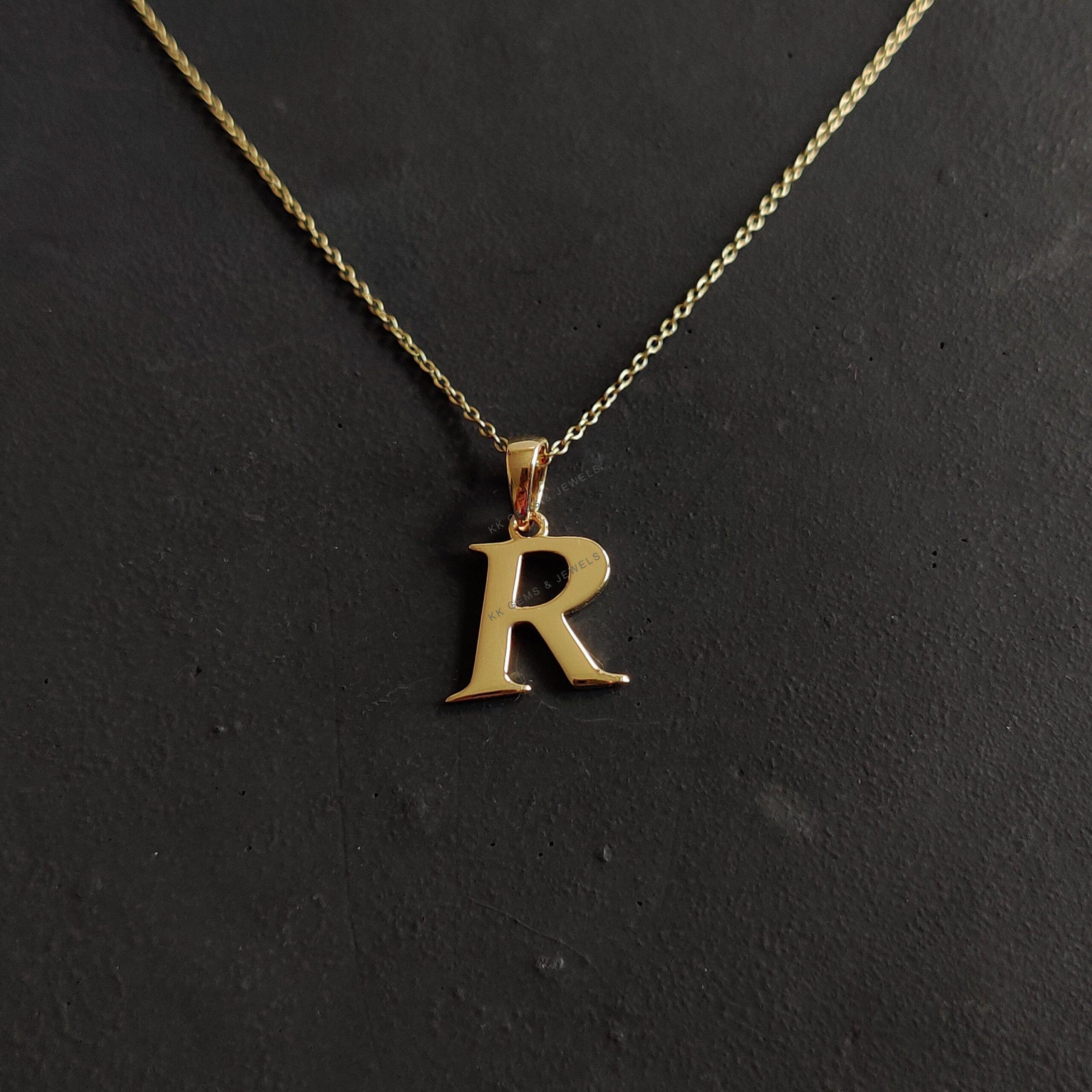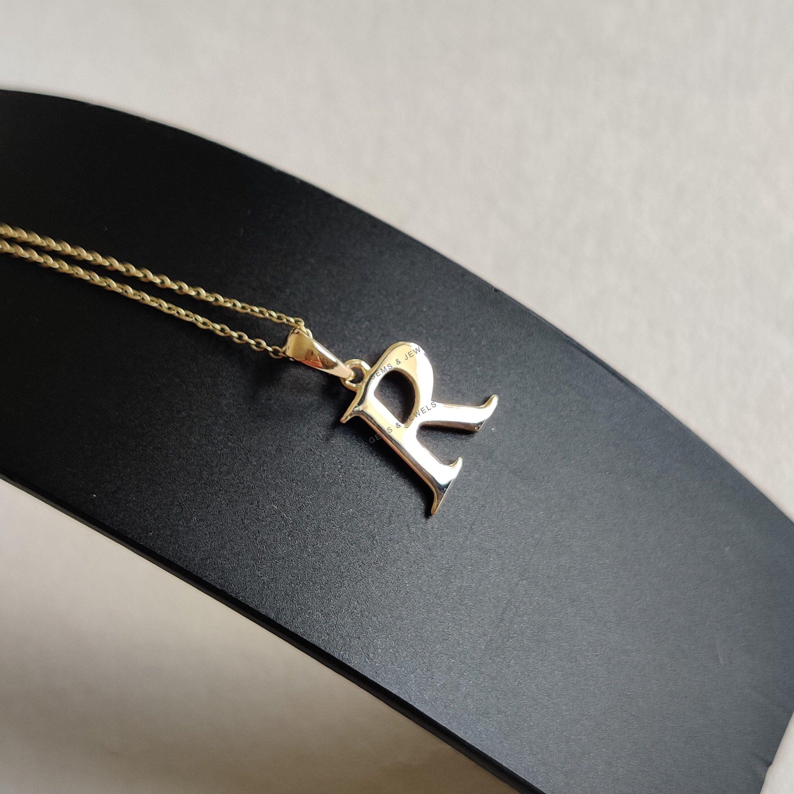 Initial R Pendant Set in 14K Solid Gold, Alphabet Charm 14K Yellow Gold Pendant