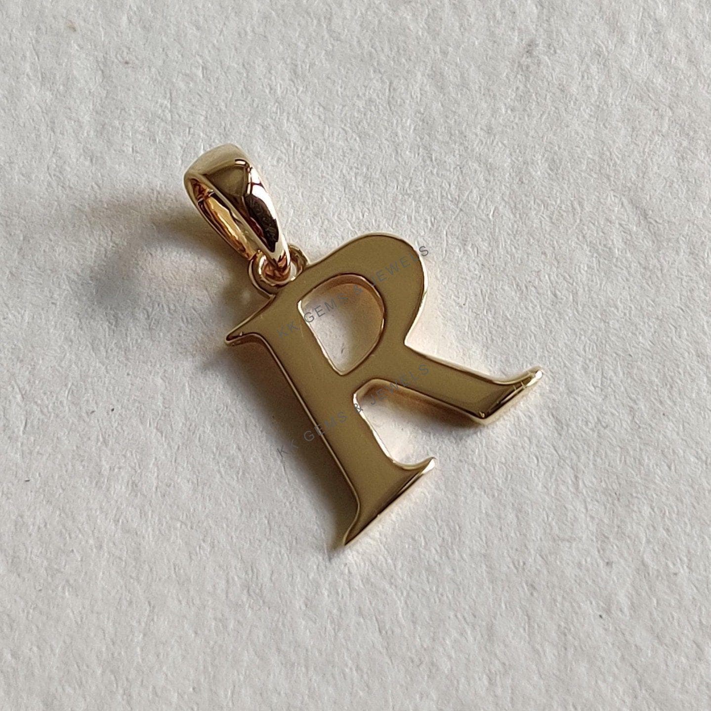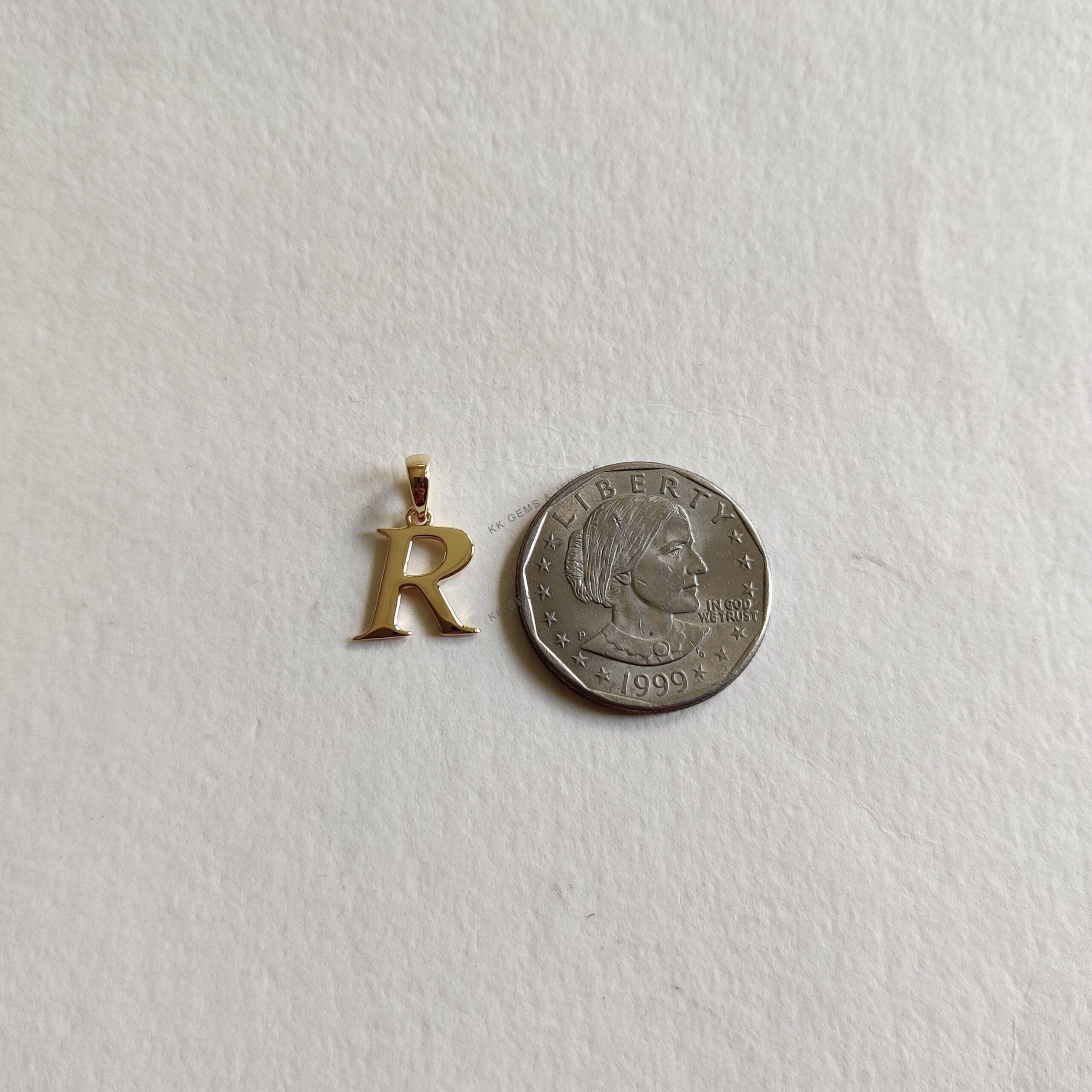 This is an exquisite initial charm pendant set in 14K Solid Gold. An elegant design, perfect for any occassion. ITEM DETAILS: ✓ Letter : R ✓ Gold Kt: Solid 14K Yellow Gold ✓ 14 K Gold Weight : 1.25 grams…