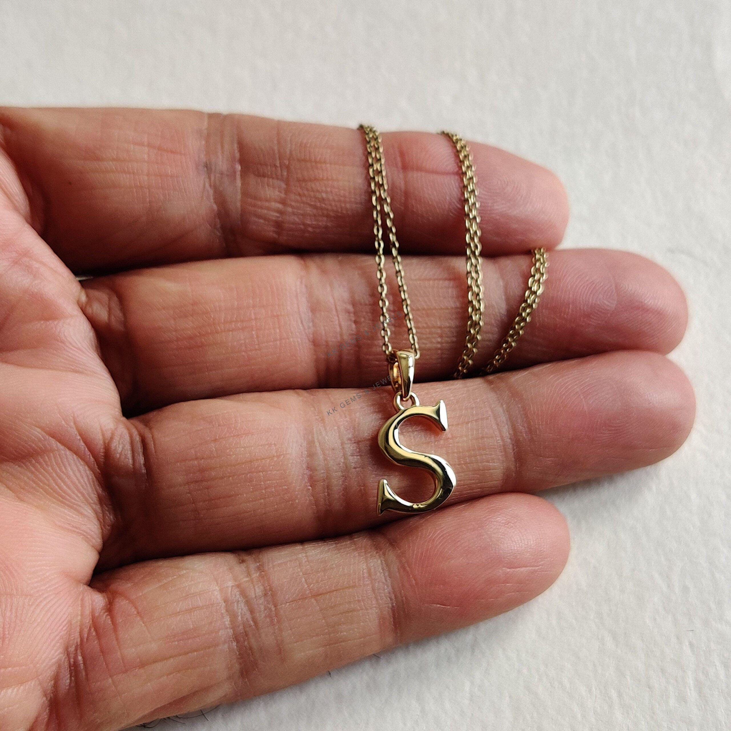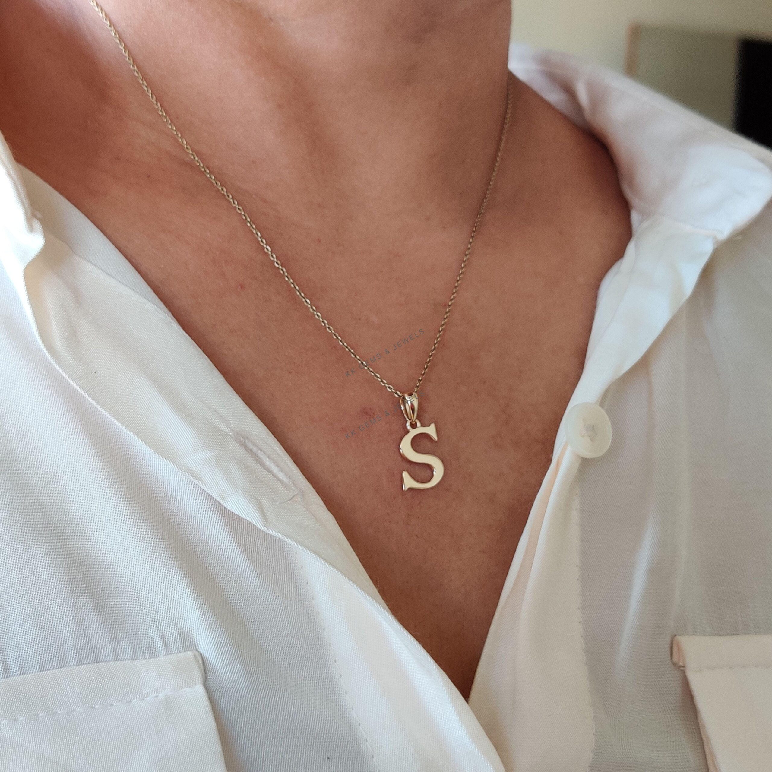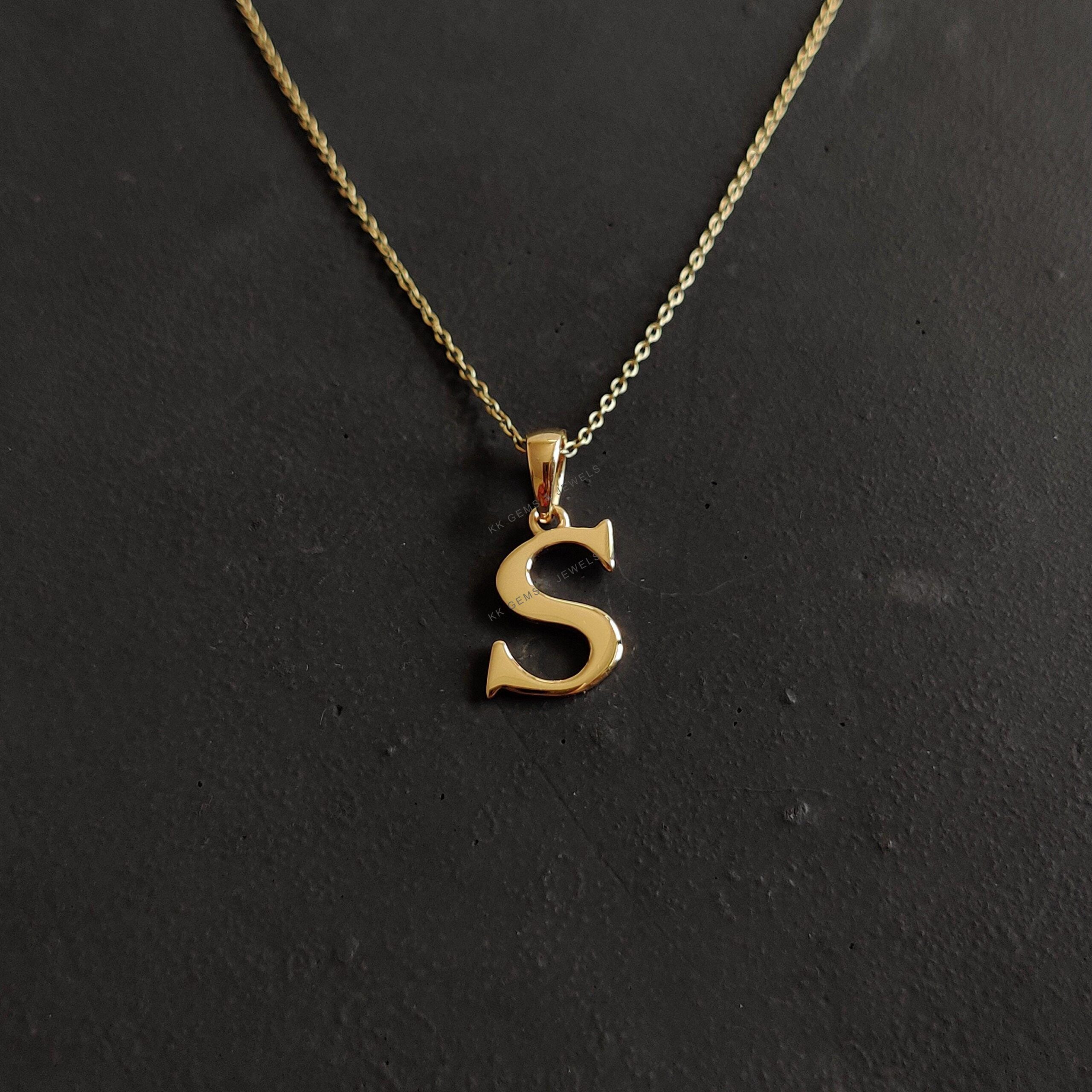 Initial S Pendant Set in 14K Solid Gold, Alphabet Charm Pendant