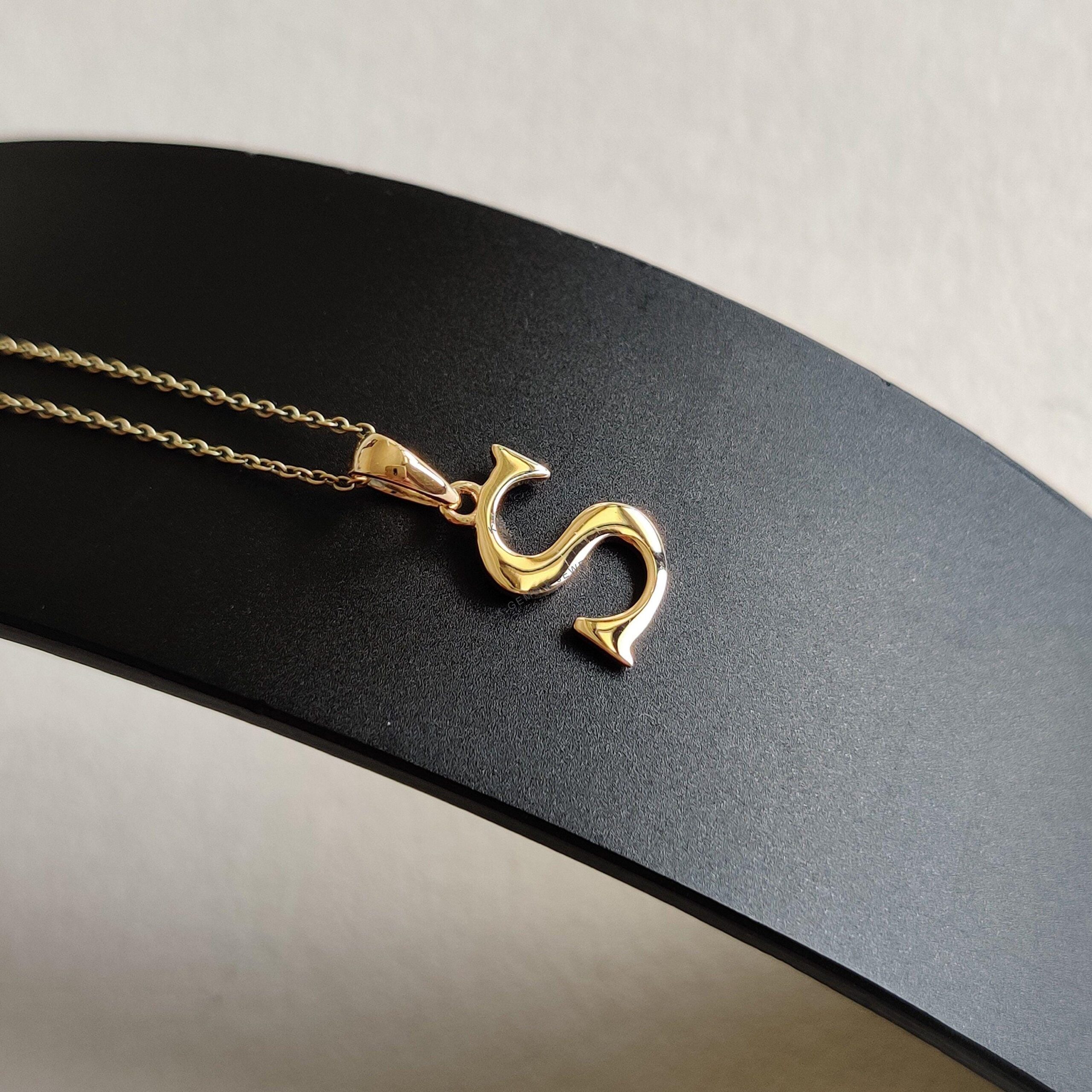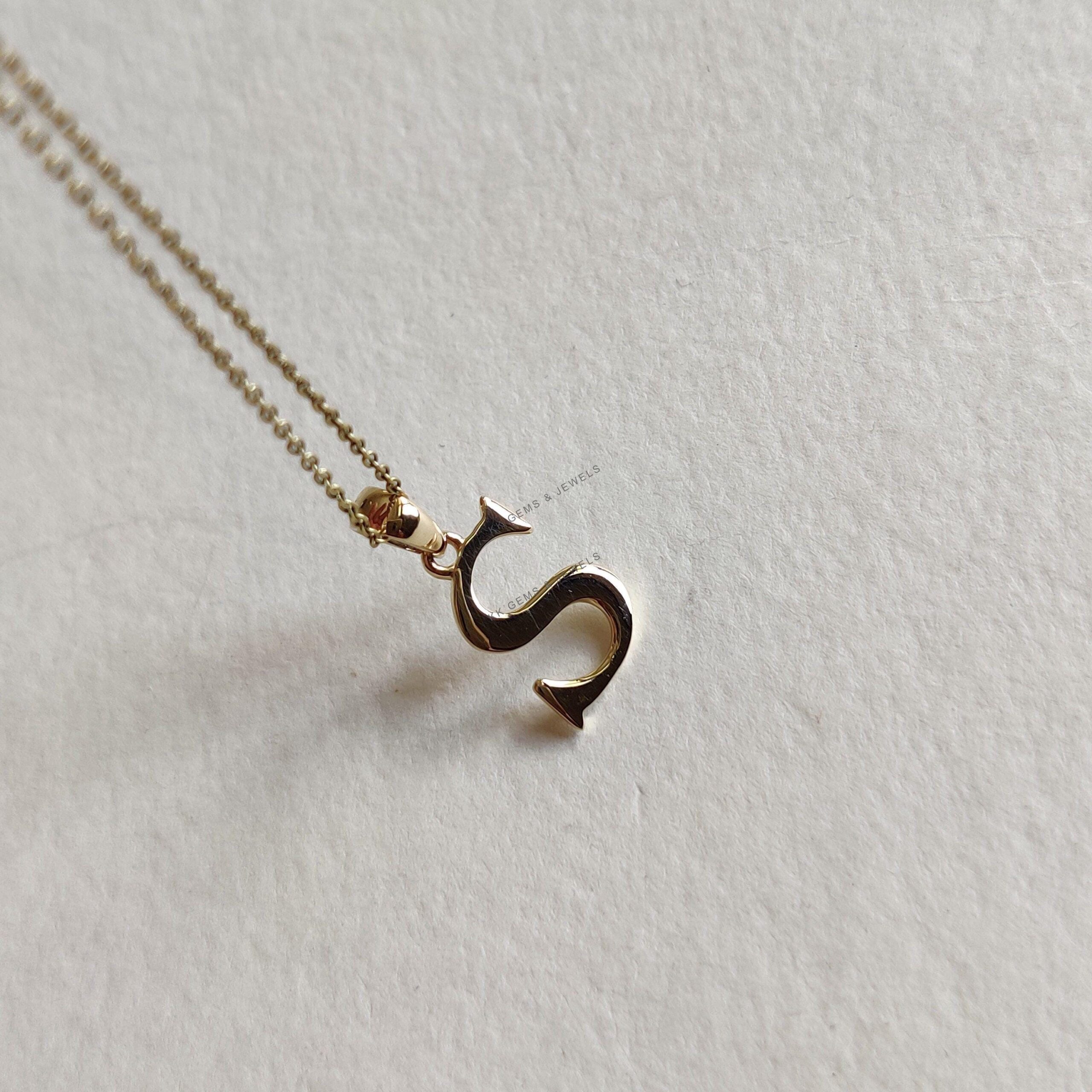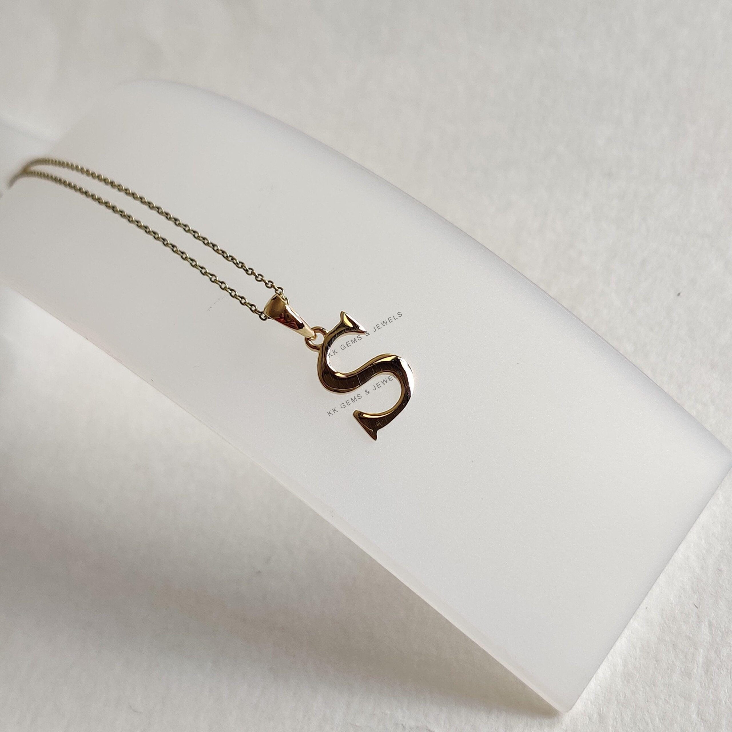 Initial S Pendant Set in 14K Solid Gold, Alphabet Charm Pendant