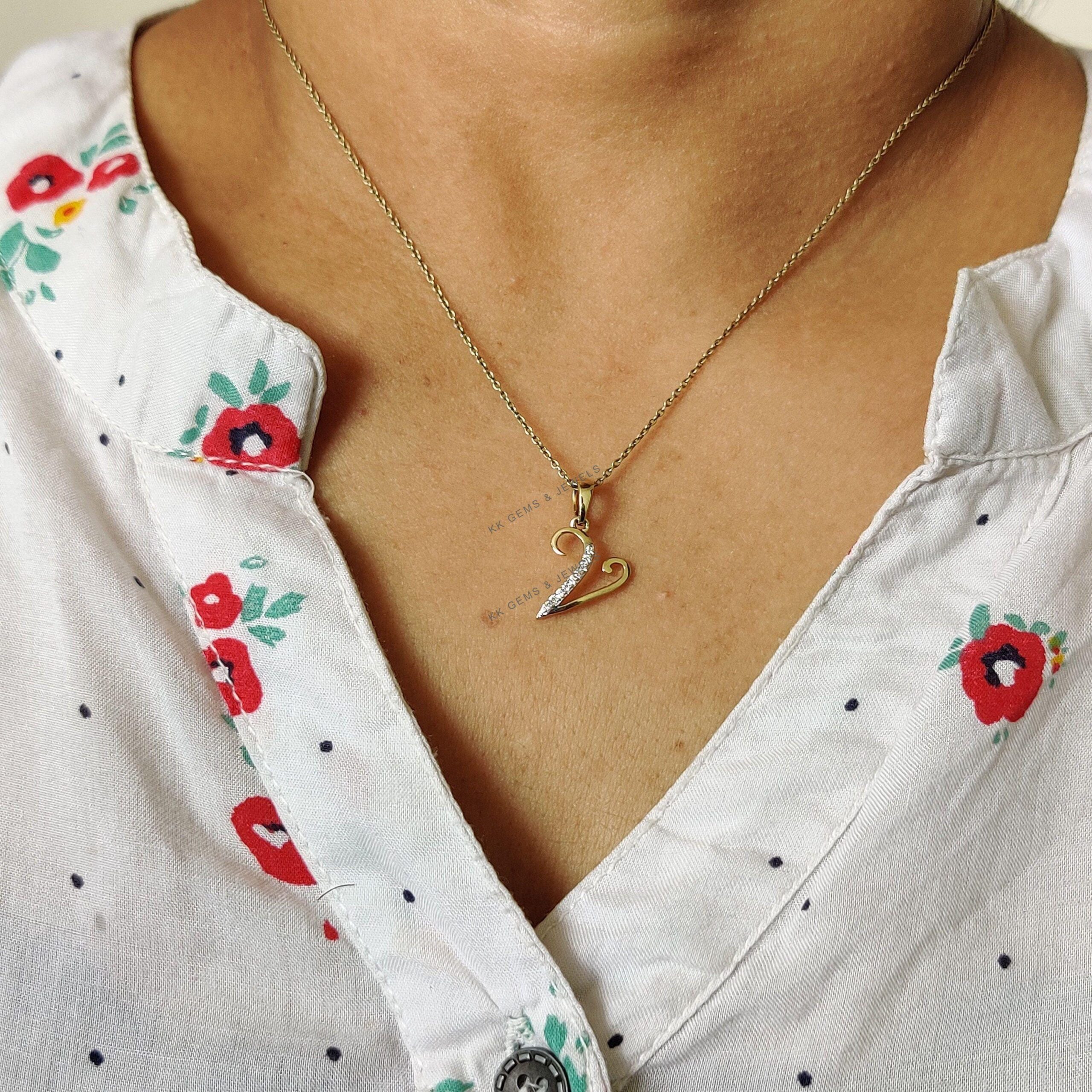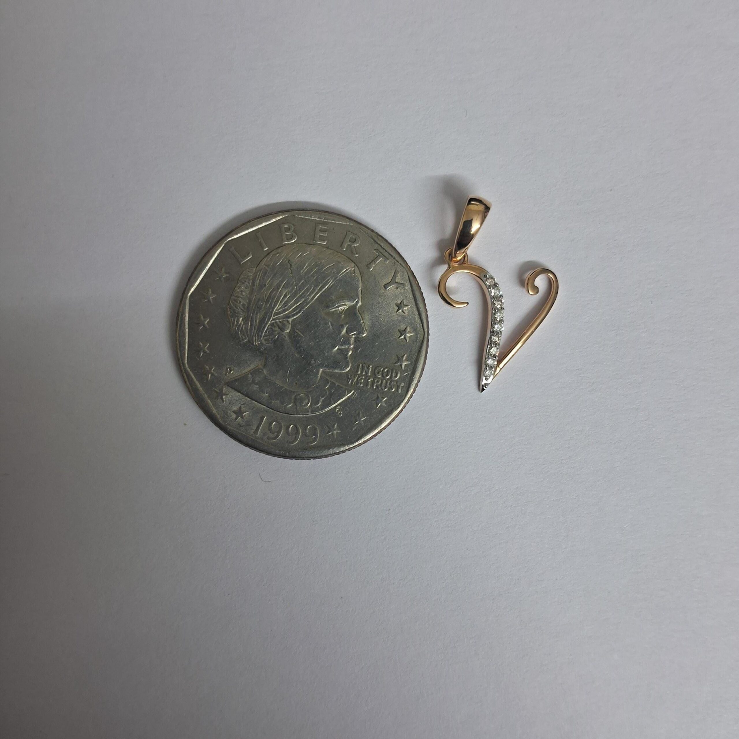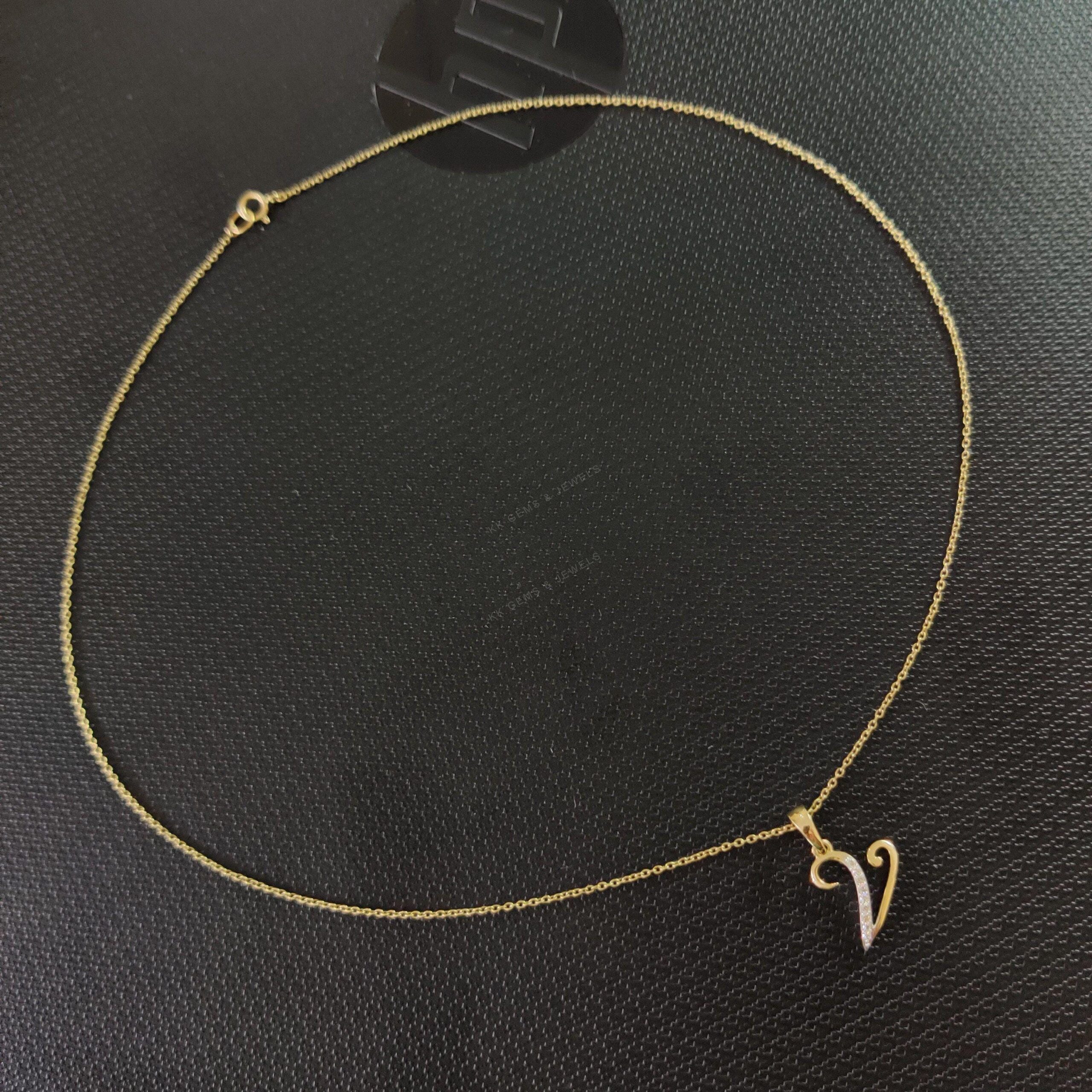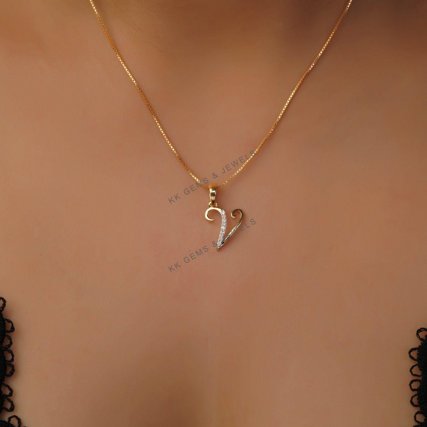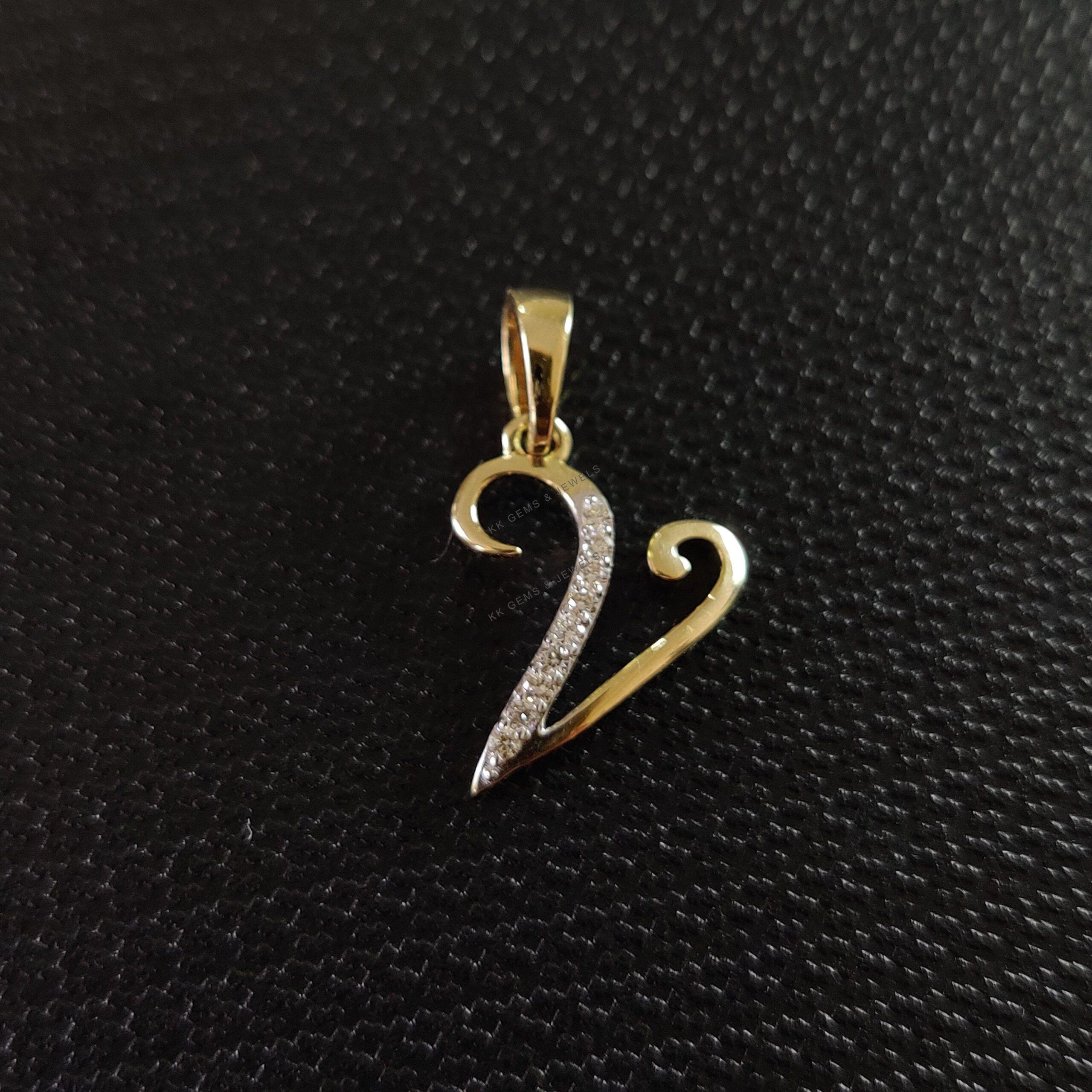 This is an exquisite initial diamond charm pendant set in 14K Solid Gold. An elegant design, perfect for any occassion ITEM DETAILS: ✓ Letter : V ✓ Gold Kt: Solid 14K Yellow Gold ✓ 14 K Gold Weight : 0.84…