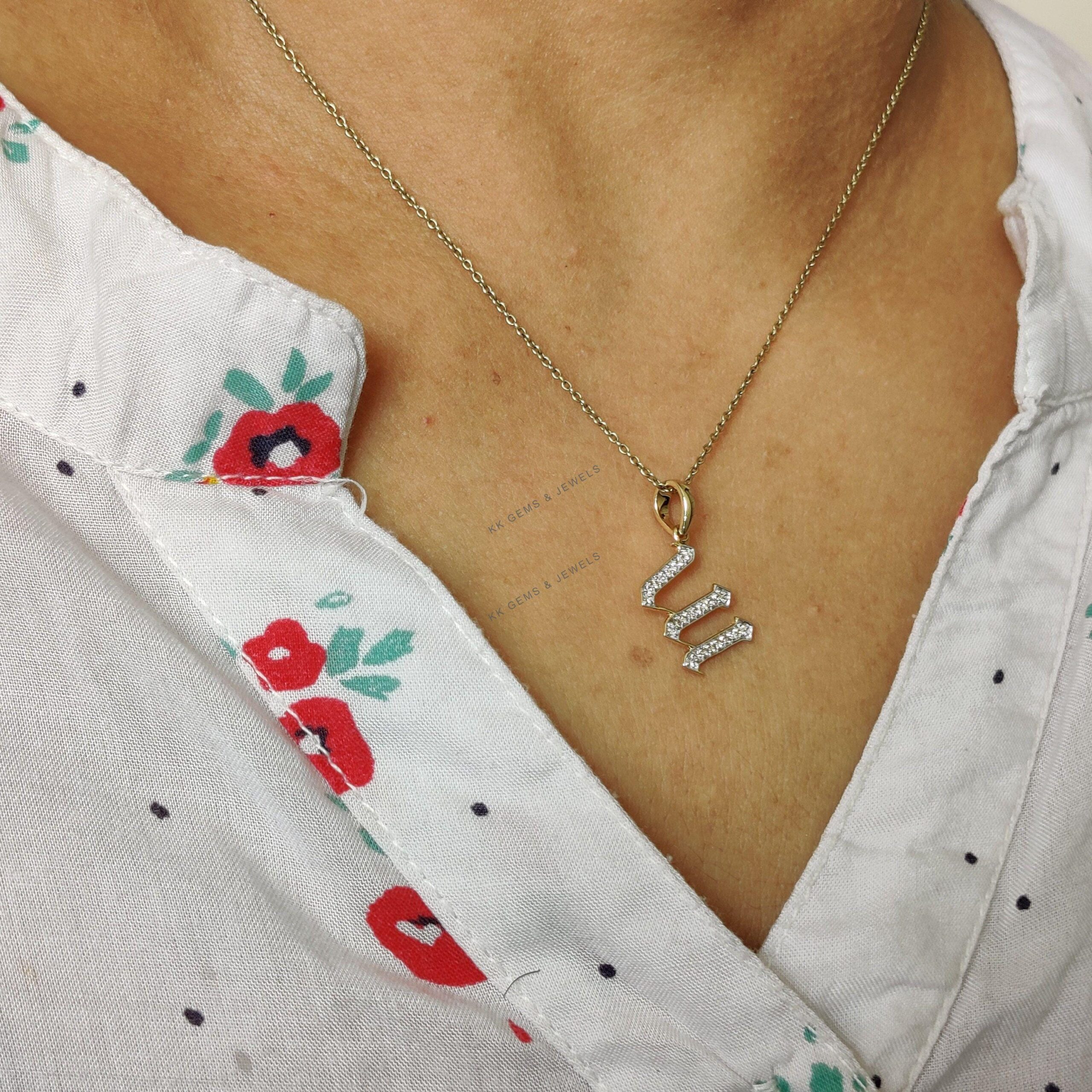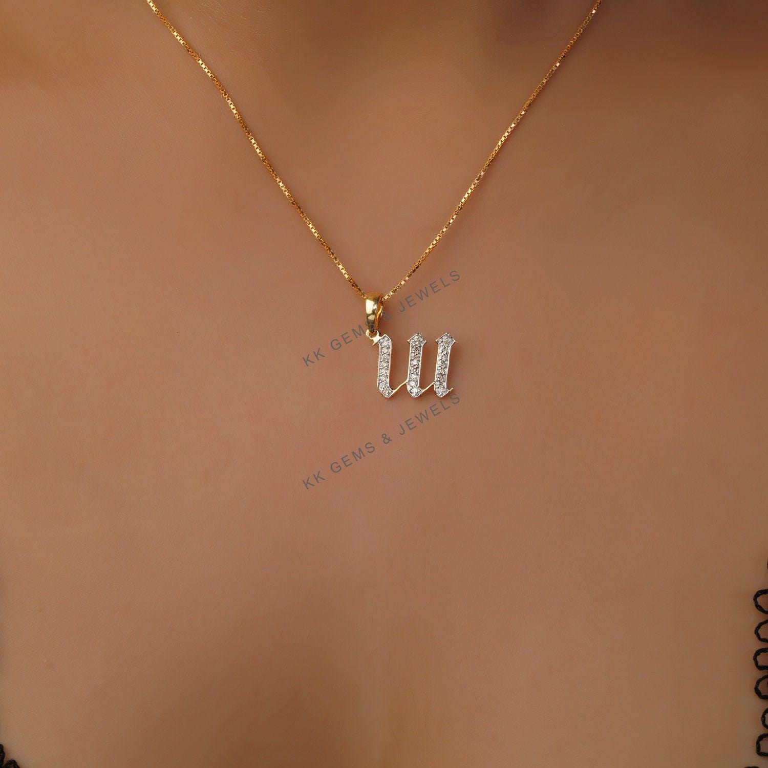 This is an exquisite initial diamond charm pendant set in 14K Solid Gold. An elegant design, perfect for any occassion ITEM DETAILS: ✓ Letter : W ✓ Gold Kt: Solid 14K Yellow Gold ✓ 14 K Gold Weight : 1.03…