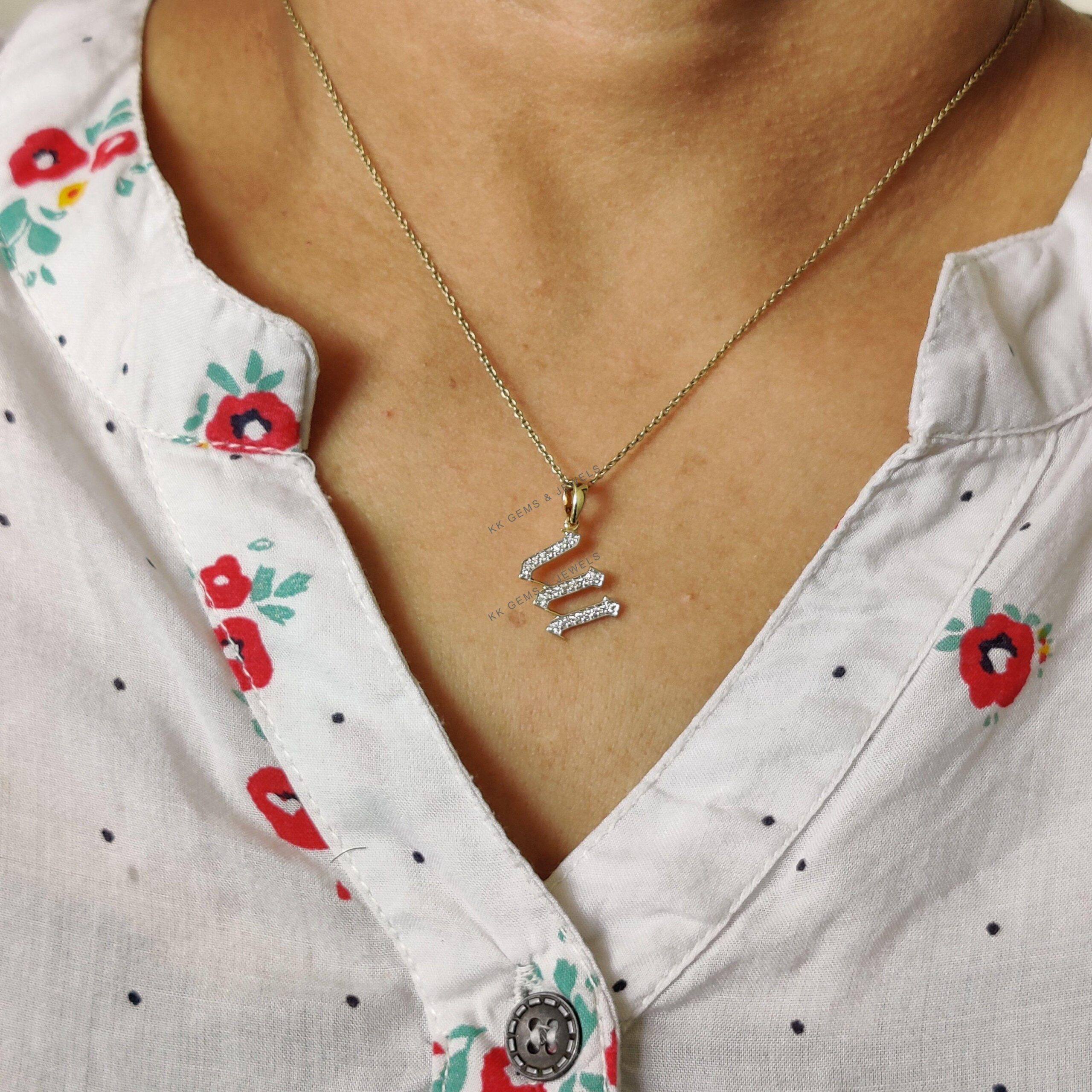 This is an exquisite initial diamond charm pendant set in 14K Solid Gold.