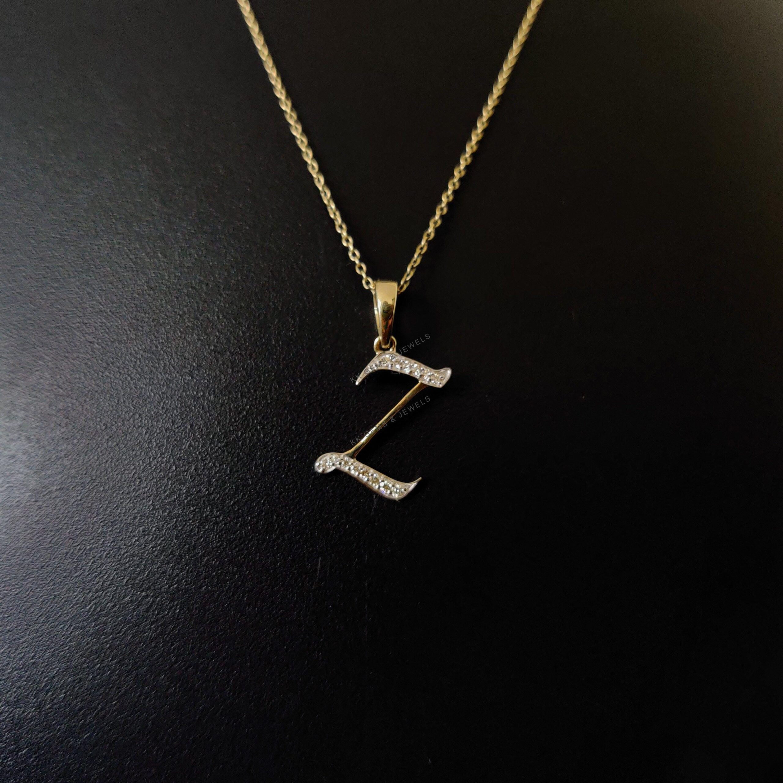 Round Brilliant Diamond Initial Z Pendant Set in 14K Solid Gold, Alphabet Charm Pendant