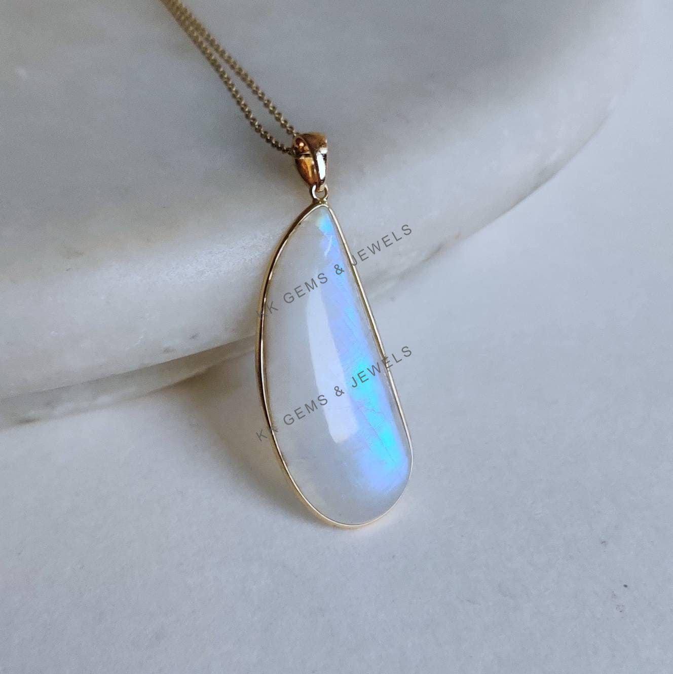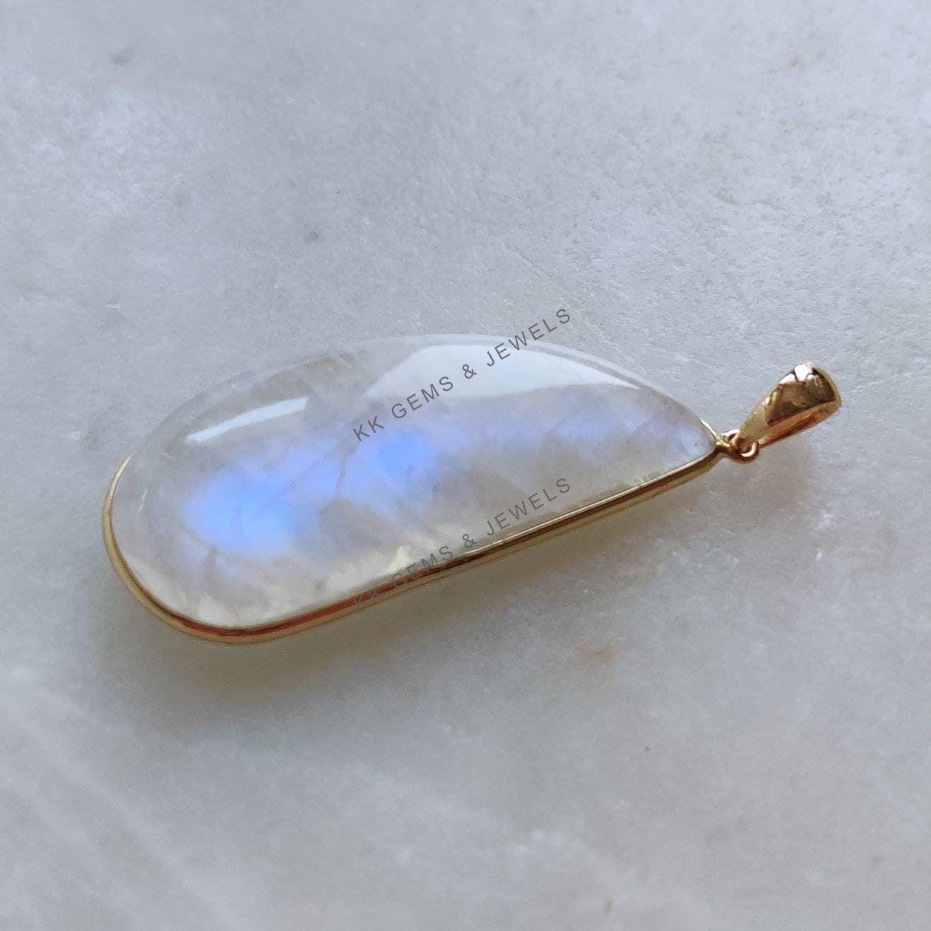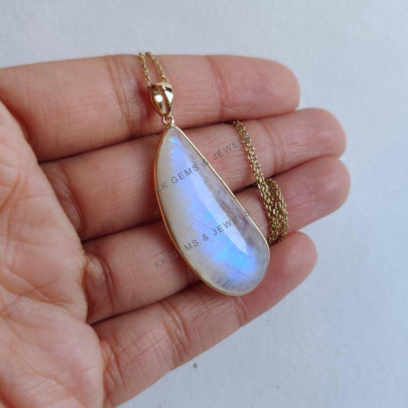This stunning pendant is set in 14k Solid Yellow Gold with Natural Rainbow Moonstone with utmost precision. It is an unique gemstone pendant for nearly every occasion and is completely hassle-free jewelry. ✓ ABOUT GEMSTONE: Rainbow Moonstone is believed to…