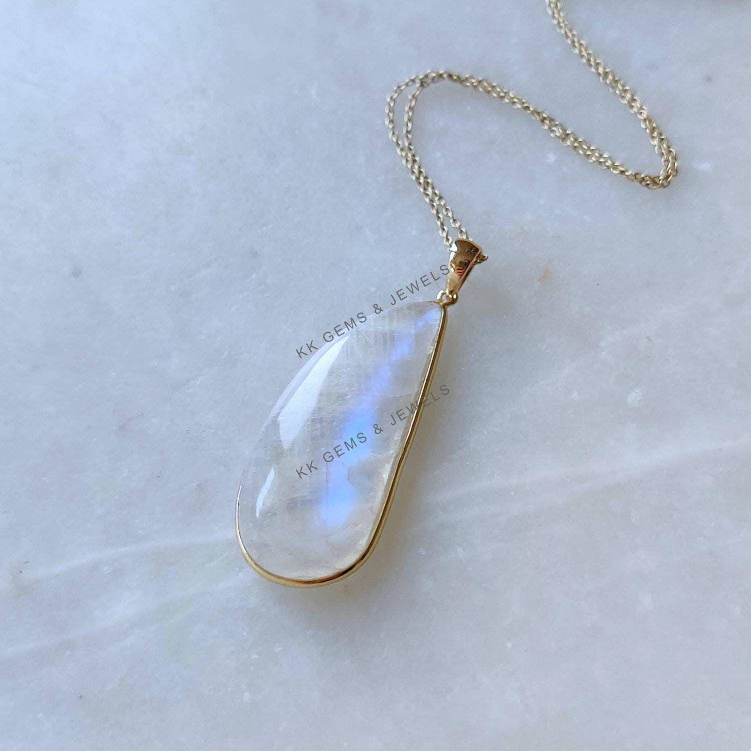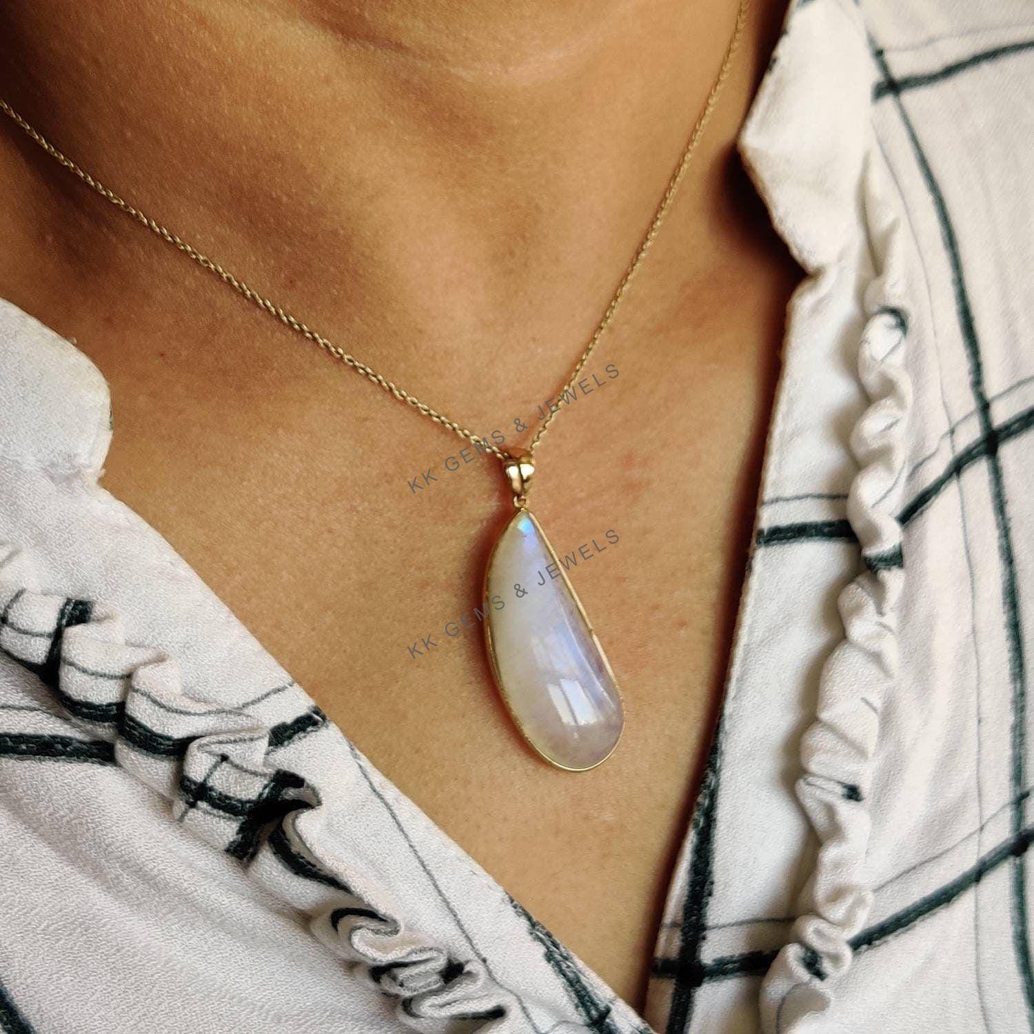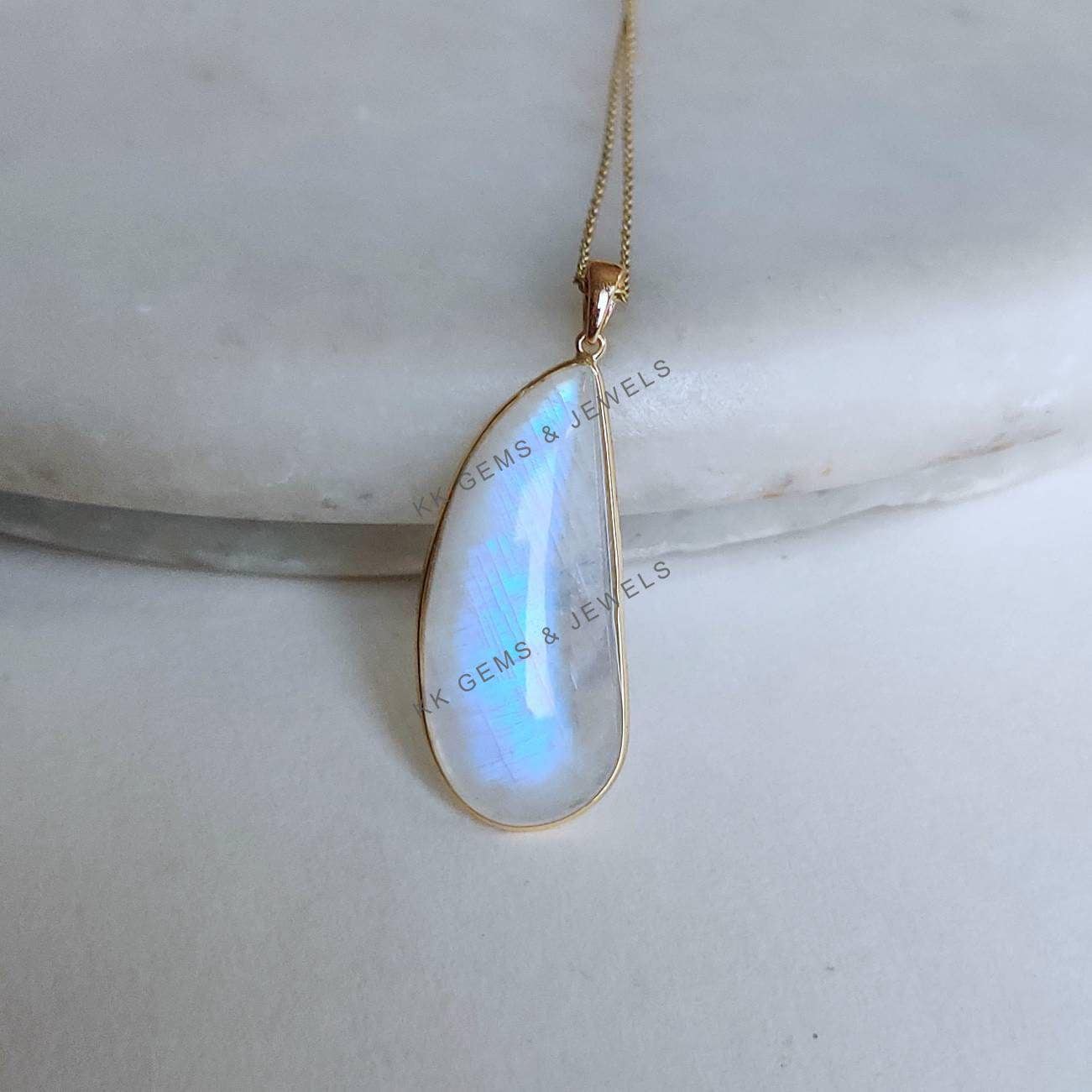 This stunning pendant is set in 14k Solid Yellow Gold with Natural Rainbow Moonstone with utmost precision. It is an unique gemstone pendant for nearly every occasion and is completely hassle-free jewelry. ✓ ABOUT GEMSTONE: Rainbow Moonstone is believed to…