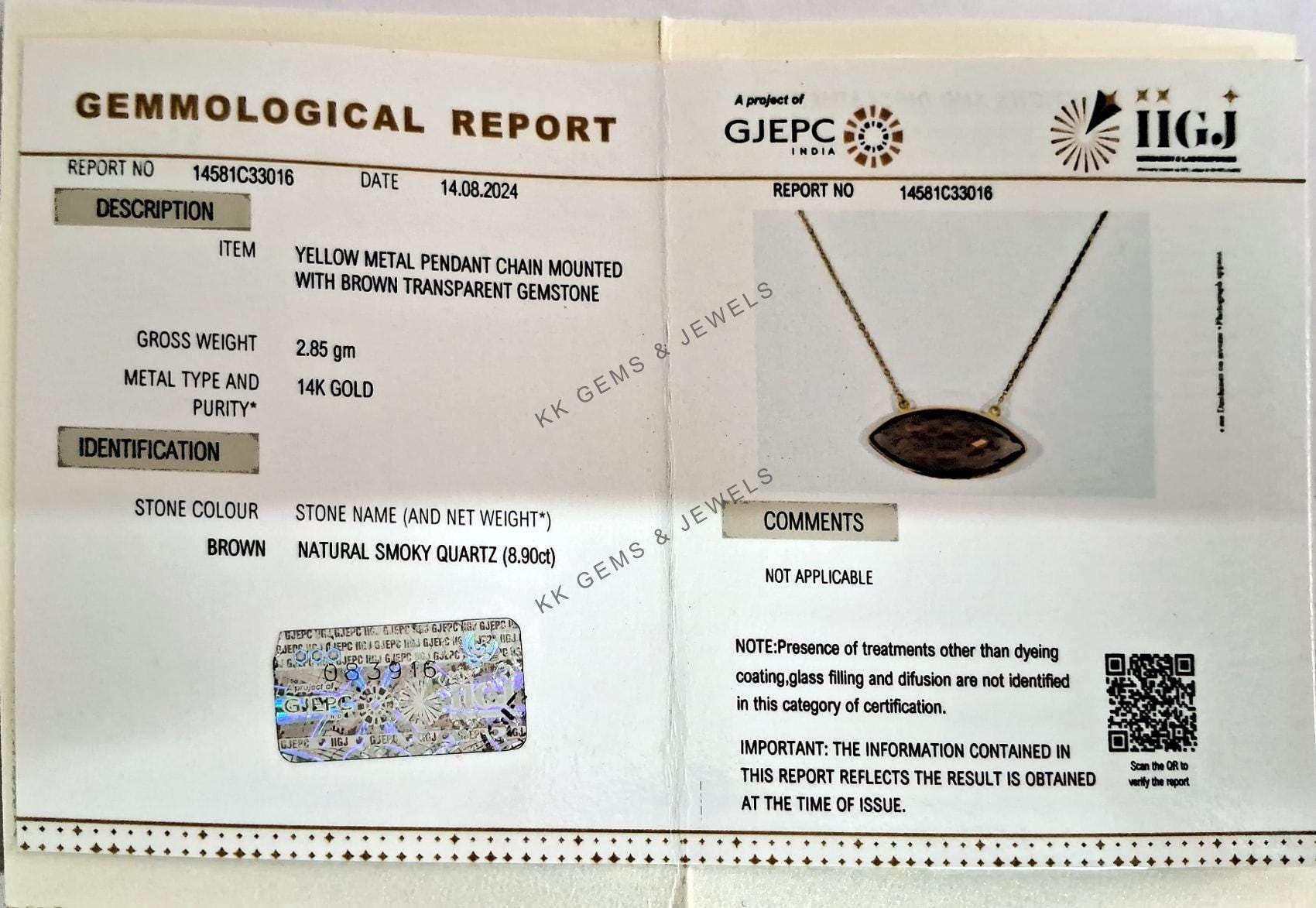 This stunning pendant is set in 14K Solid Yellow Gold with Natural Smoky Quartz with utmost precision. It is an unique gemstone pendant for nearly every occasion and is completely hassle-free jewelry.