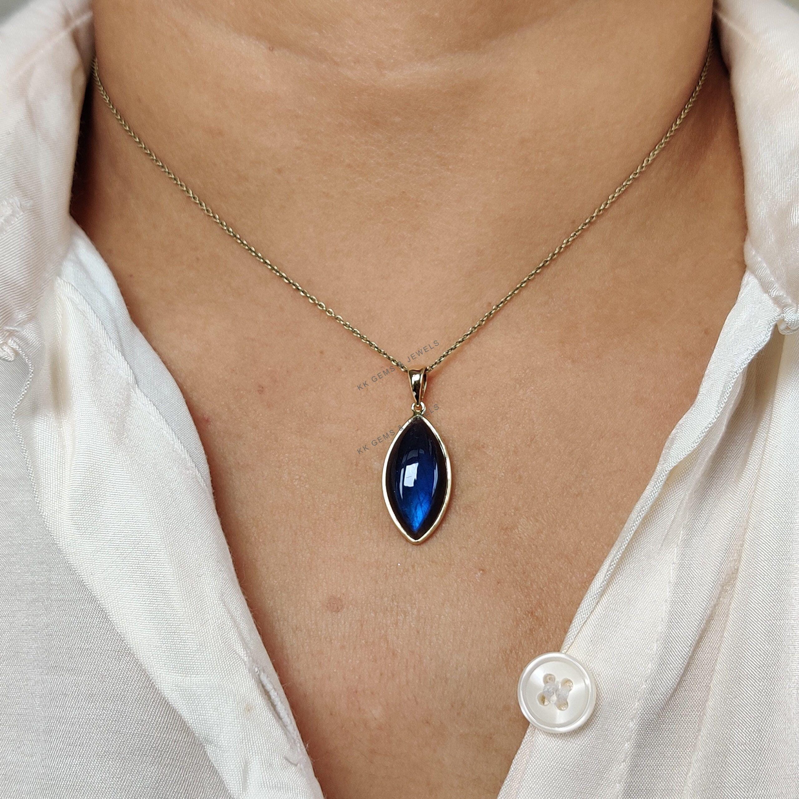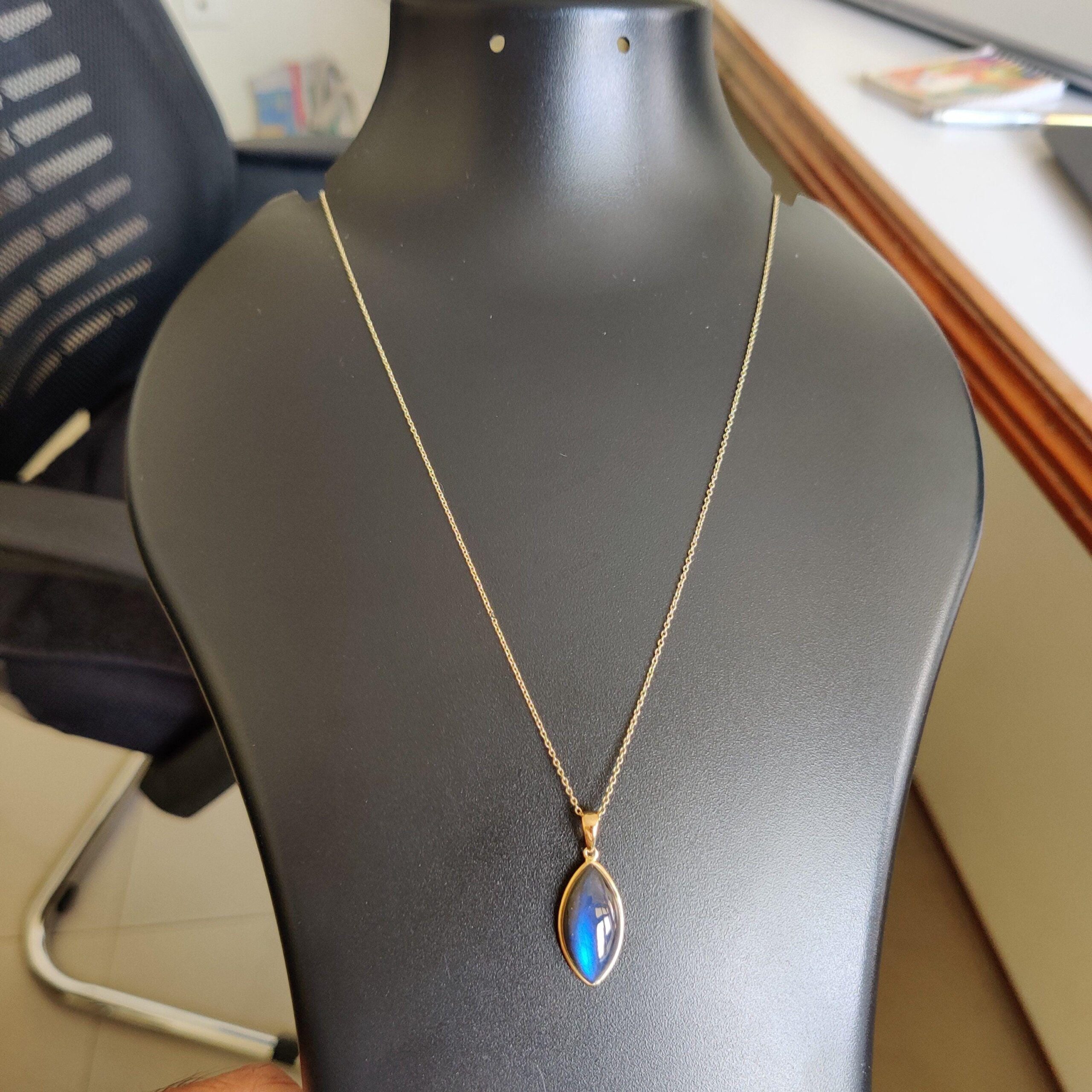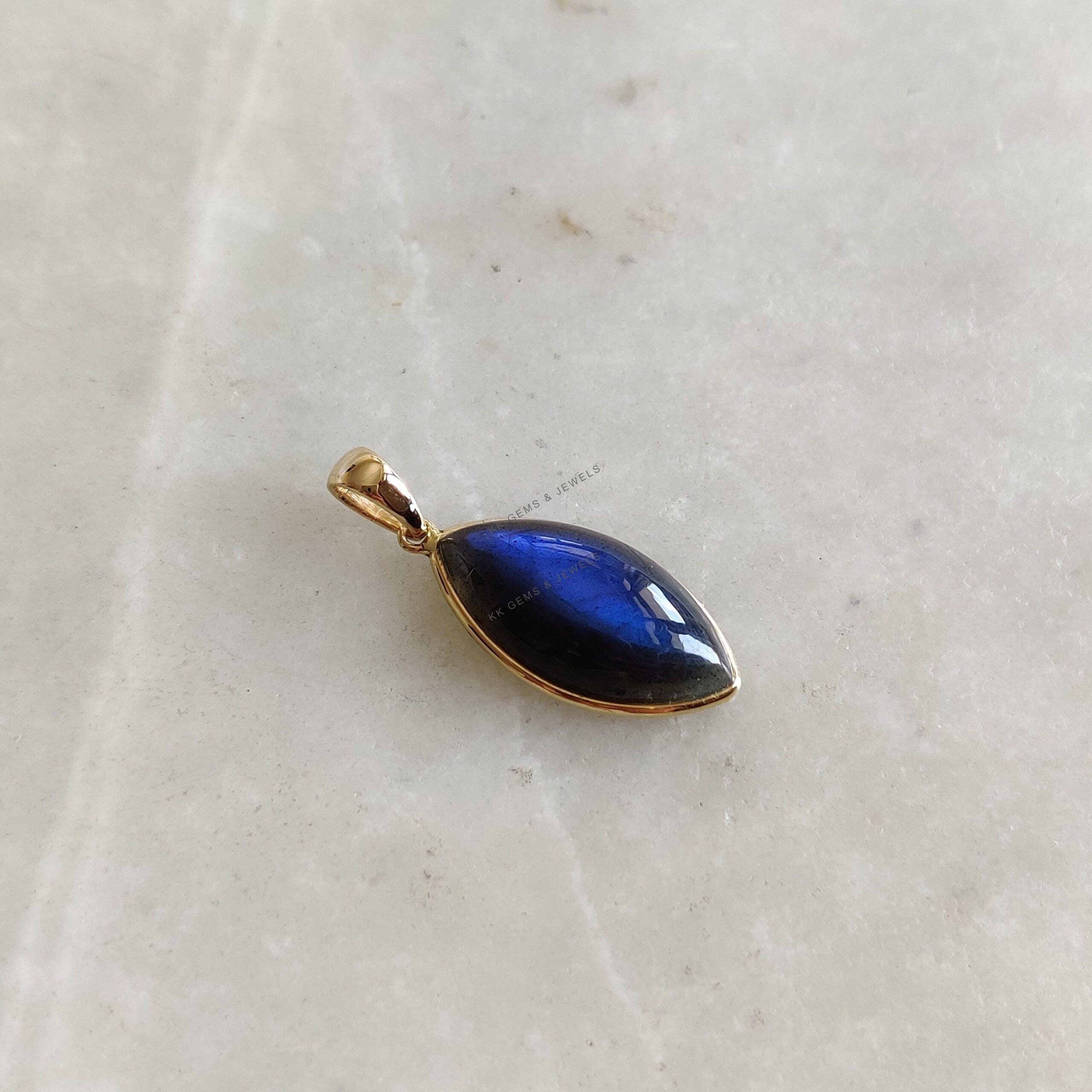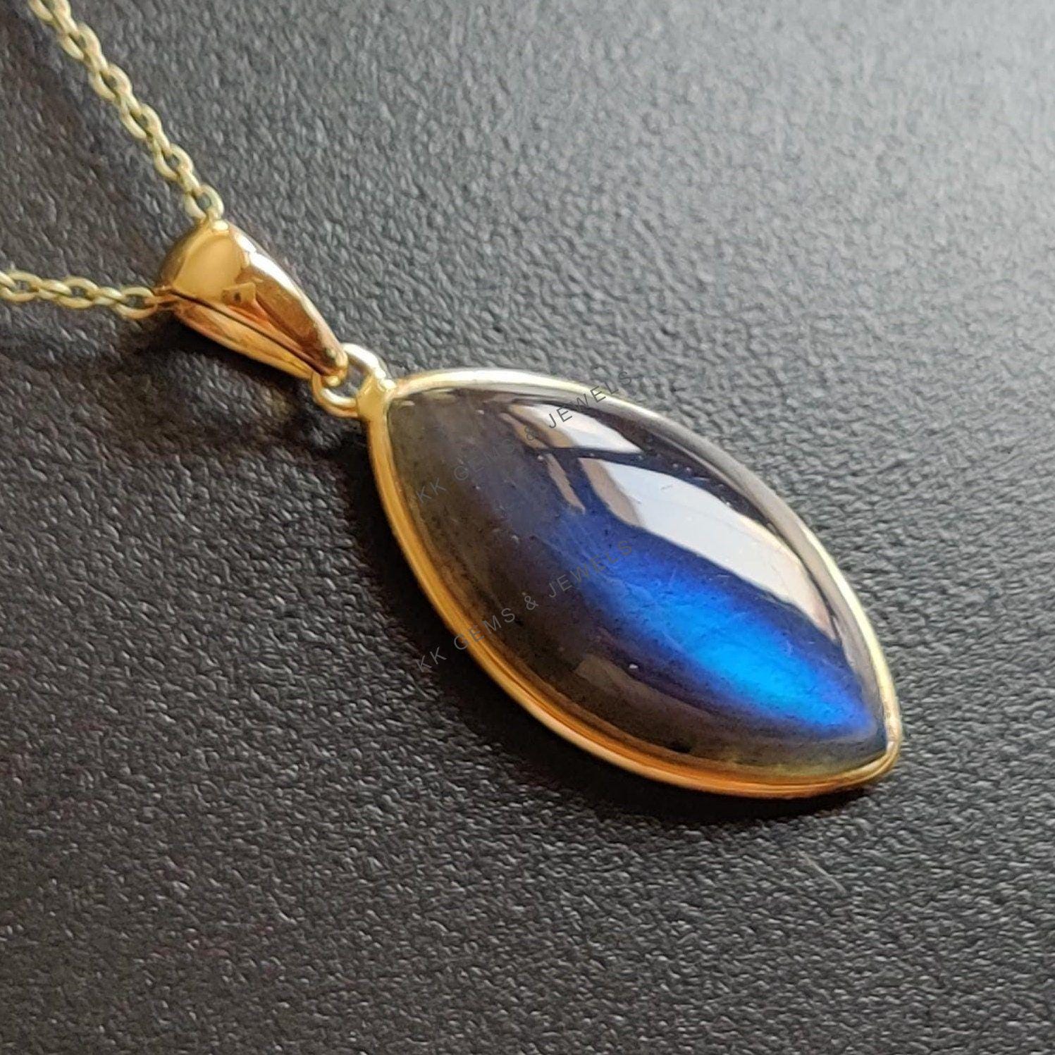 This stunning pendant is set in 14k Solid Yellow Gold with Natural Labradorite having a beautiful blue sheen. It is an unique gemstone pendant for nearly every occasion and is completely hassle-free jewelry. ✓ ABOUT GEMSTONE: Labradorite is a mesmerizing…