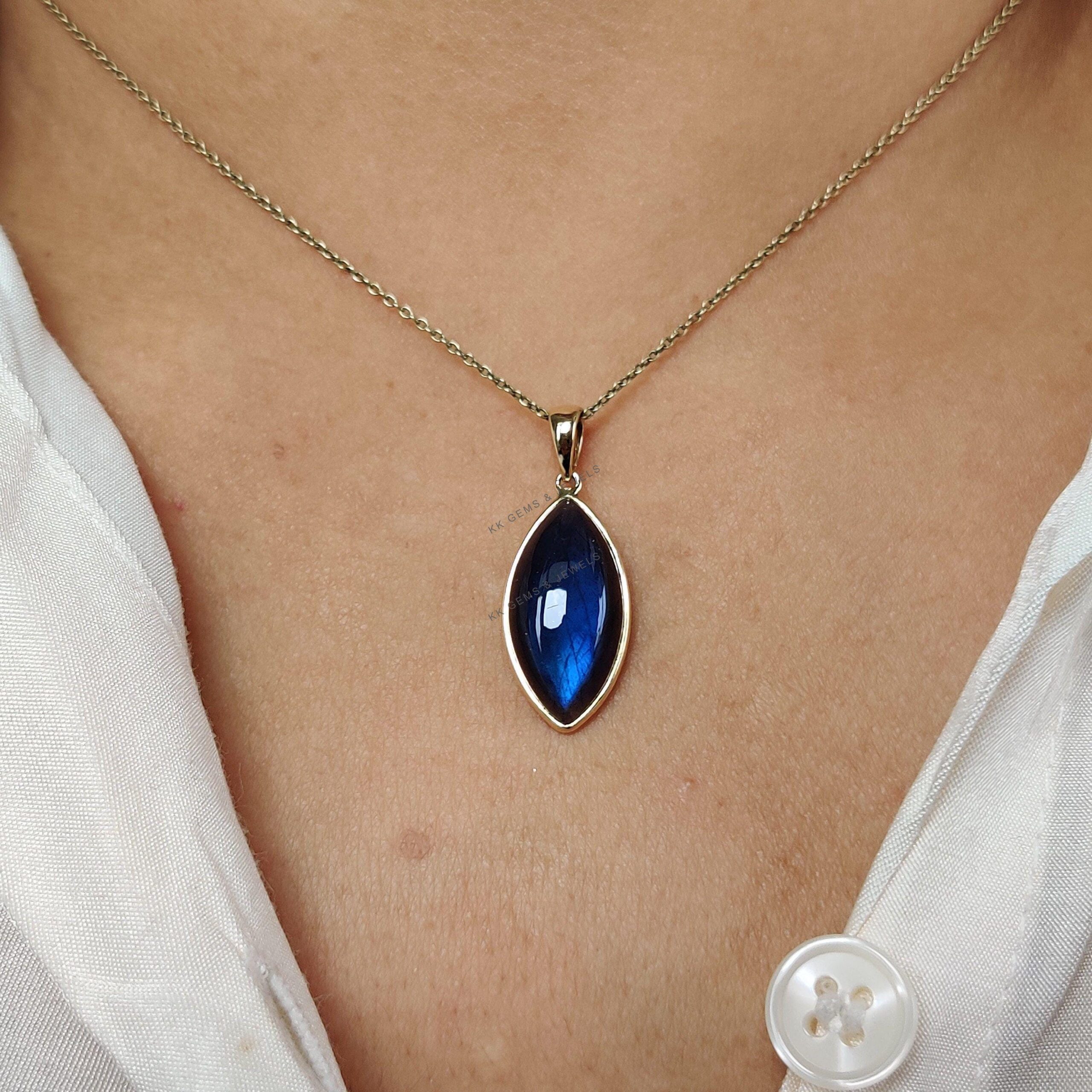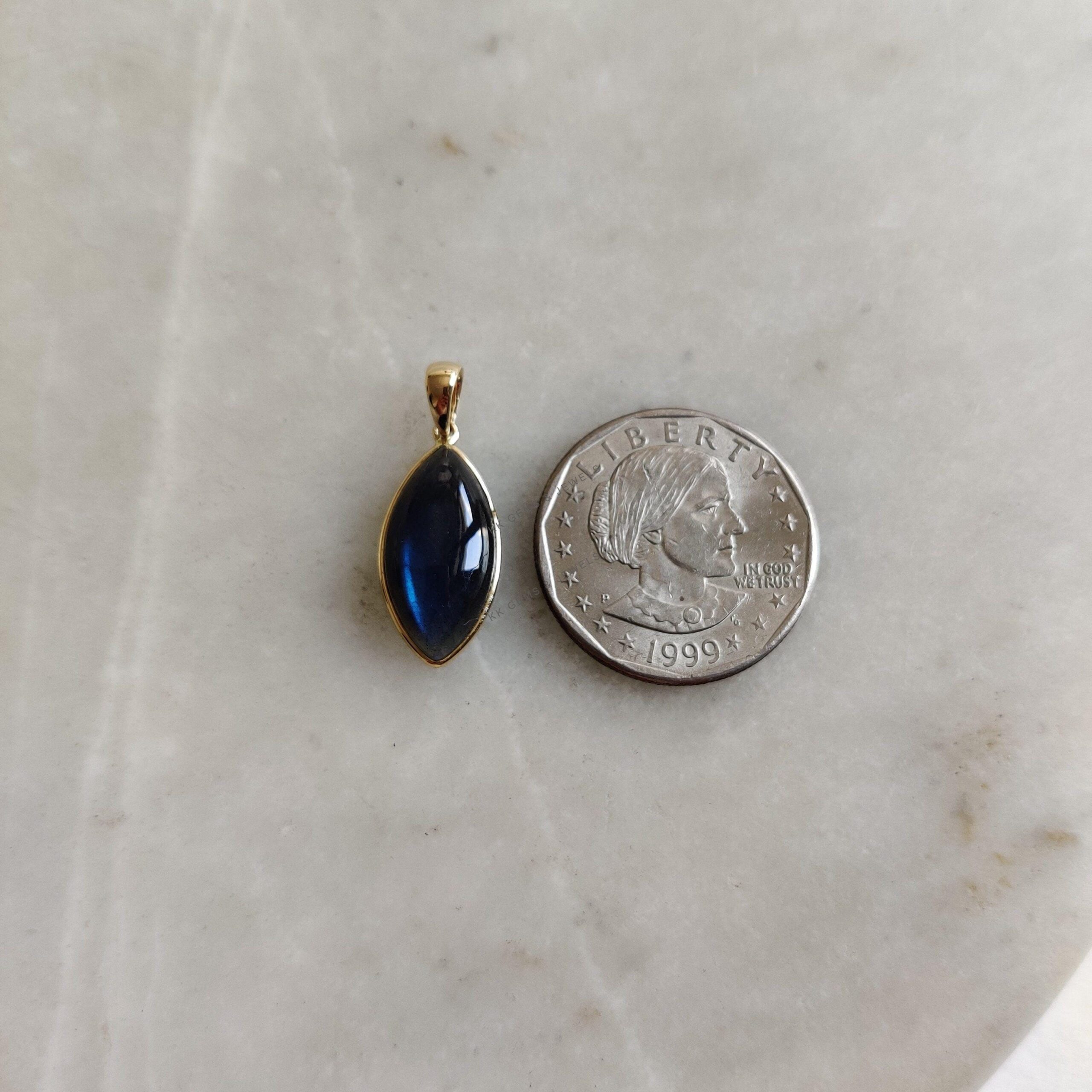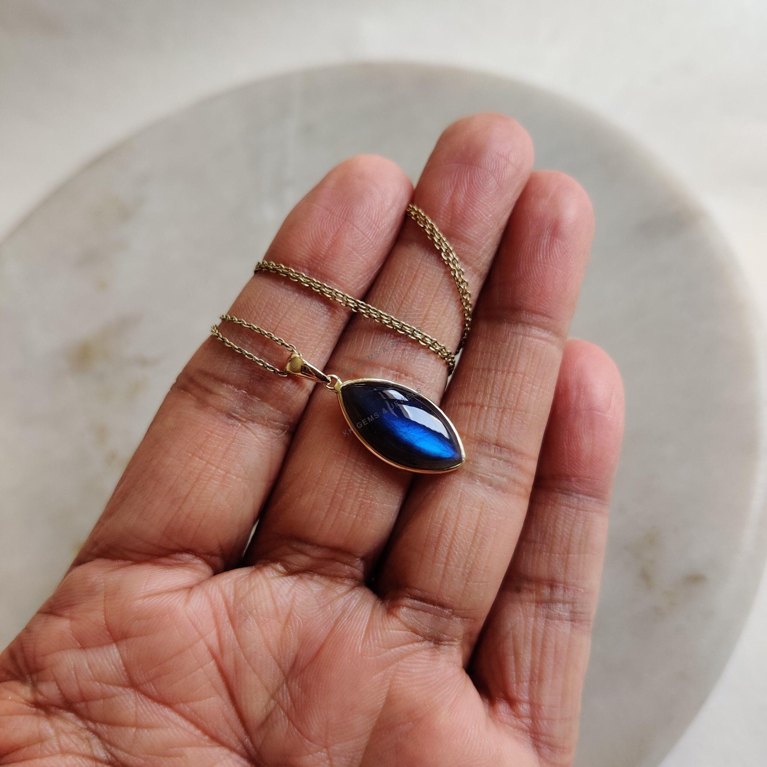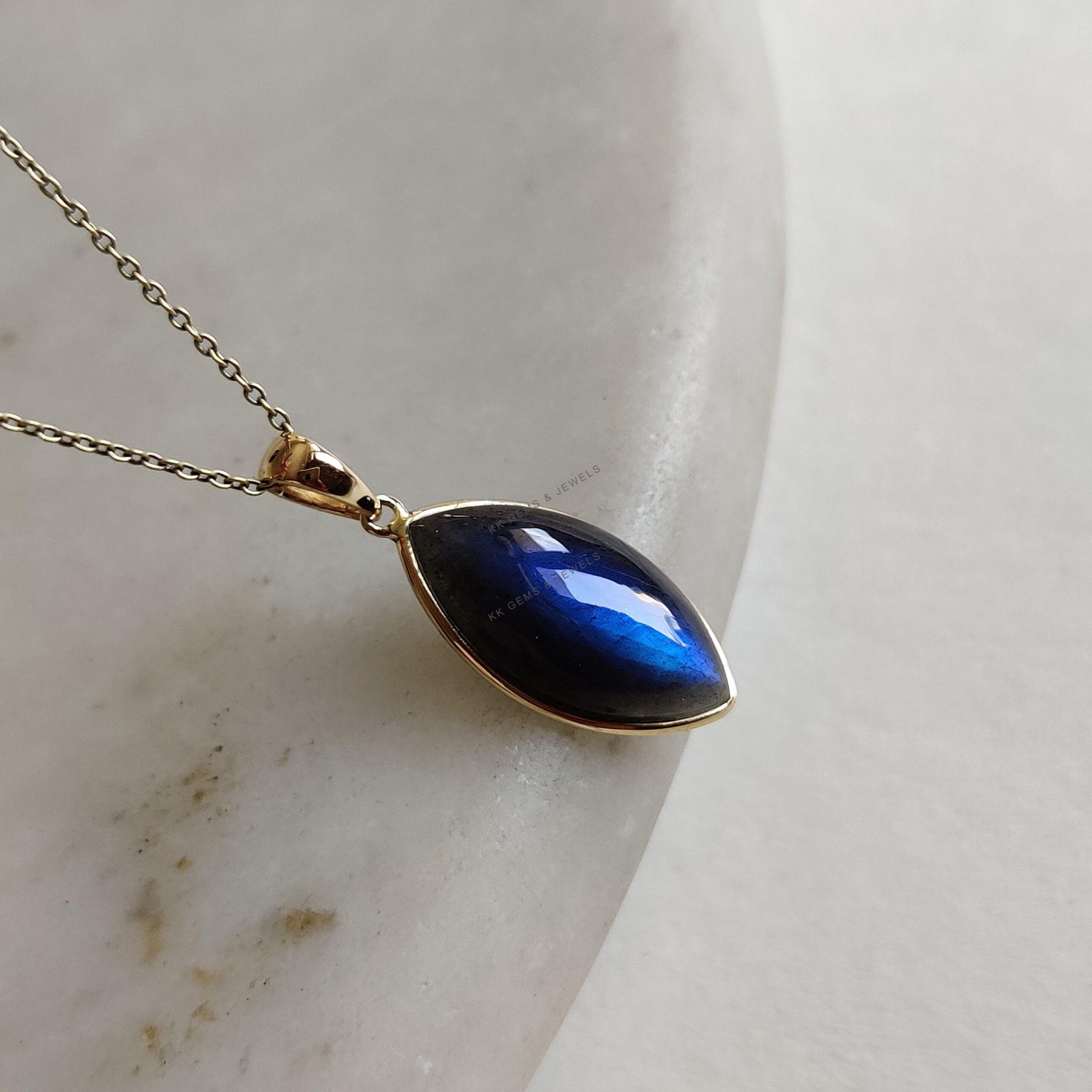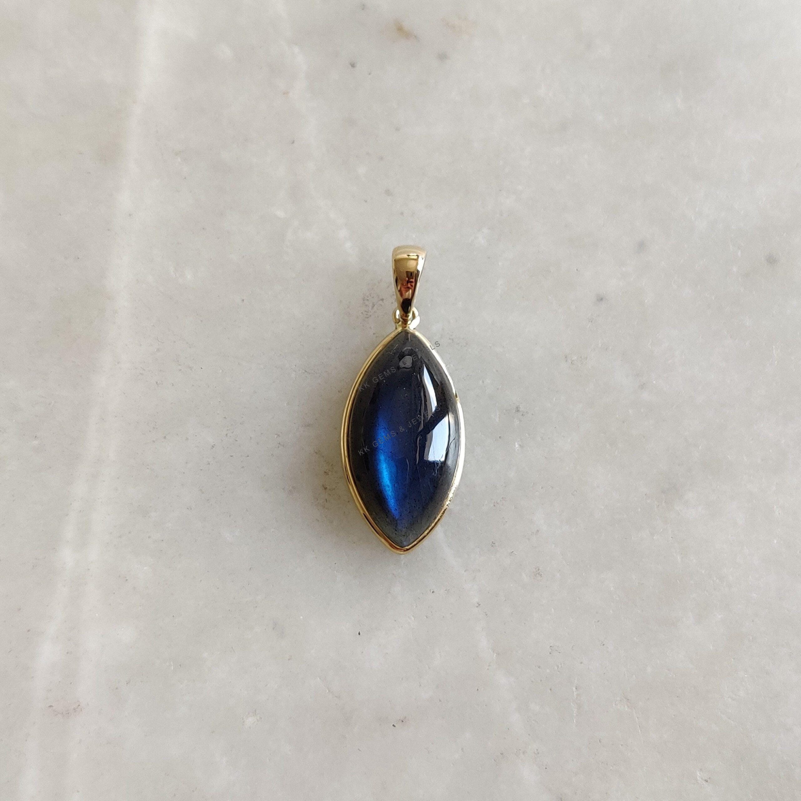 2 reviews for Marquise Cabochon Natural Labradorite Pendant Set in 14K Solid Gold, November Birthstone Jewelry