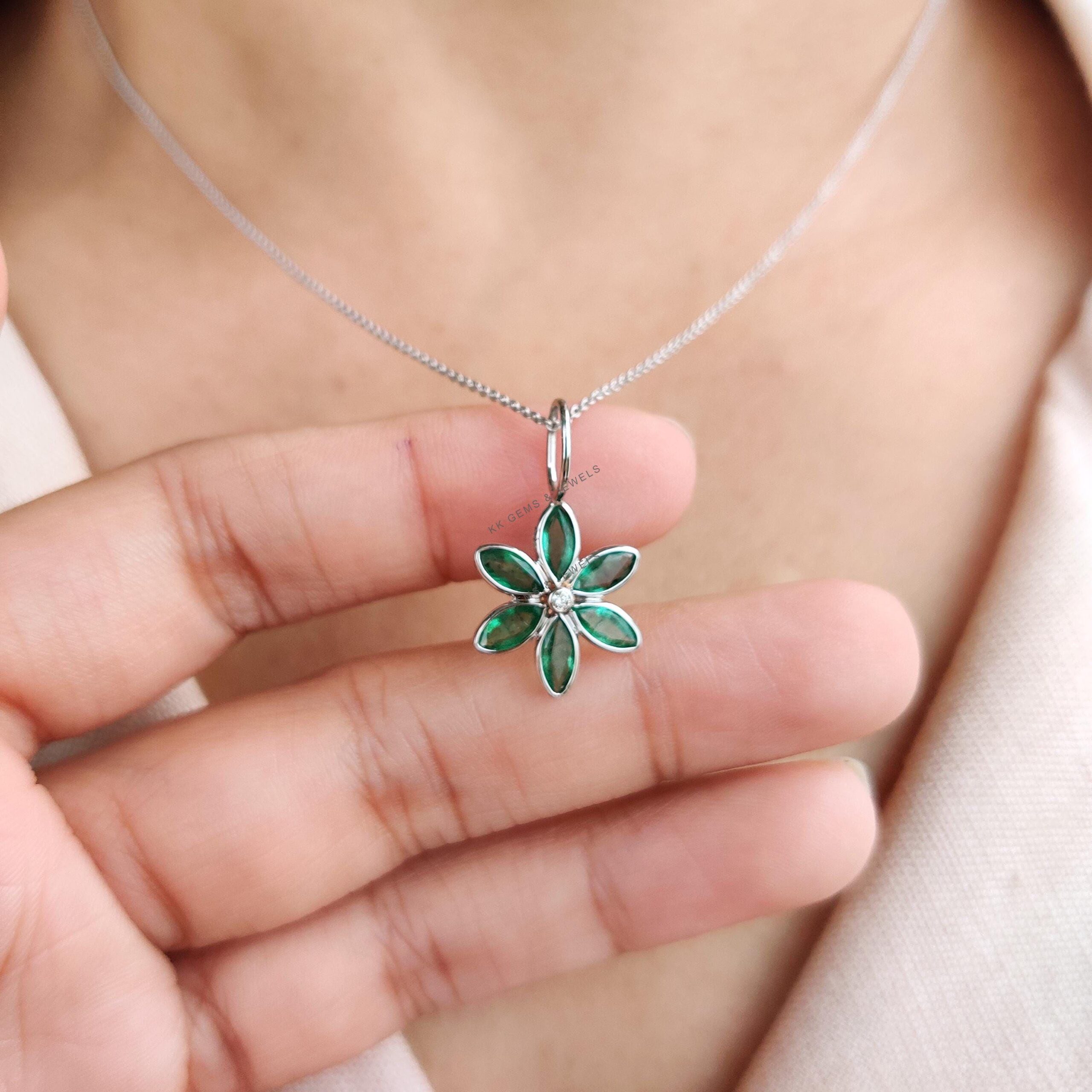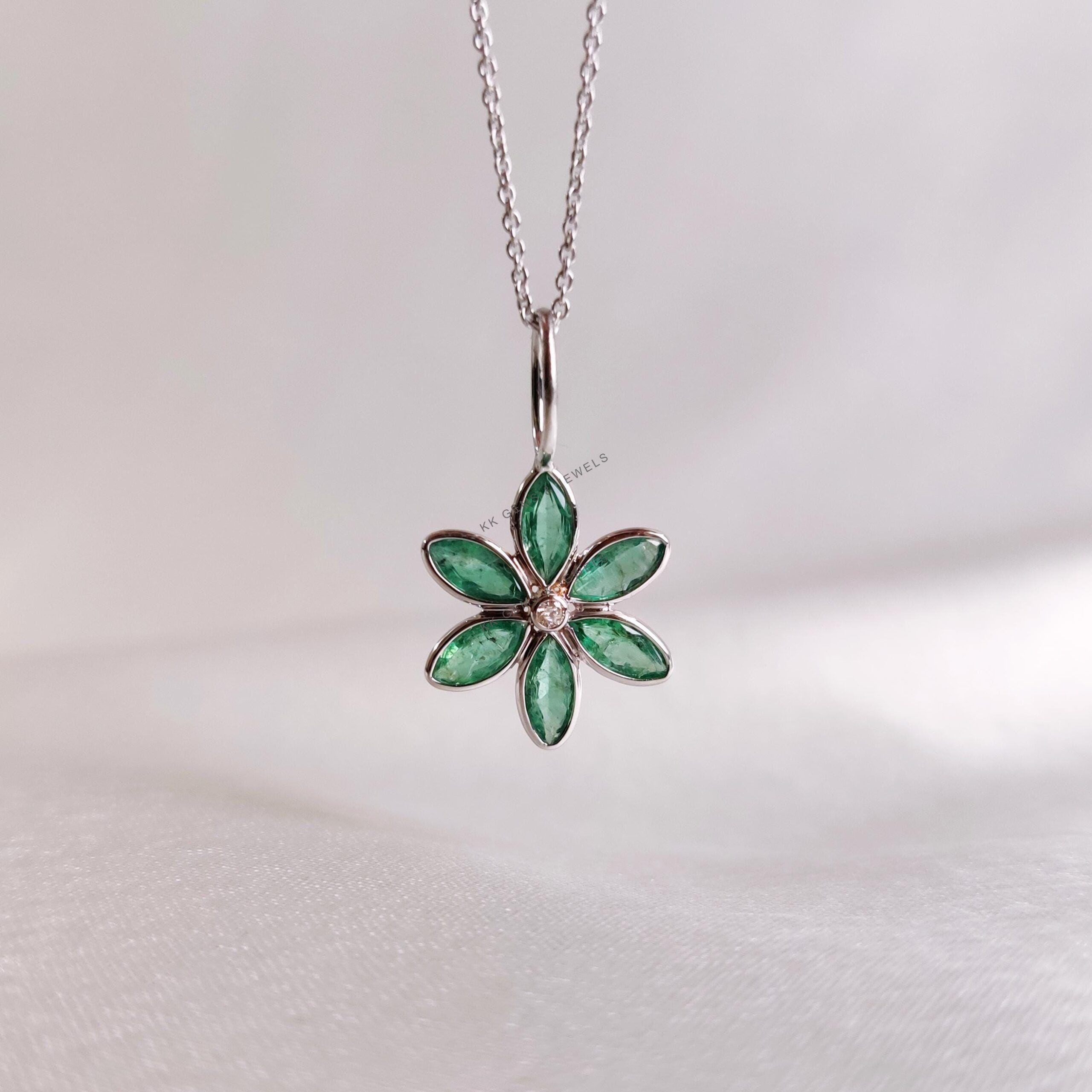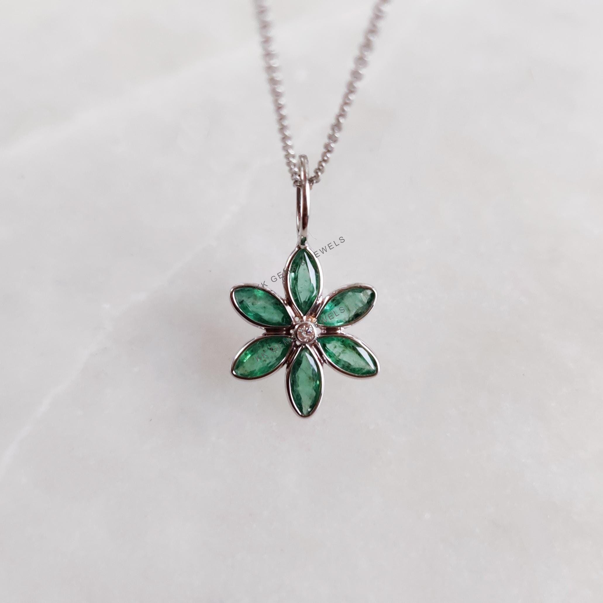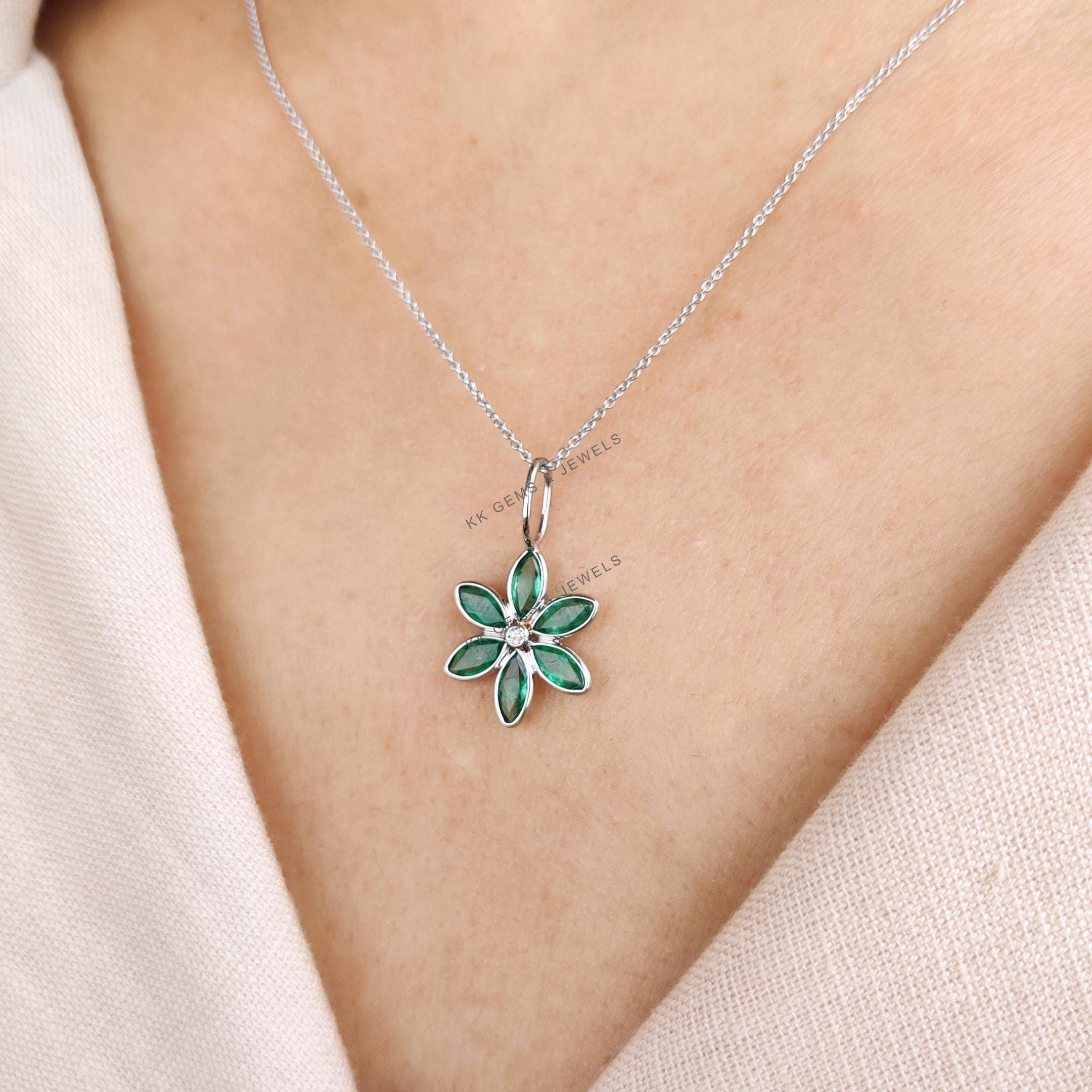 This stunning pendant is set in 14K Solid White Gold with Natural Emerald and Diamond in utmost precision. It is an unique gemstone pendant for nearly every occasion and is completely hassle-free jewelry. ITEM DETAILS • Gem: Emerald • Gem…