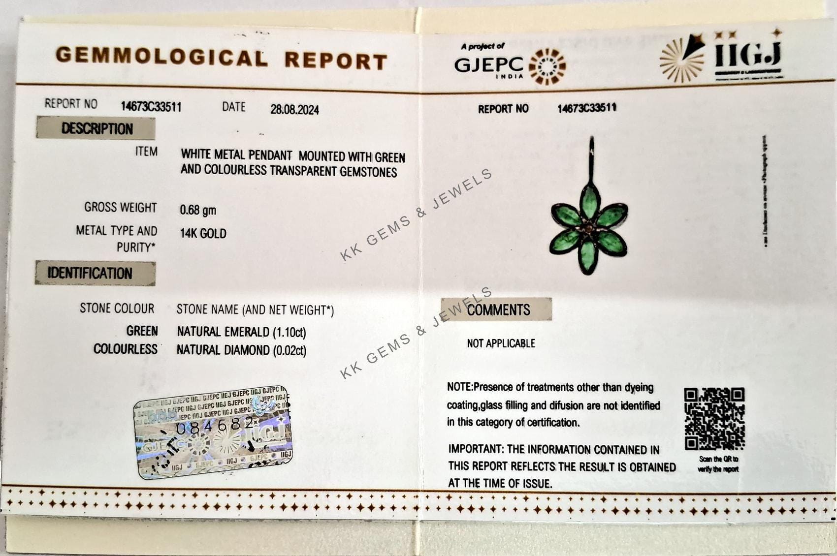This stunning pendant is set in 14K Solid White Gold with Natural Emerald and Diamond in utmost precision. It is an unique gemstone pendant for nearly every occasion and is completely hassle-free jewelry.
