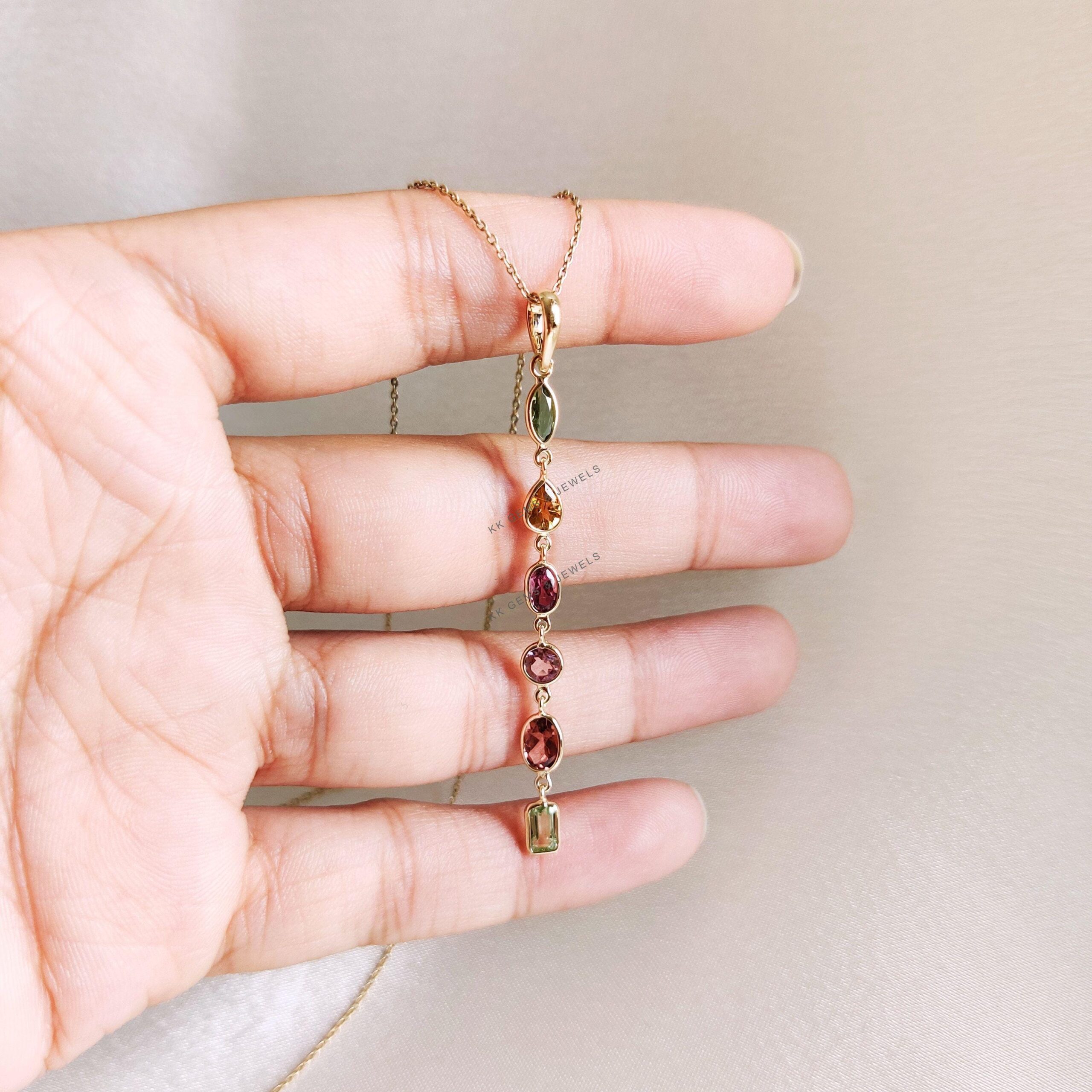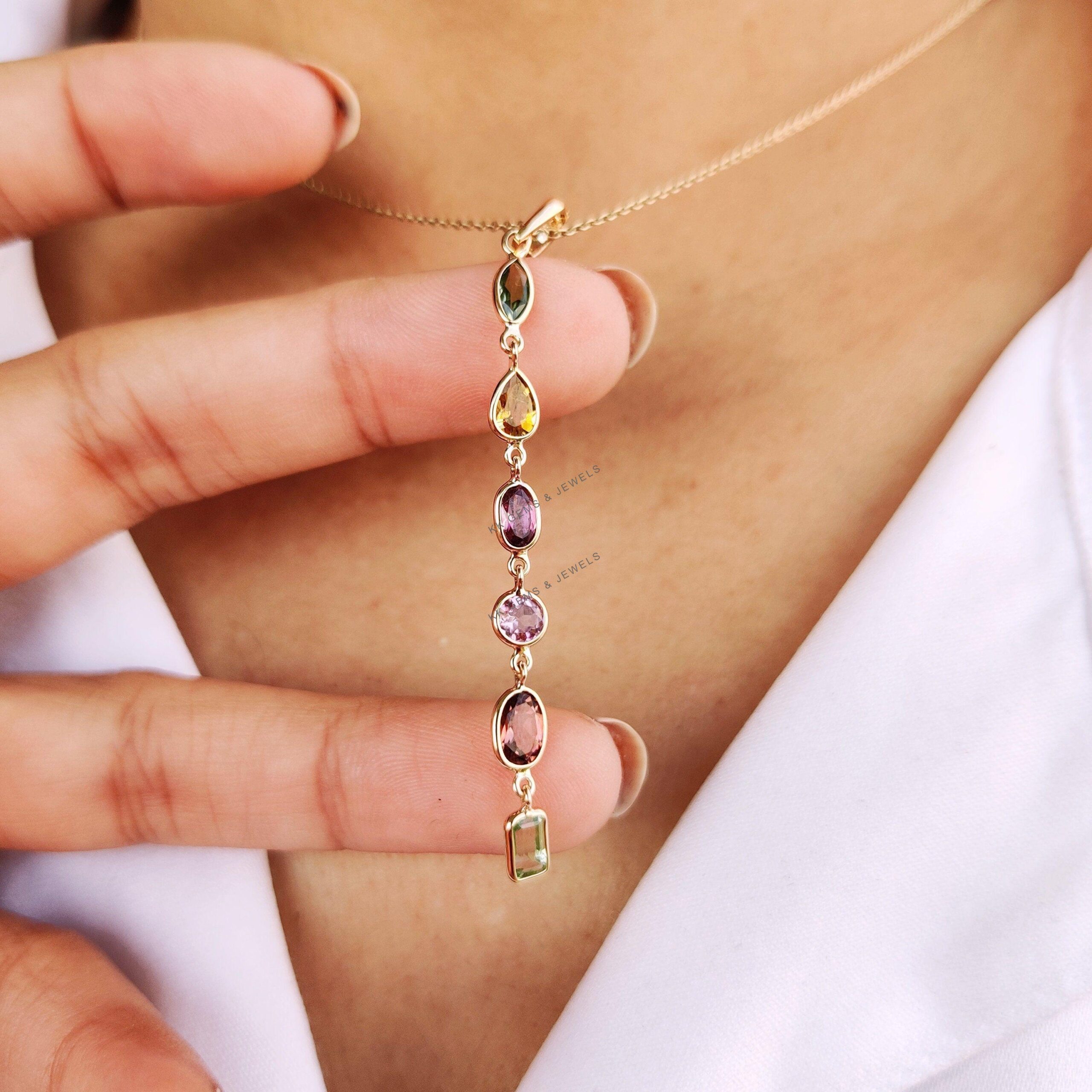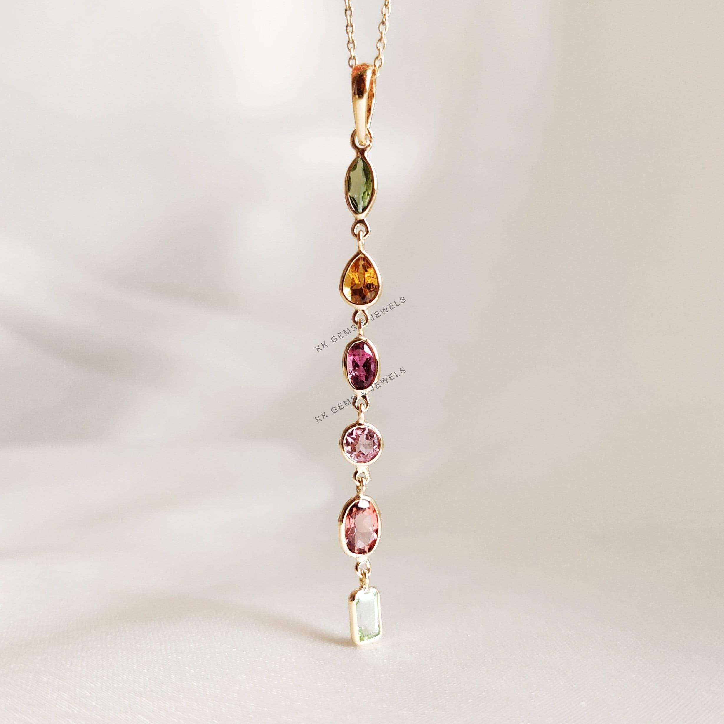 1 review for Marquise Cut Natural Tourmaline Multi Stone Pendant Set in 14K Solid Gold, October Birthstone