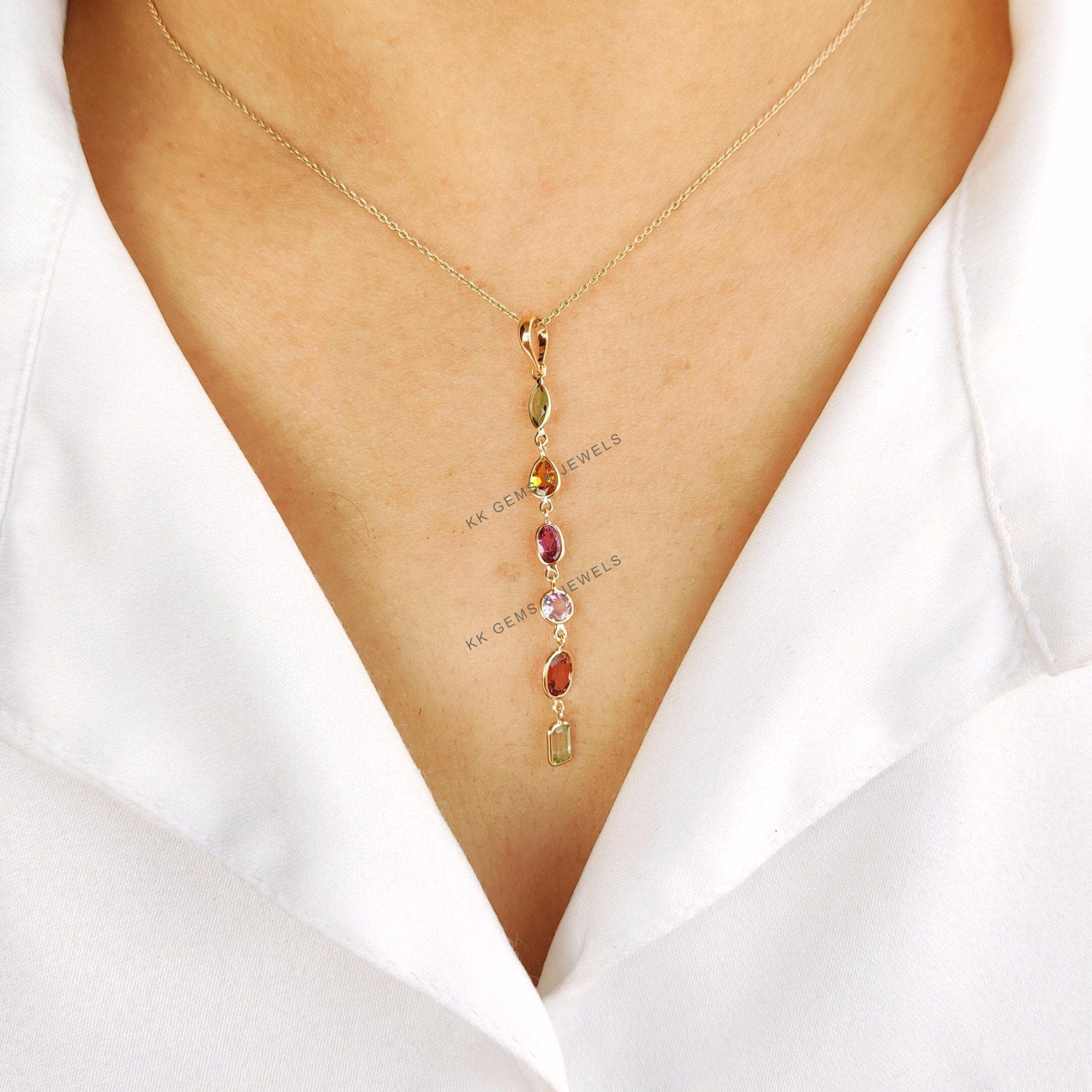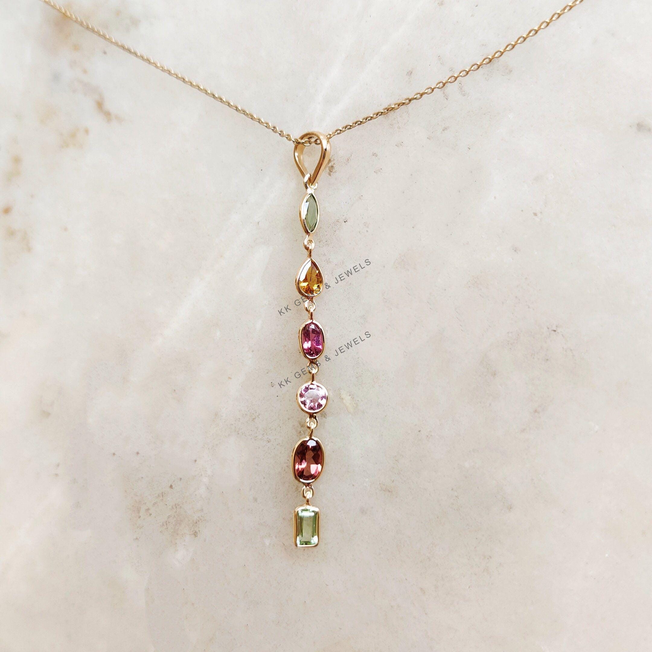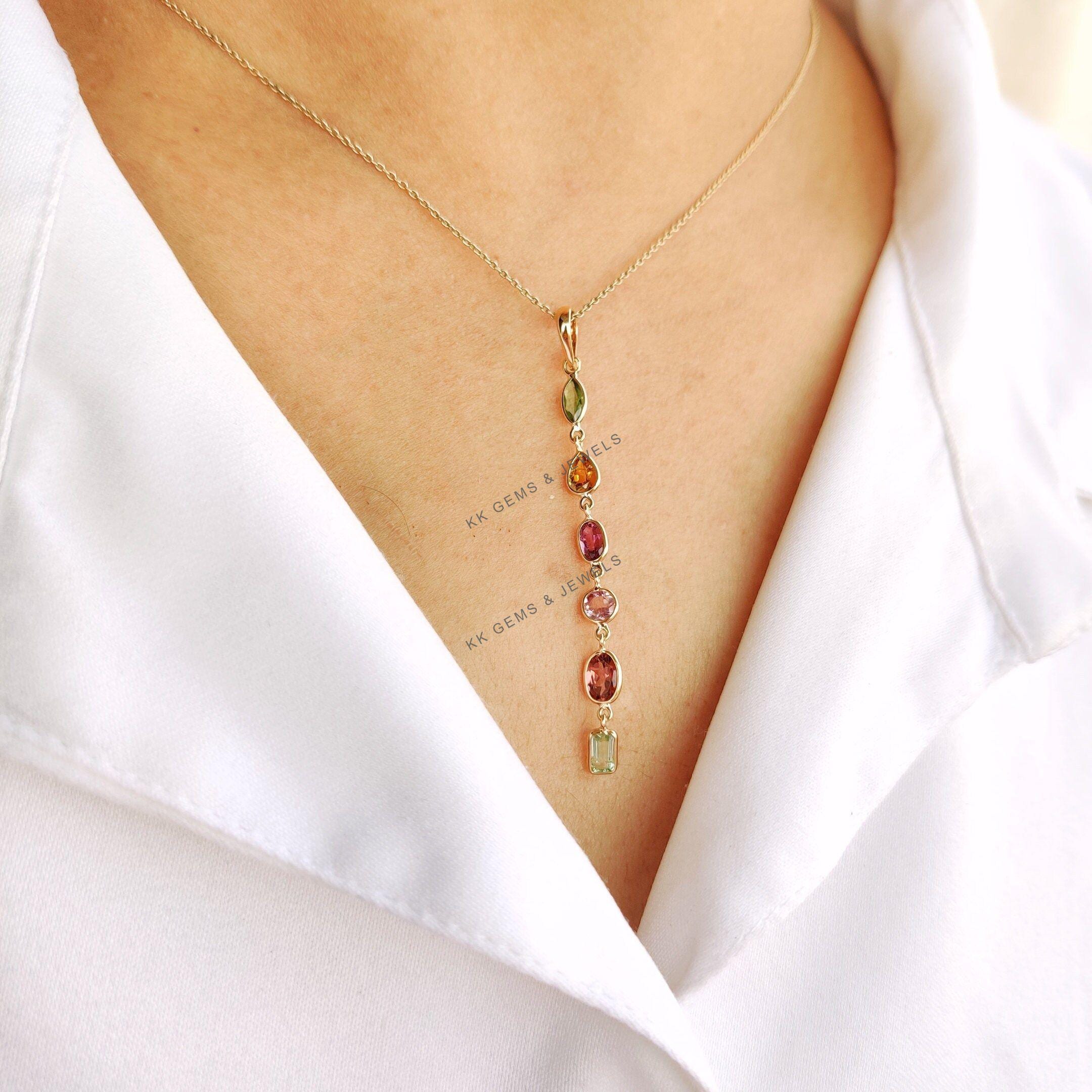1 review for Marquise Cut Natural Tourmaline Multi Stone Pendant Set in 14K Solid Gold, October Birthstone