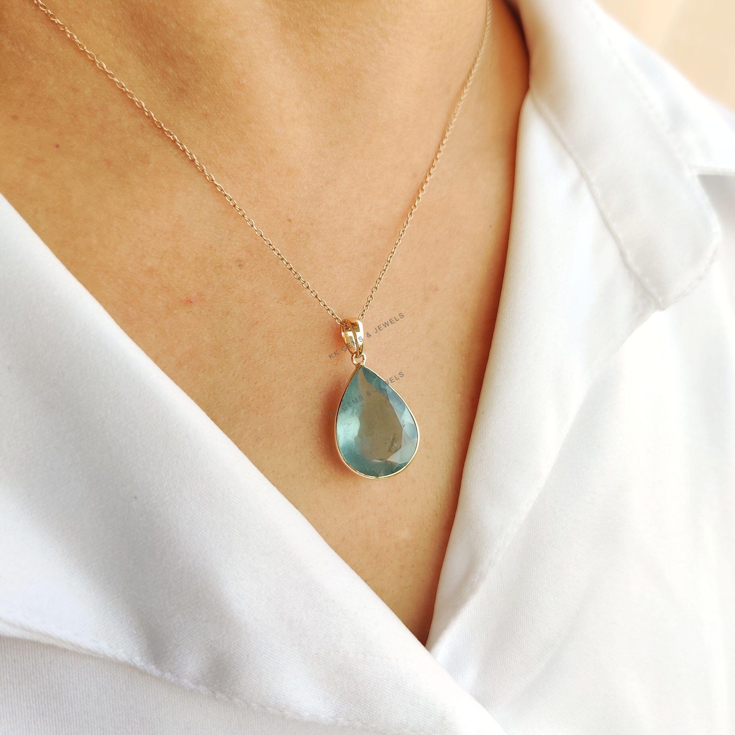 This stunning pendant is set in 14K Solid Yellow Gold with Natural Aquamarine with utmost precision. It is an unique gemstone pendant for nearly every occasion and is completely hassle-free jewelry. ✓ ABOUT GEMSTONE: Aquamarine is often considered a calming…