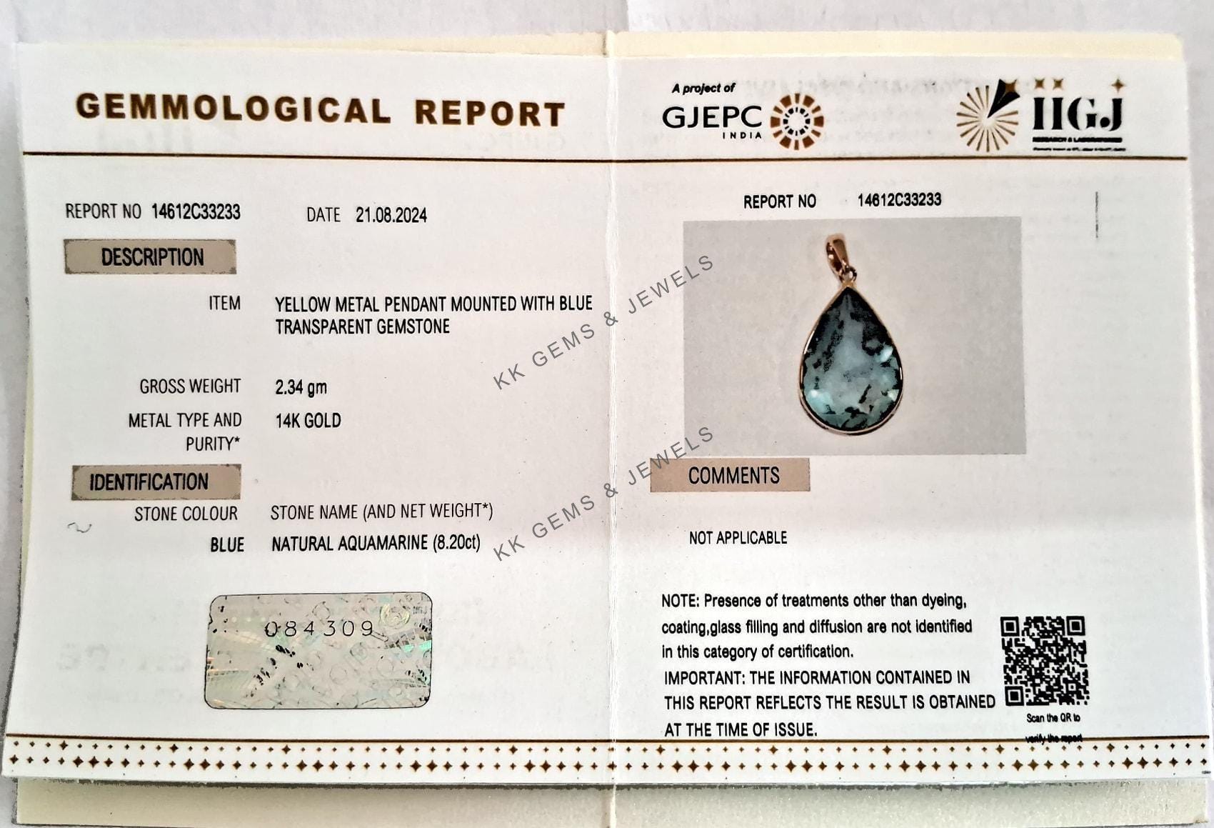 This stunning pendant is set in 14K Solid Yellow Gold with Natural Aquamarine with utmost precision. It is an unique gemstone pendant for nearly every occasion and is completely hassle-free jewelry.