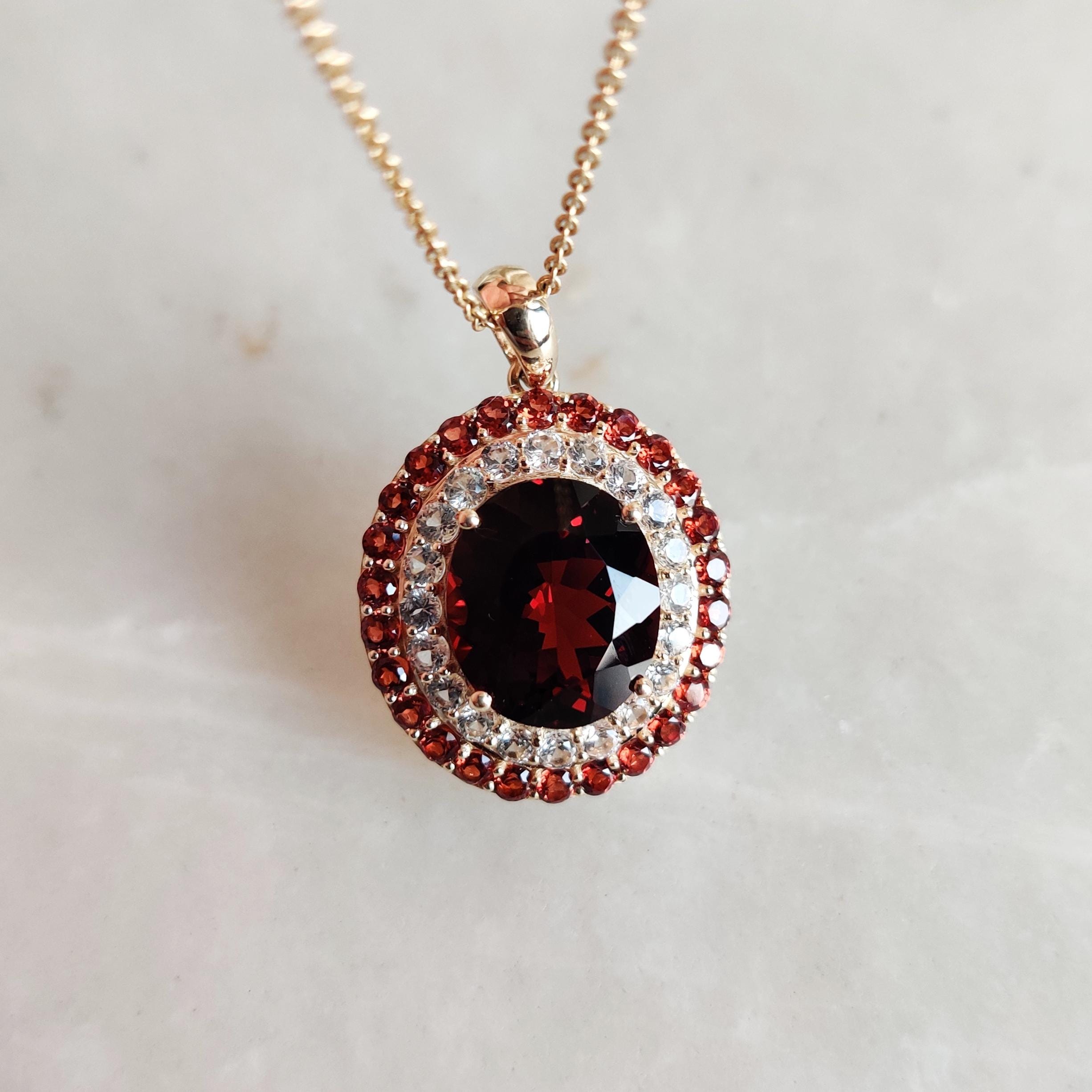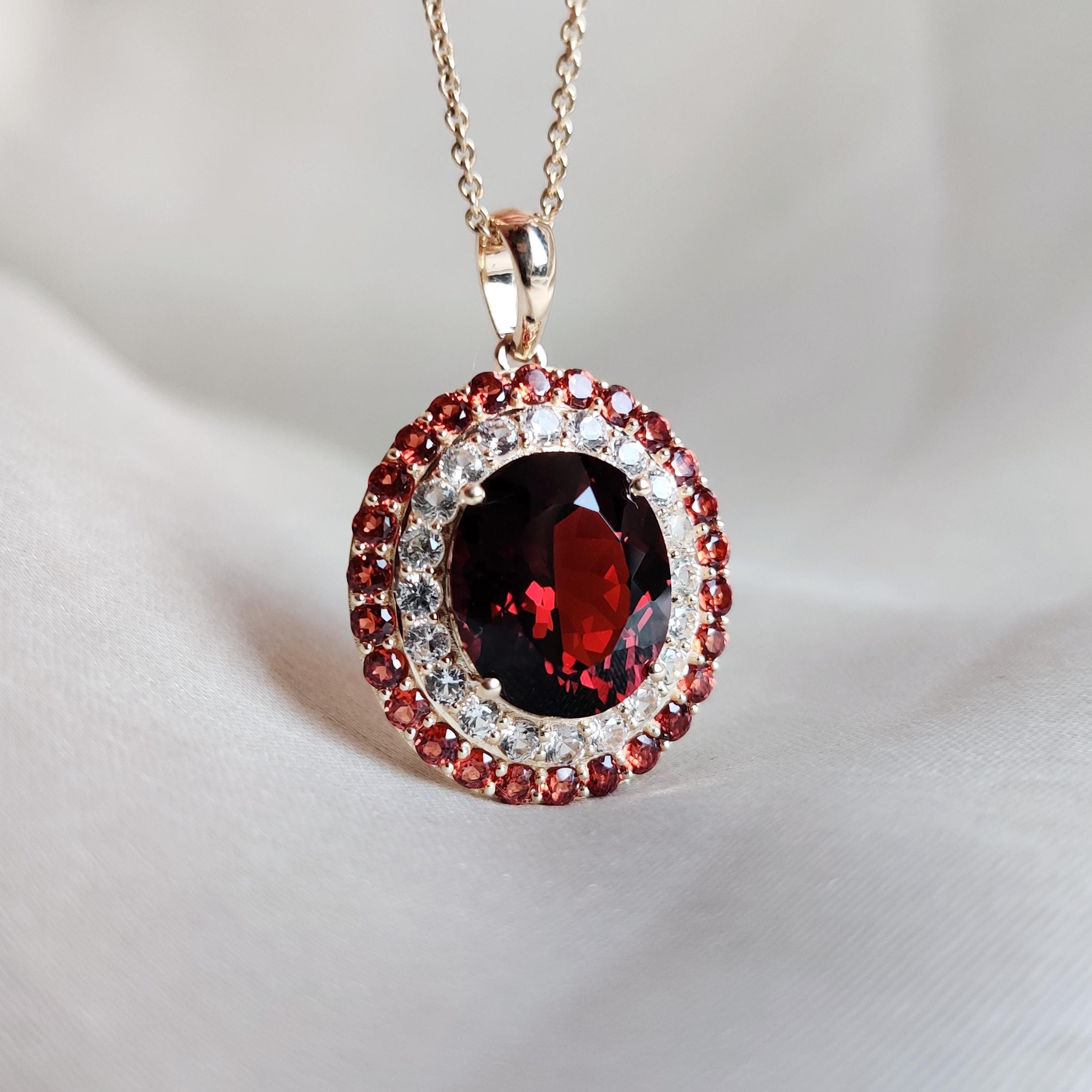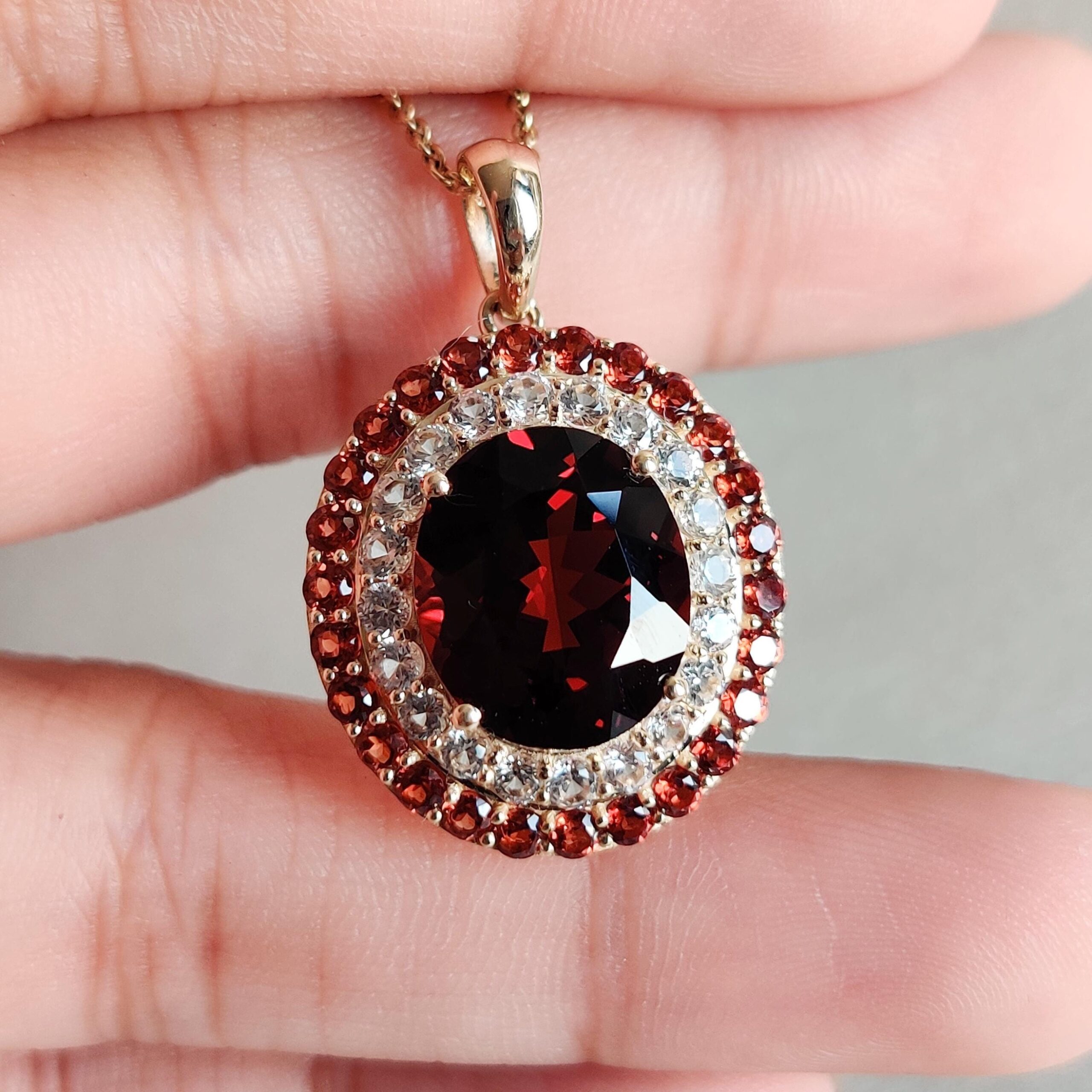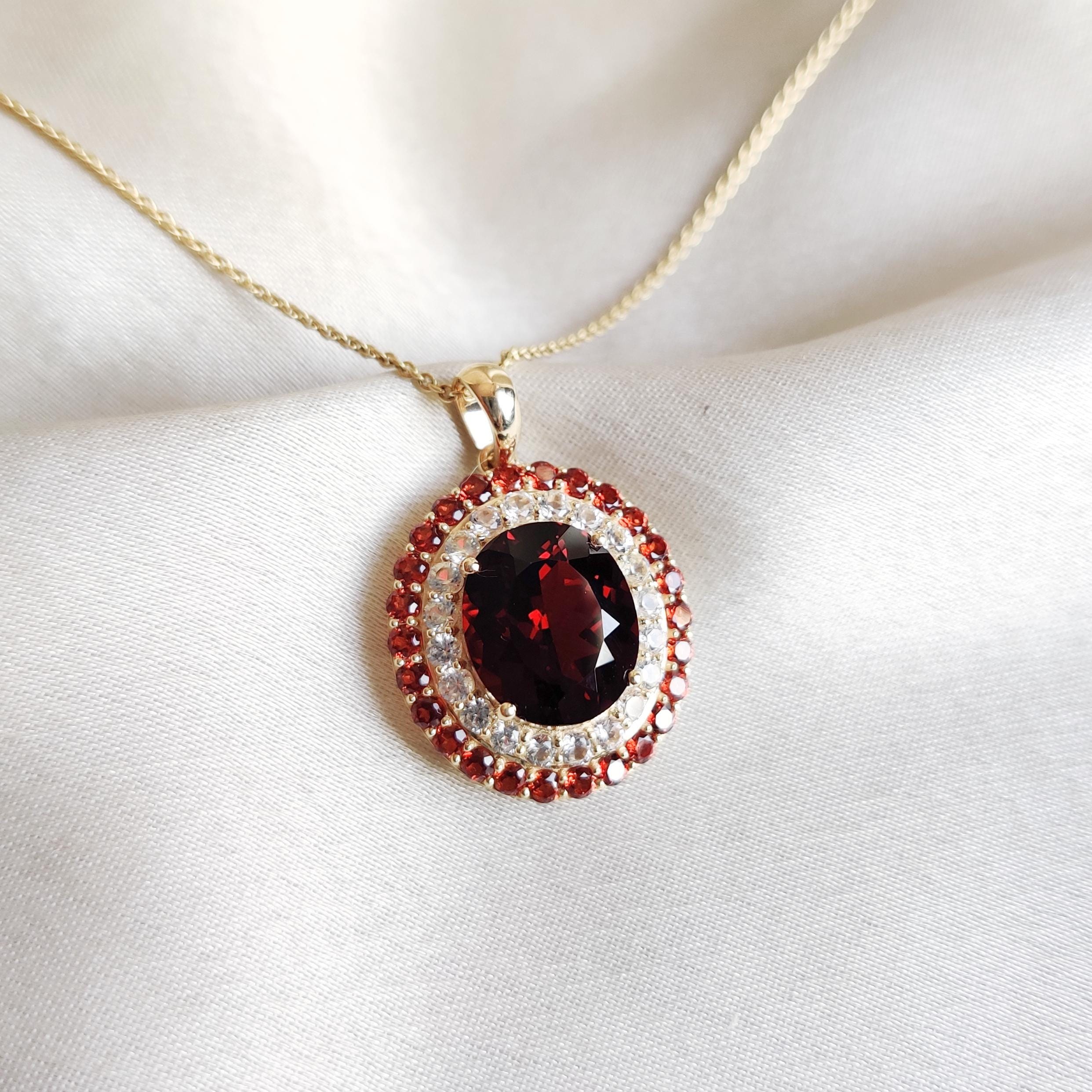 This stunning pendant is set in 14K Solid Yellow Gold with Natural Garnet and Natural White Sapphire with utmost precision. It is an unique gemstone pendant for nearly every occasion and is completely hassle-free jewelry.