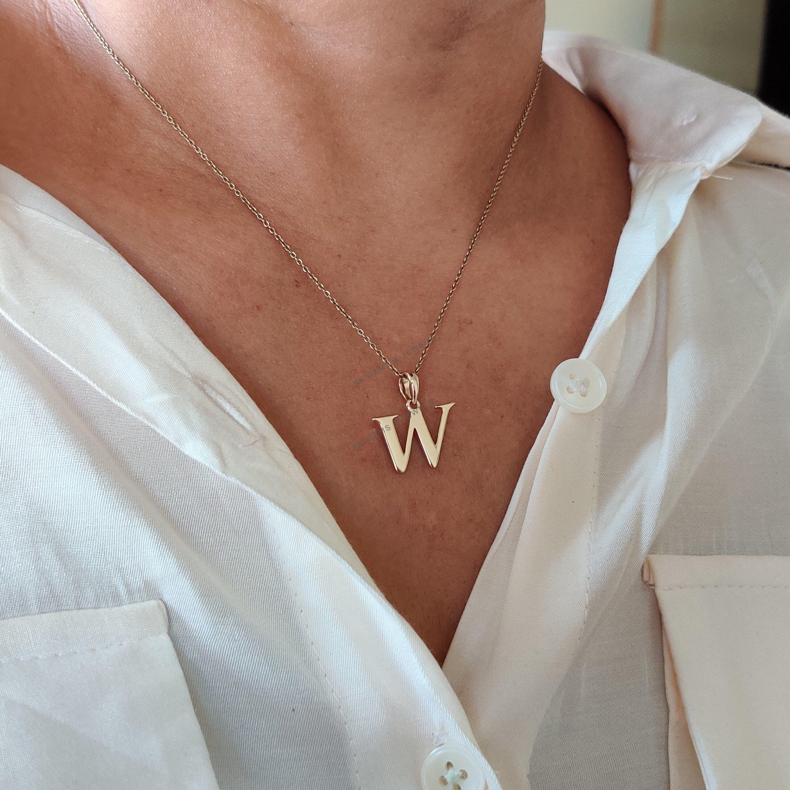 This is an exquisite initial charm pendant set in 14K Solid Gold. An elegant design, perfect for any occassion. ITEM DETAILS: ✓ Letter : W ✓ Gold Kt: Solid 14K Yellow Gold ✓ 14 K Gold Weight : 1.53 grams…