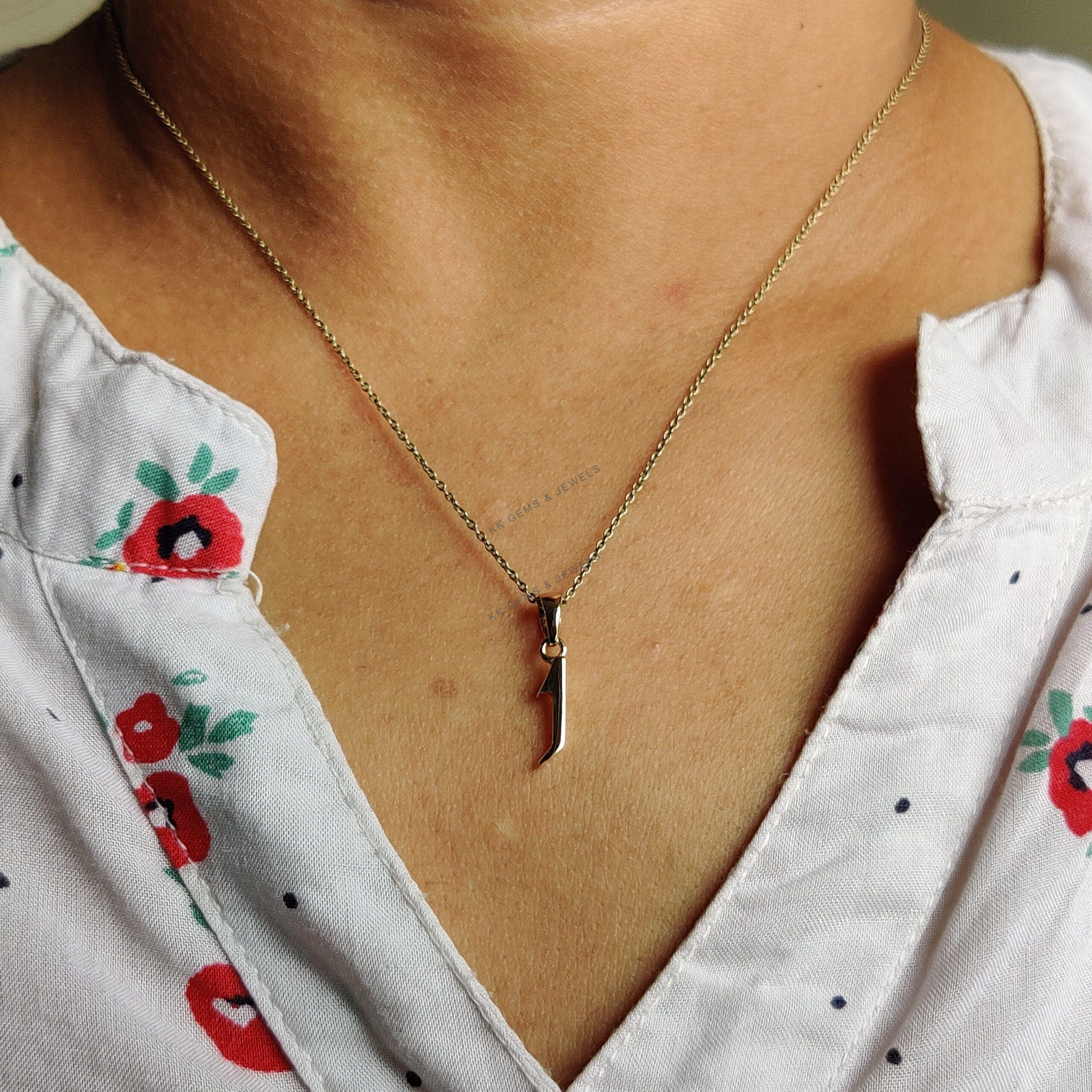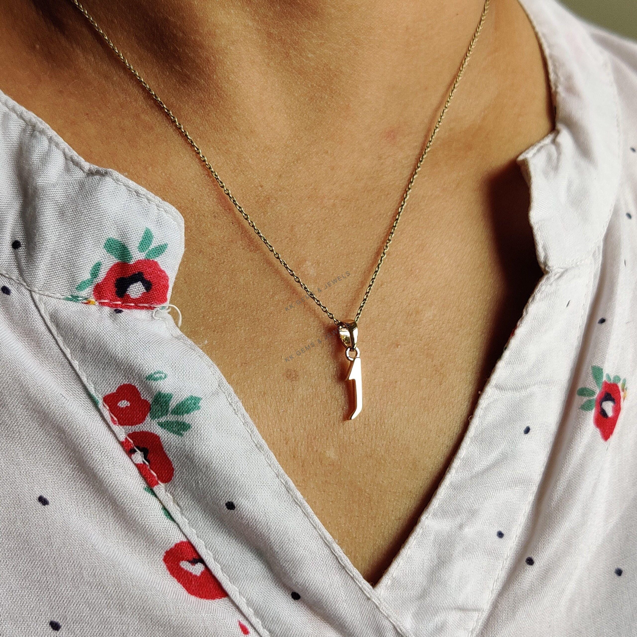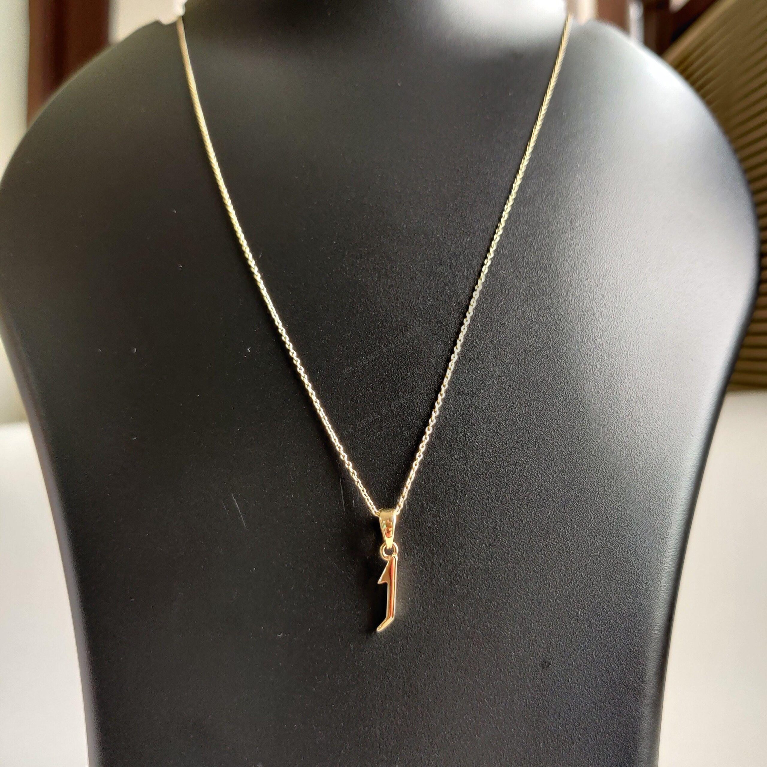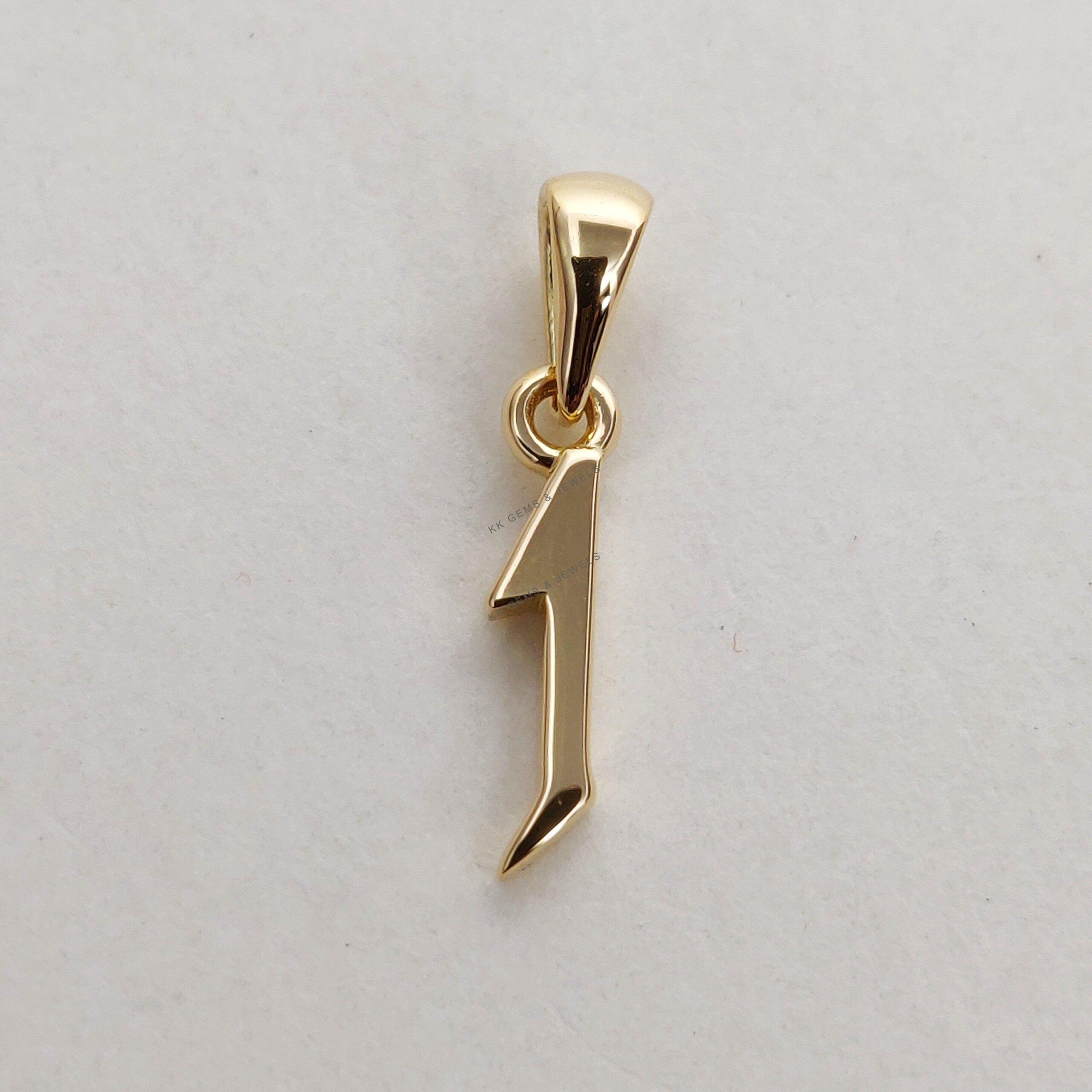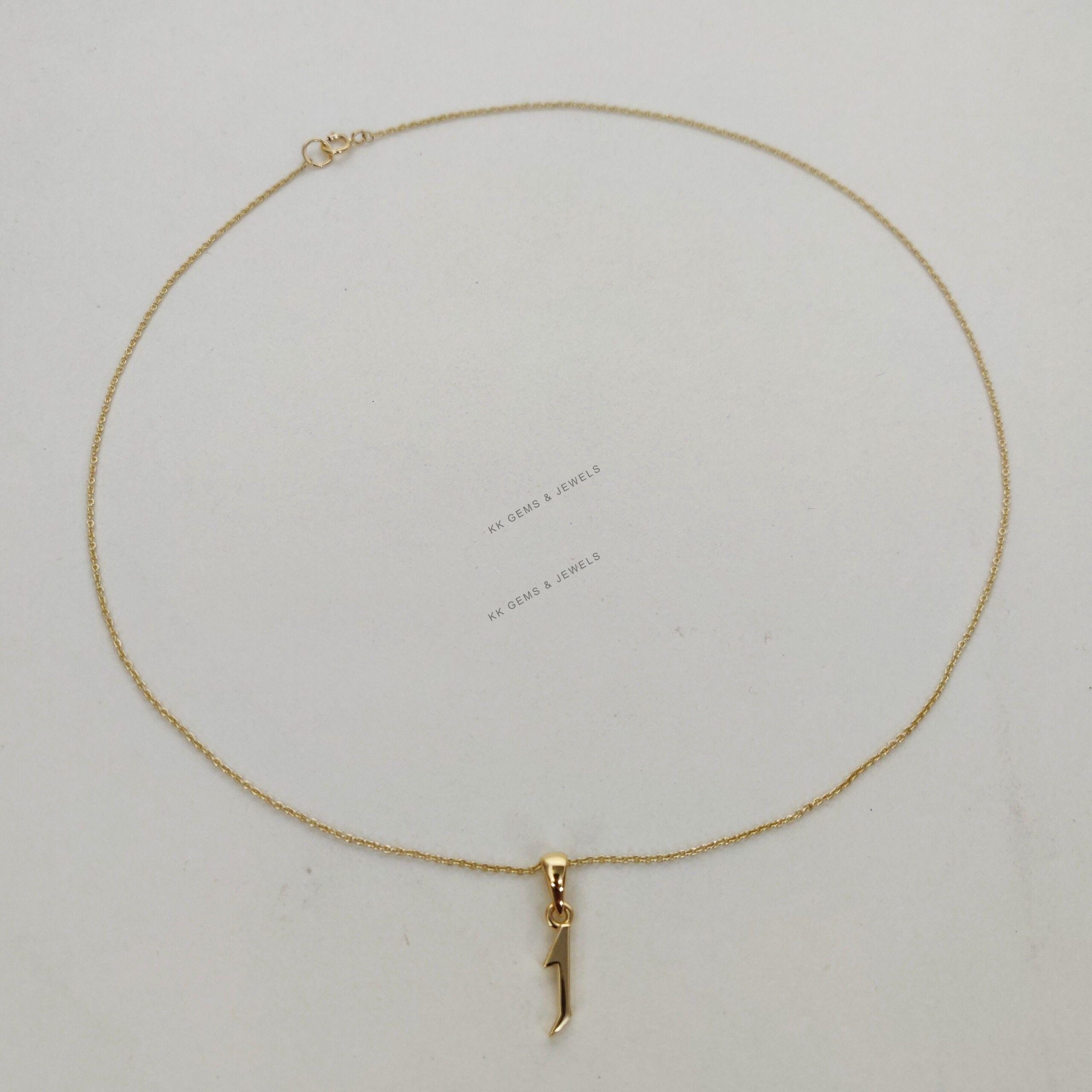 Number 1 Pendant Set in 14K Solid Gold, Numeric Charm Pendant Necklace