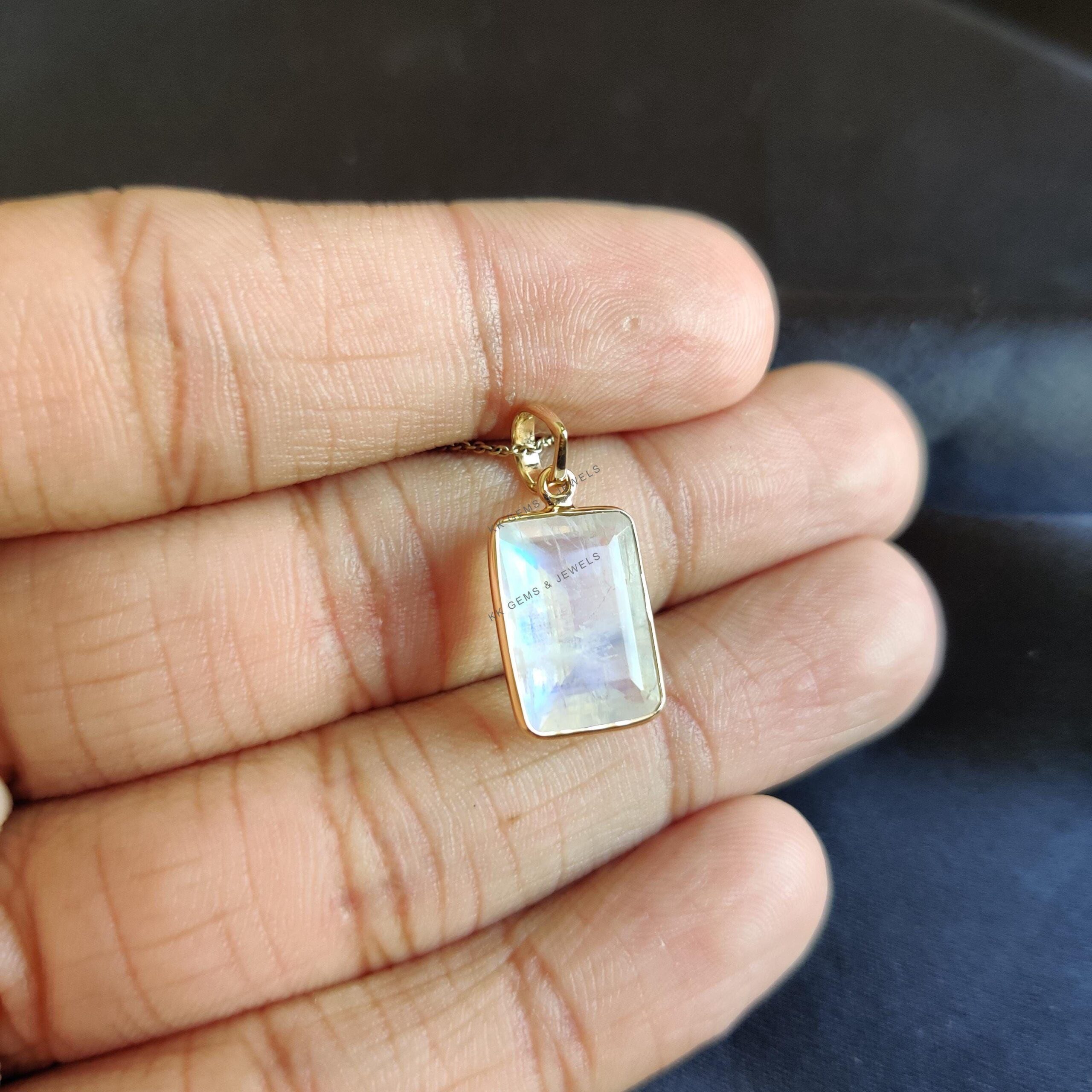 This stunning pendant is set in 14k Solid Yellow Gold with Natural Rainbow Moonstone with utmost precision. It is an unique gemstone pendant for nearly every occasion and is completely hassle-free jewelry.