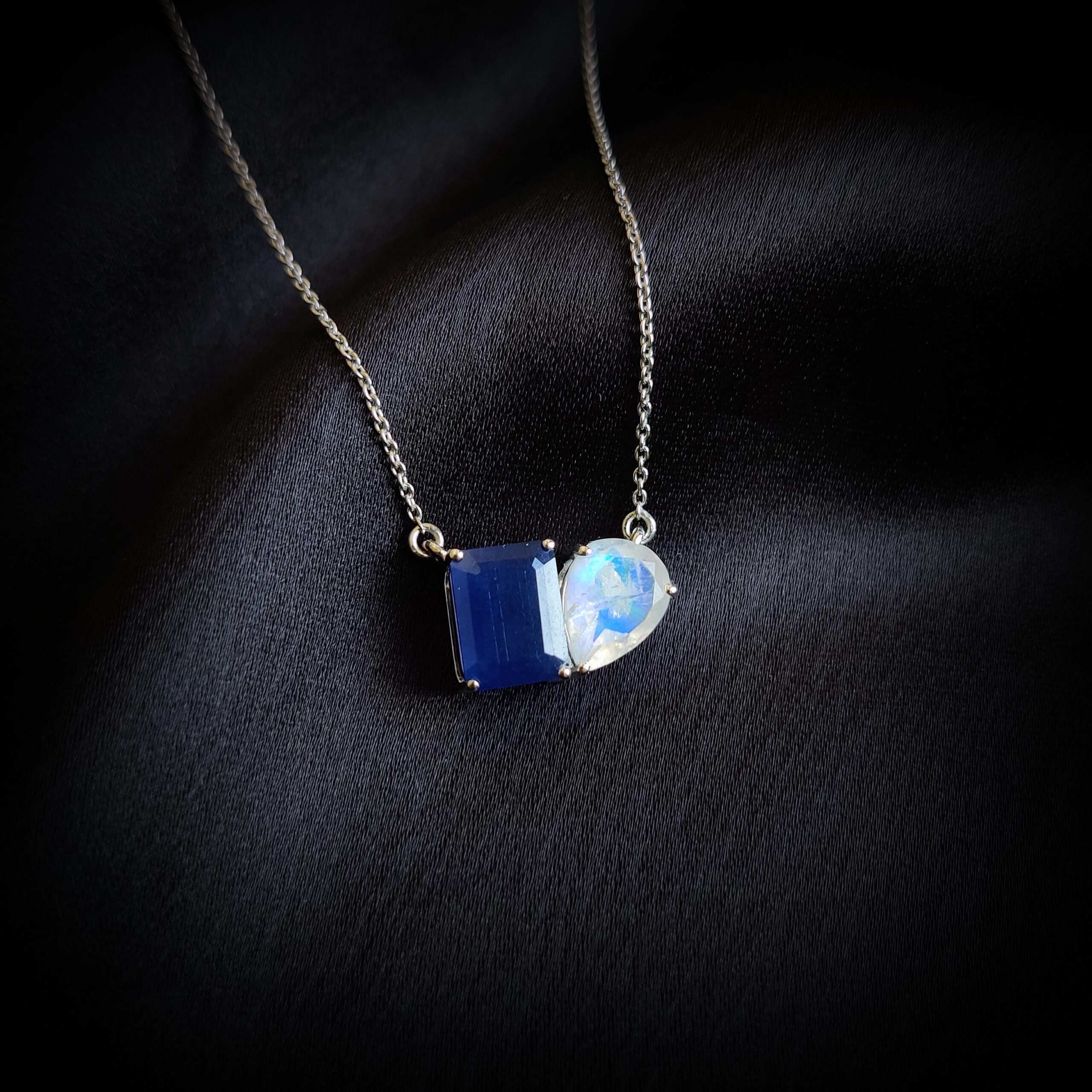 This stunning Necklace is set in 14k Solid White Gold with Natural Blue Sapphire and Natural Rainbow Moonstone with utmost precision. It is an unique gemstone pendant for nearly every occasion and is completely hassle-free jewelry. ABOUT GEMSTONE: Blue Sapphire…