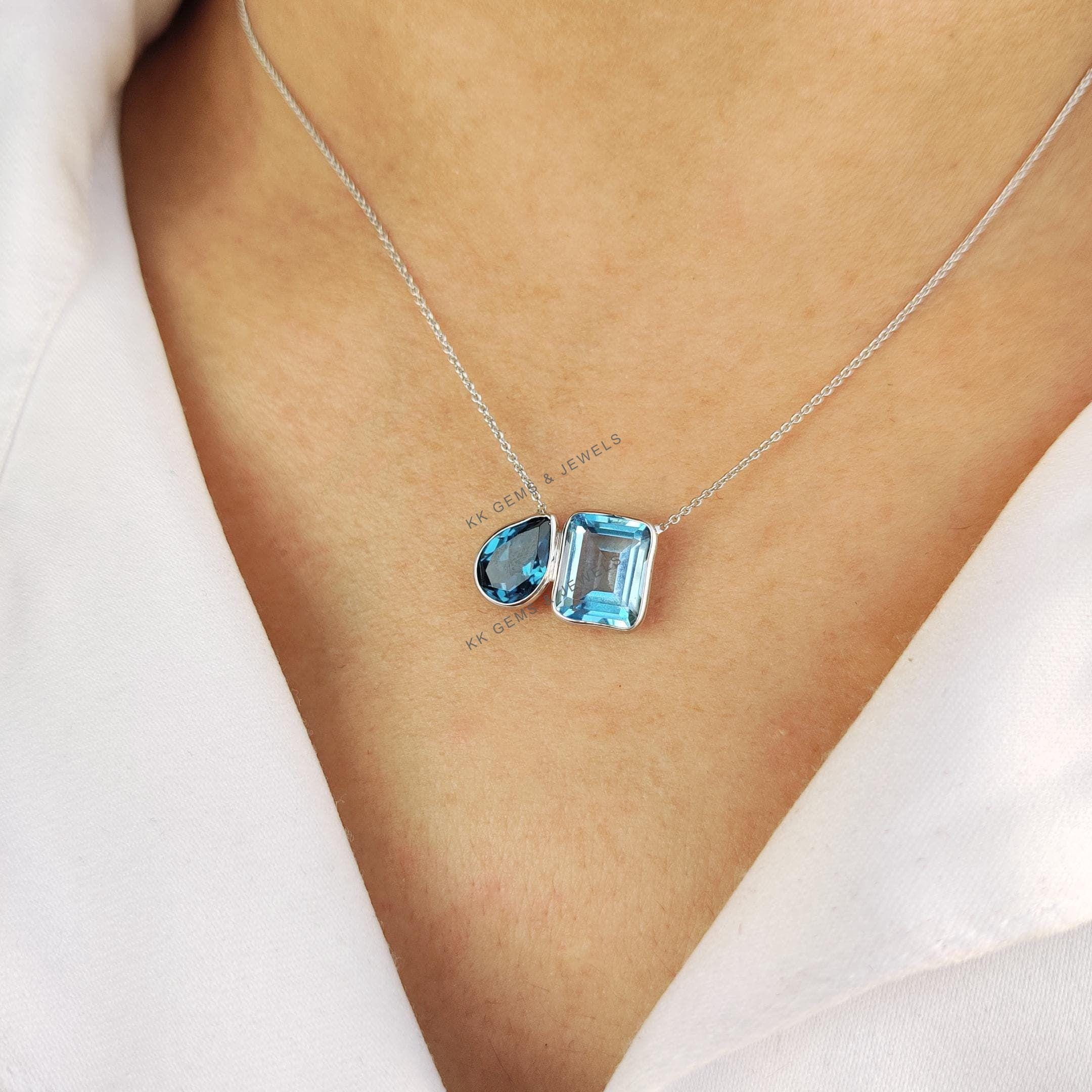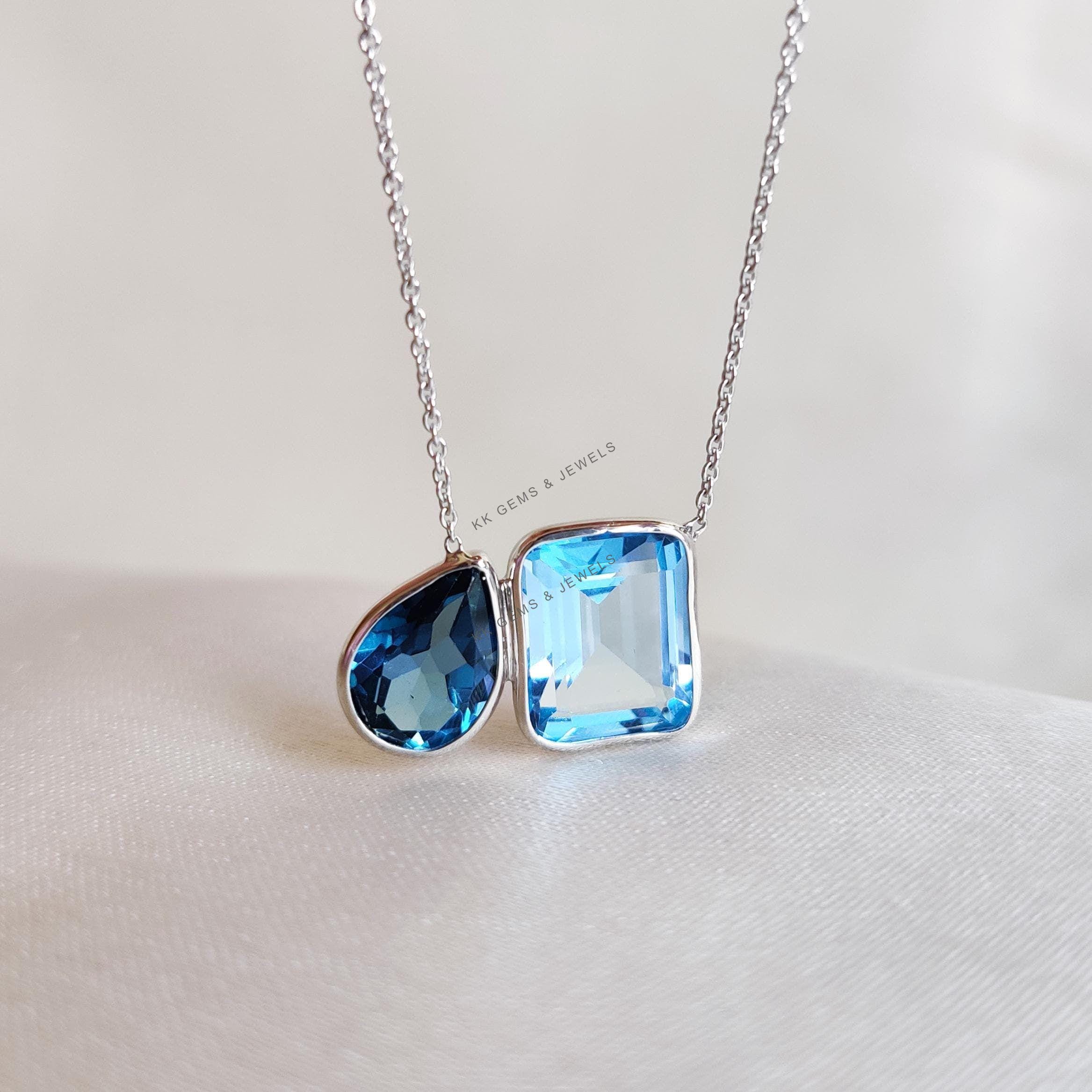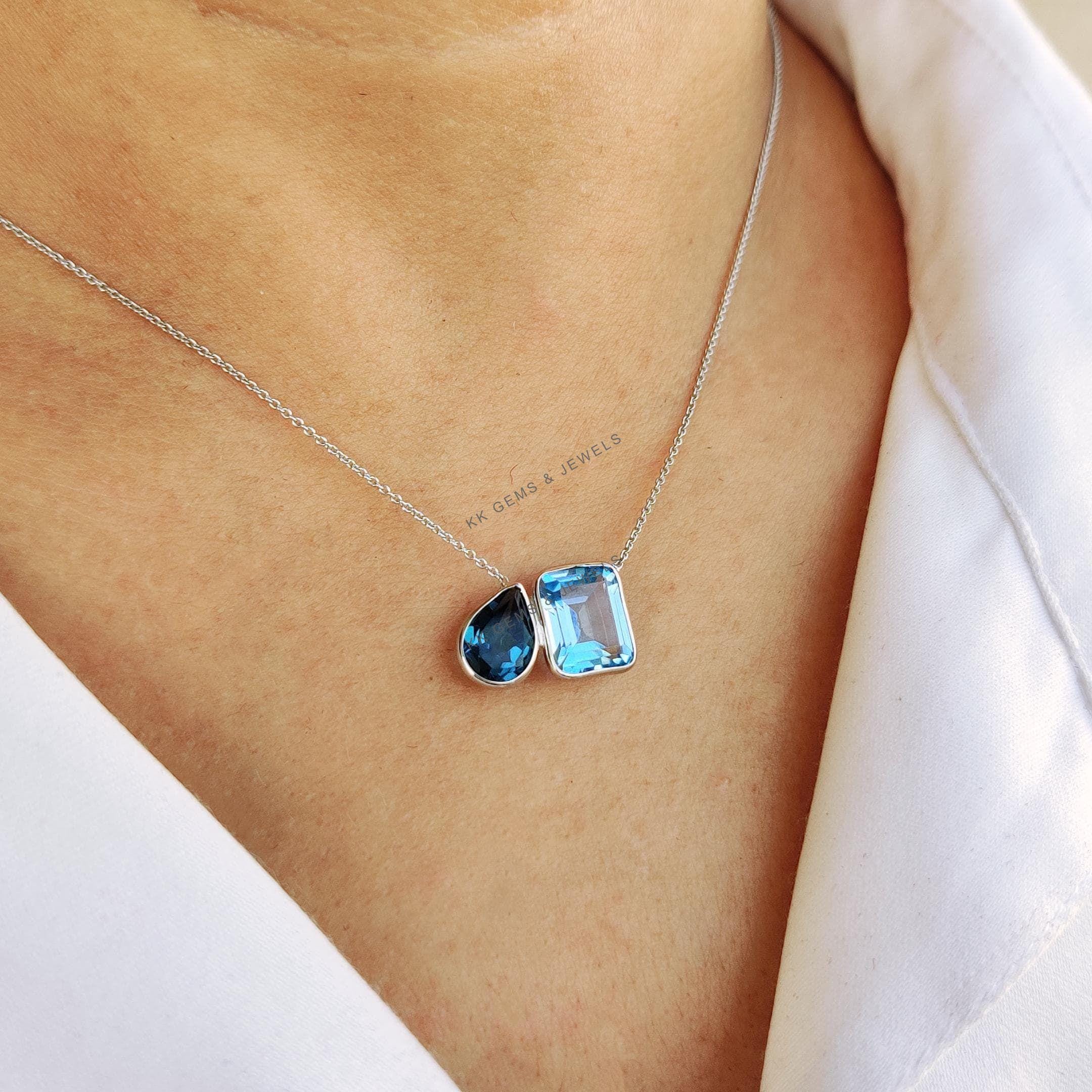 This stunning Necklace is set in 14K Solid White Gold with Natural Swiss Blue Topaz & London Blue Topaz in utmost precision. It is an unique gemstone Necklace for nearly every occasion and is completely hassle-free jewelry. ✓ ABOUT GEMSTONE…