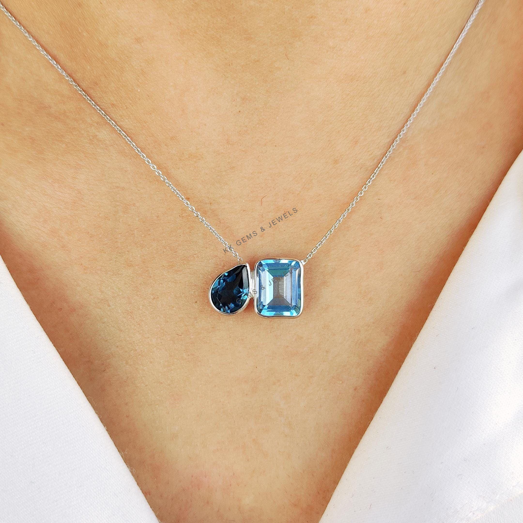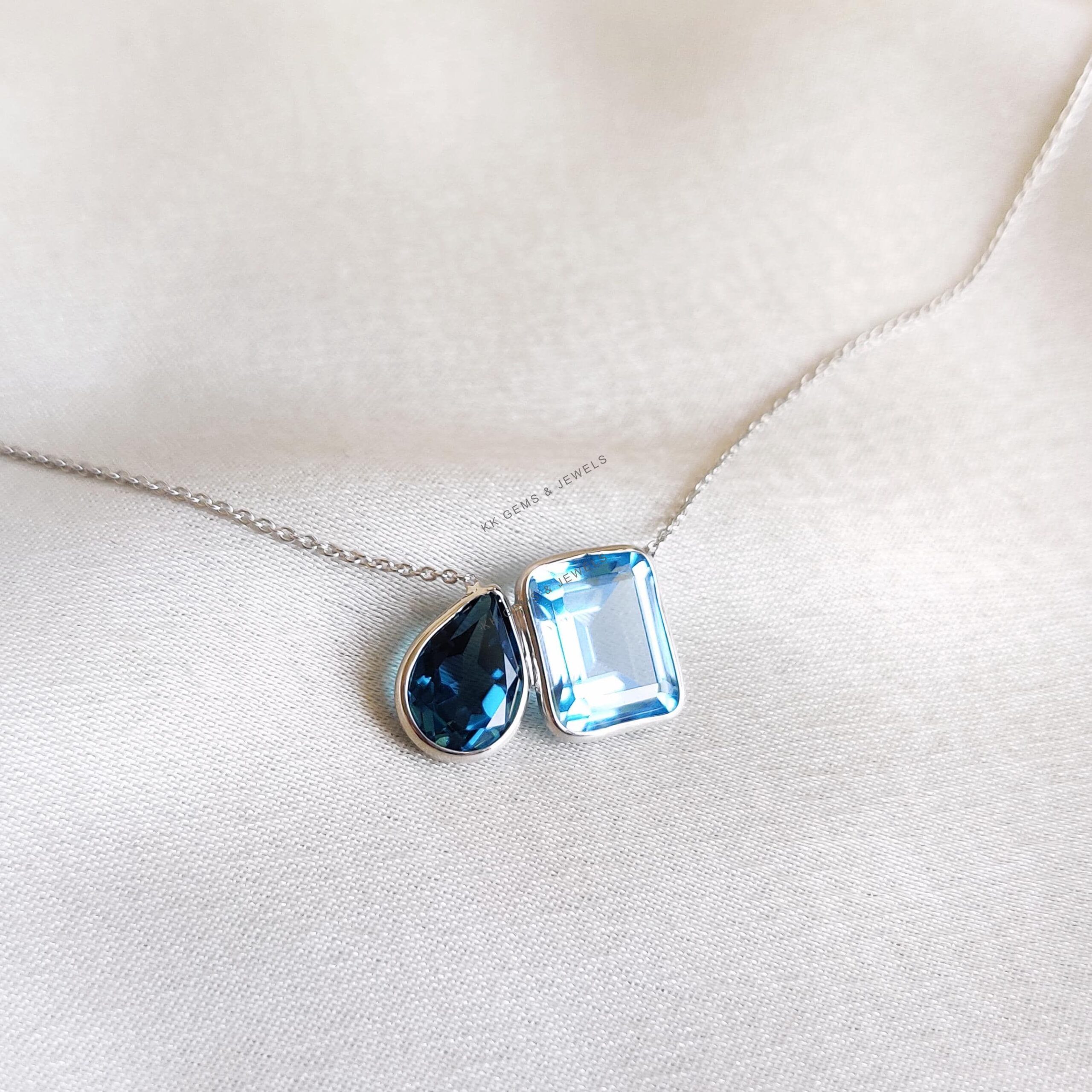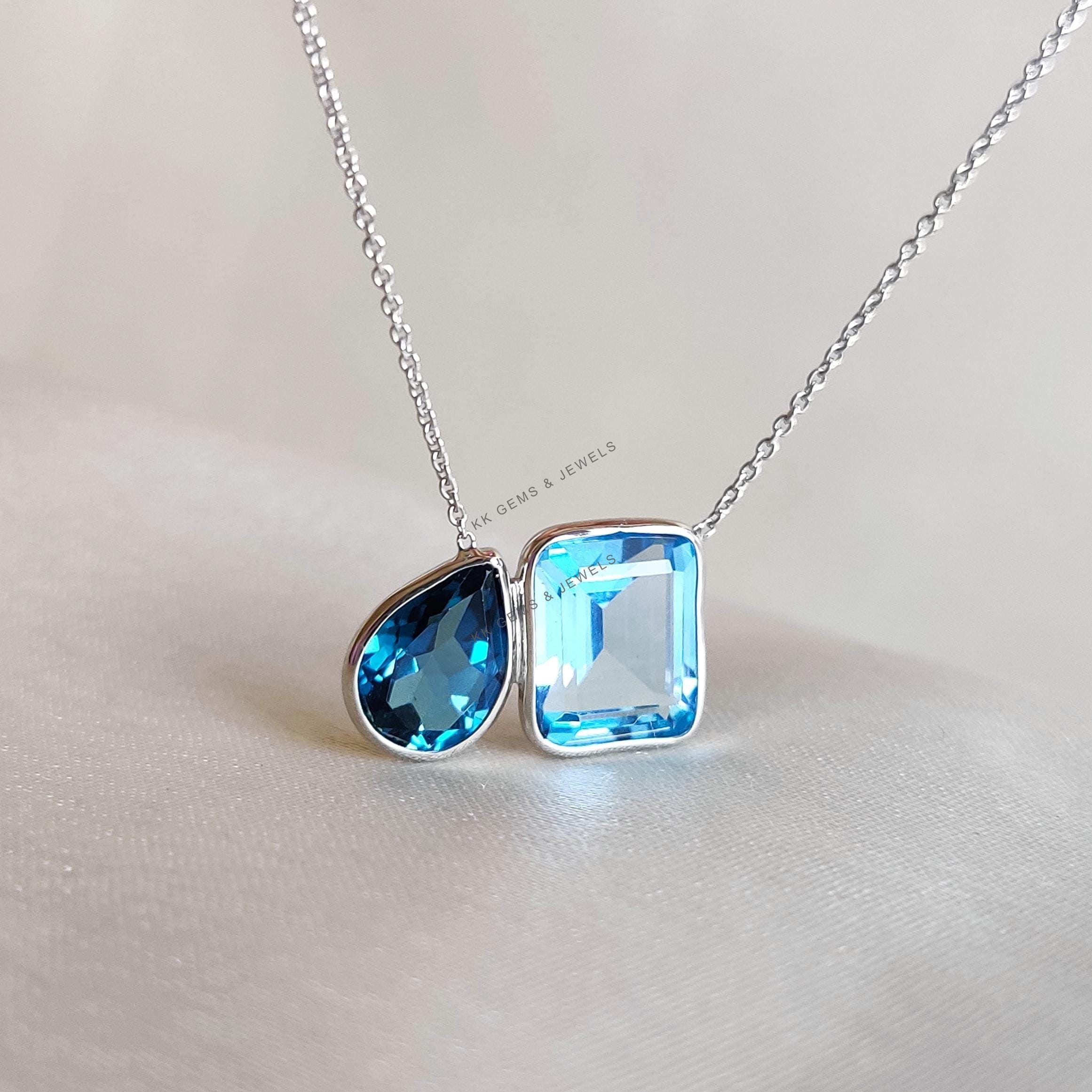 This stunning Necklace is set in 14K Solid White Gold with Natural Swiss Blue Topaz & London Blue Topaz in utmost precision. It is an unique gemstone Necklace for nearly every occasion and is completely hassle-free jewelry. ✓ ABOUT GEMSTONE…