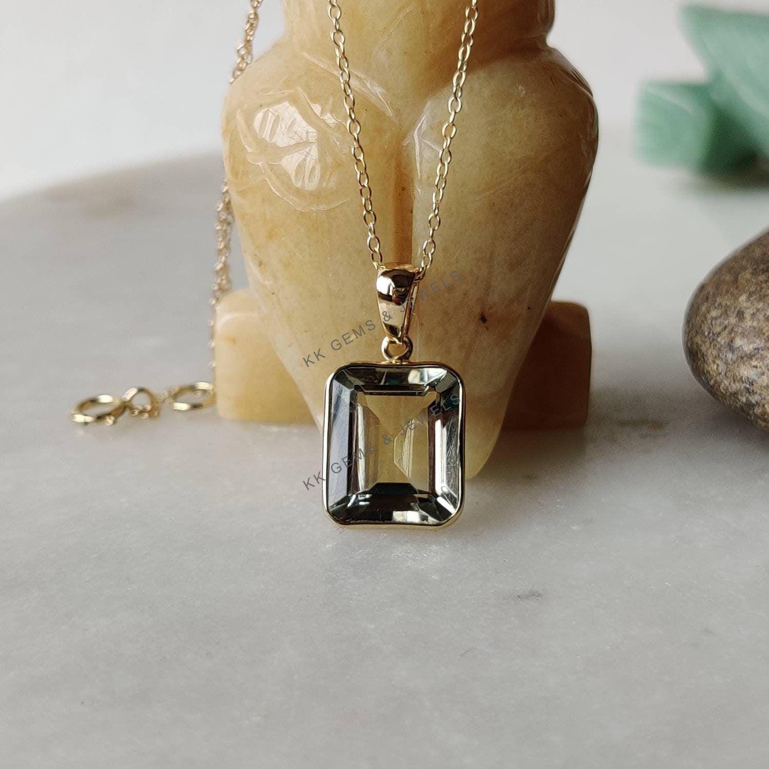 This stunning pendant is set in 14K Solid Yellow Gold with Natural Green Amethyst with utmost precision. It is an unique gemstone pendant for nearly every occasion and is completely hassle-free jewelry. ✓ ABOUT GEMSTONE: Green amethyst, also known as…