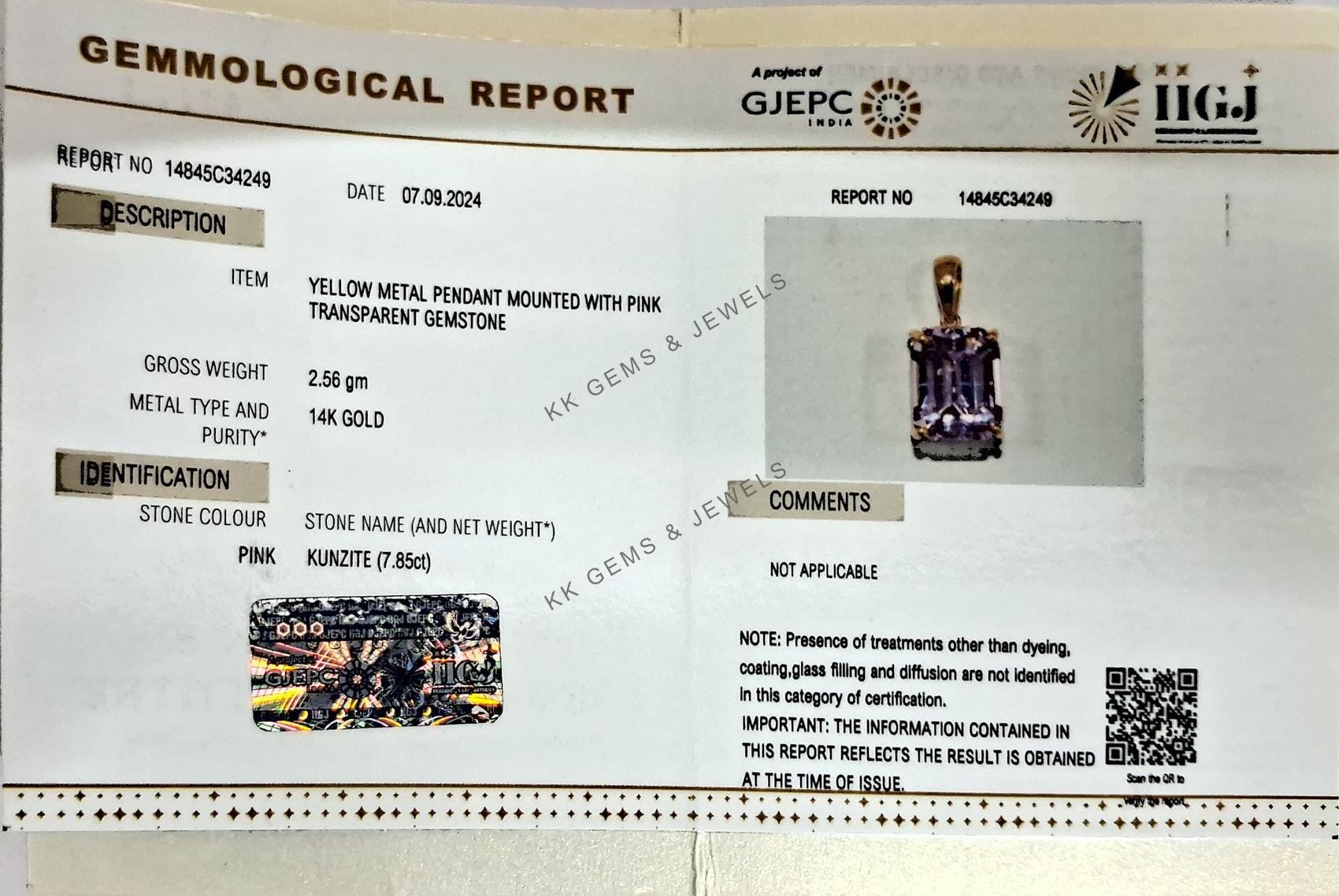 • Total Weight of the Pendant: 2.56 gram