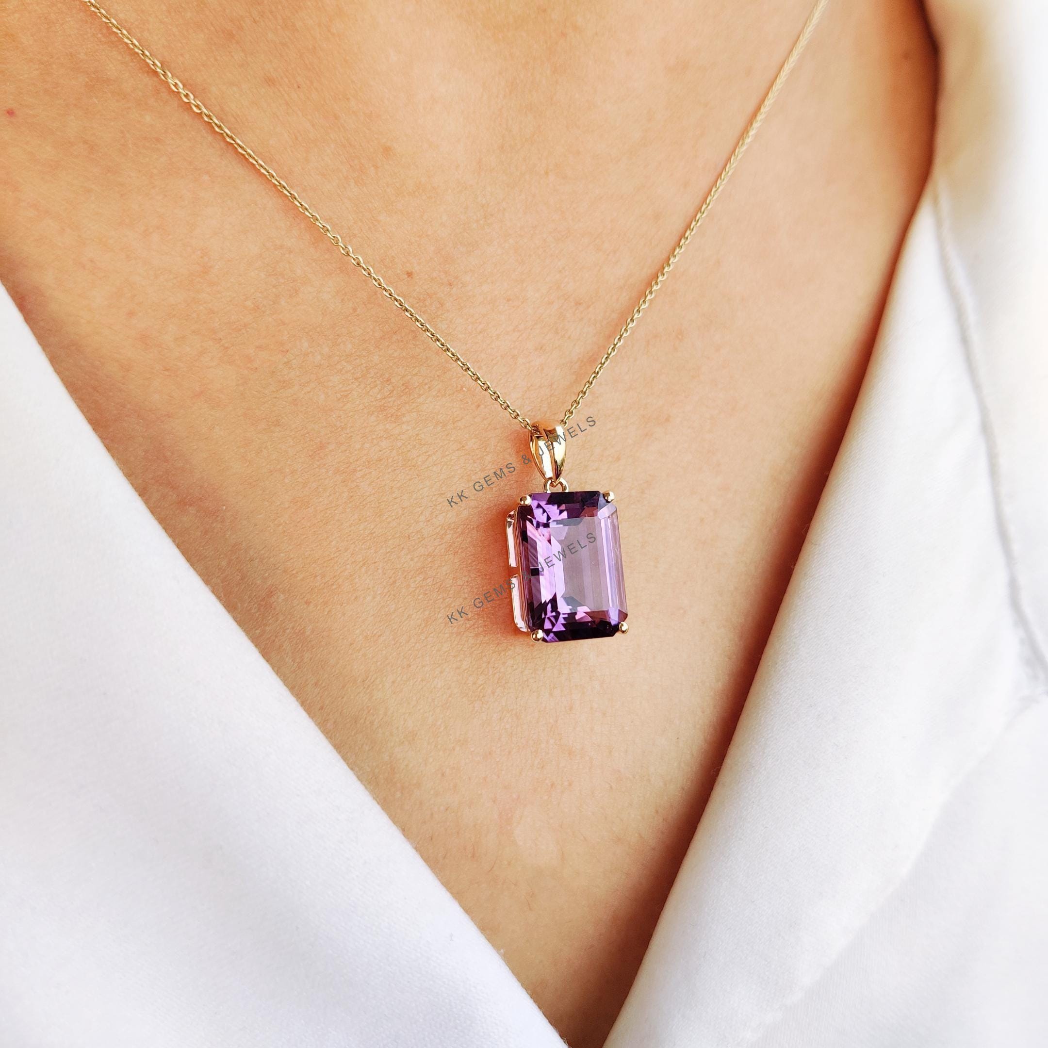 This stunning pendant is set in 14K Solid Yellow Gold with Natural Purple Amethyst with utmost precision. It is an unique gemstone pendant for nearly every occasion and is completely hassle-free jewelry.
