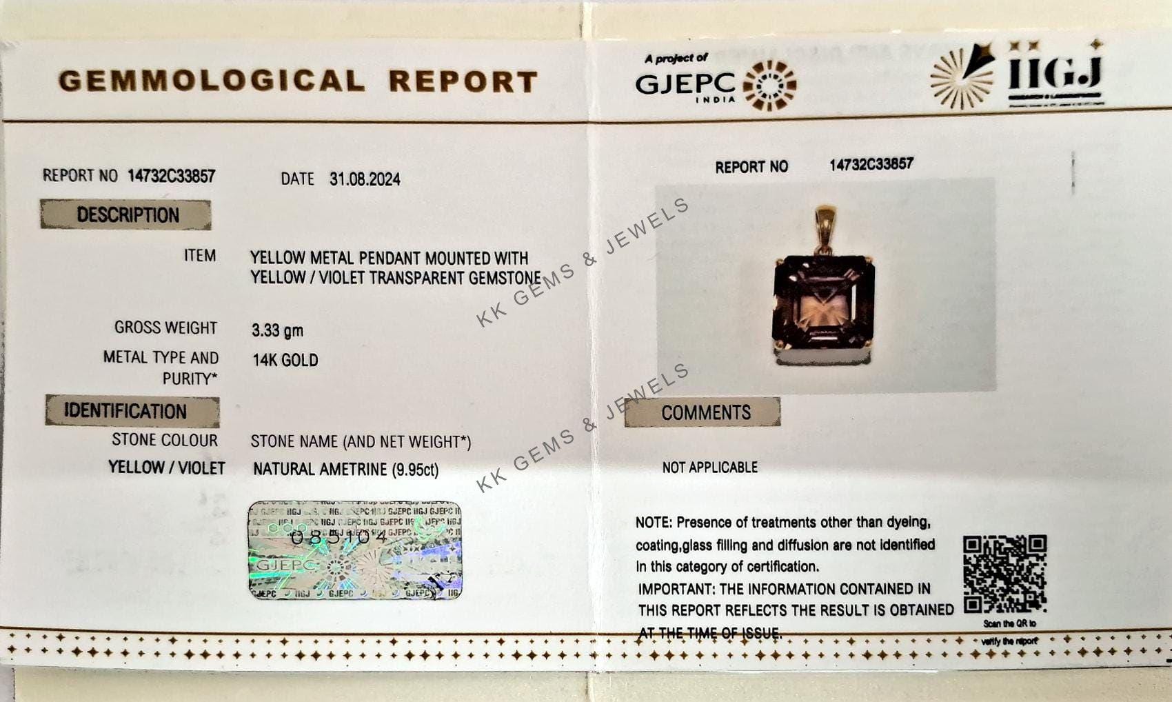 This stunning pendant is set in 14K Solid Yellow Gold with Natural Ametrine with utmost precision. It is an unique gemstone pendant for nearly every occasion and is completely hassle-free jewelry. ✓ ABOUT GEMSTONE: Ametrine is thought to balance and…