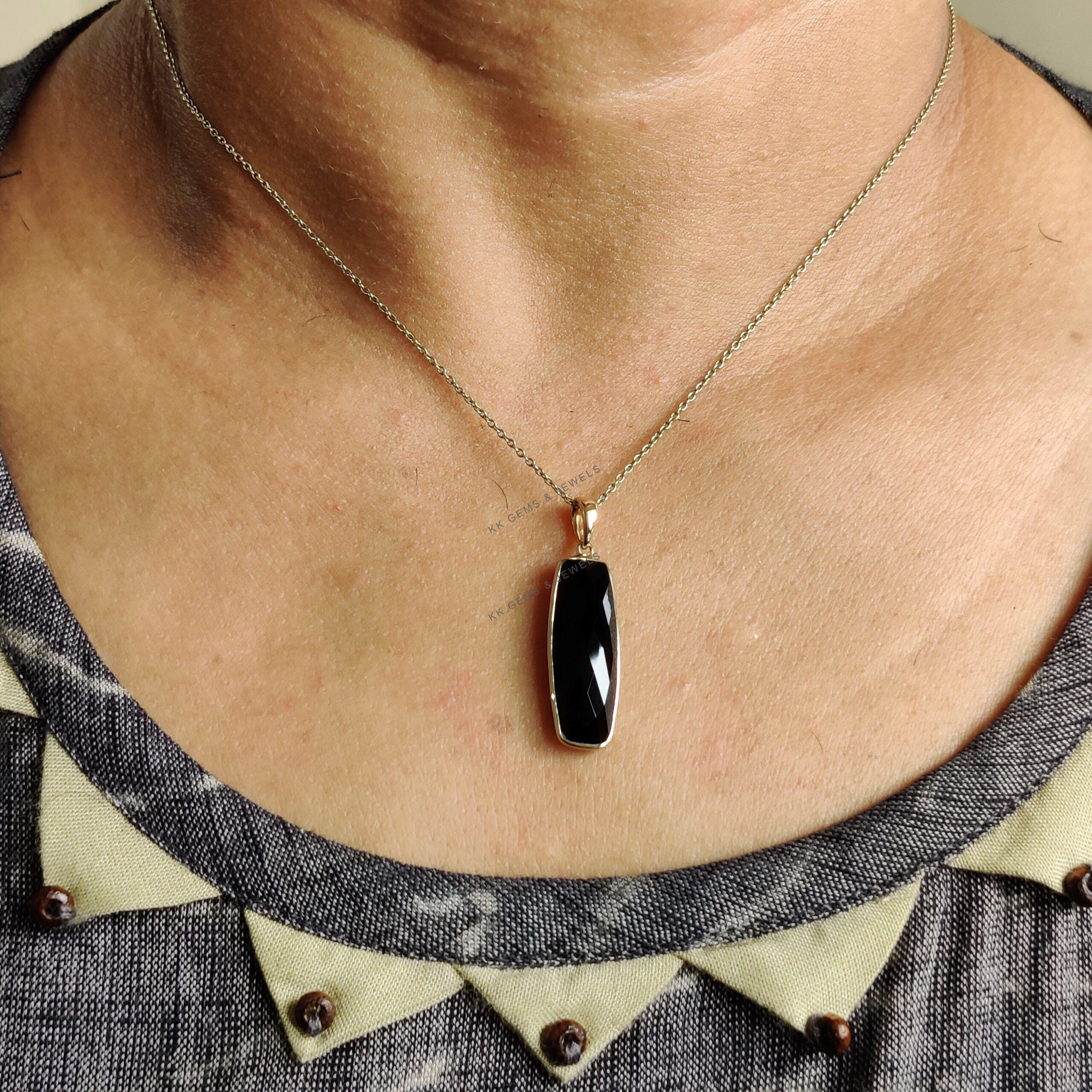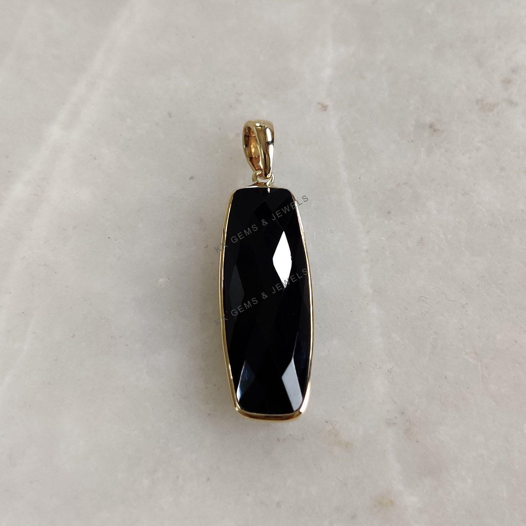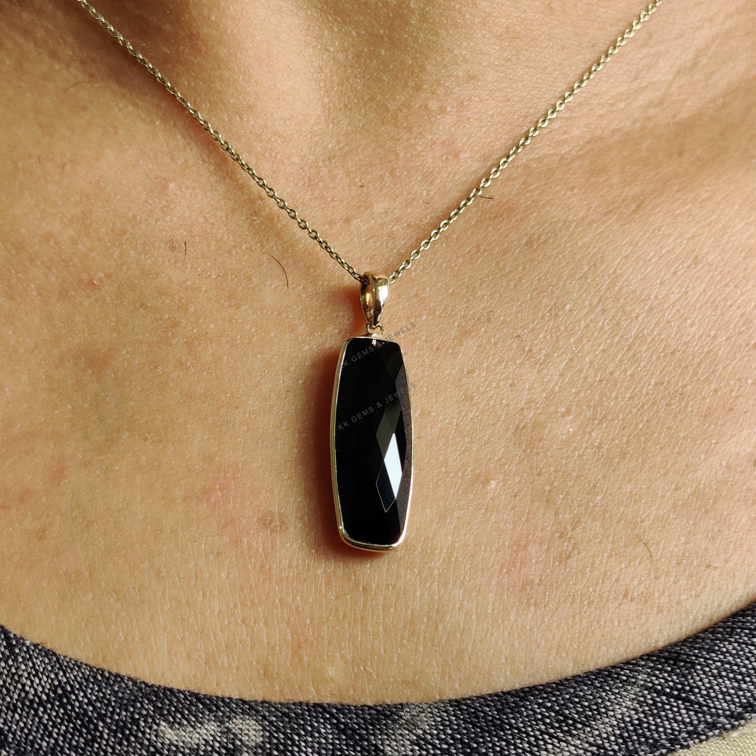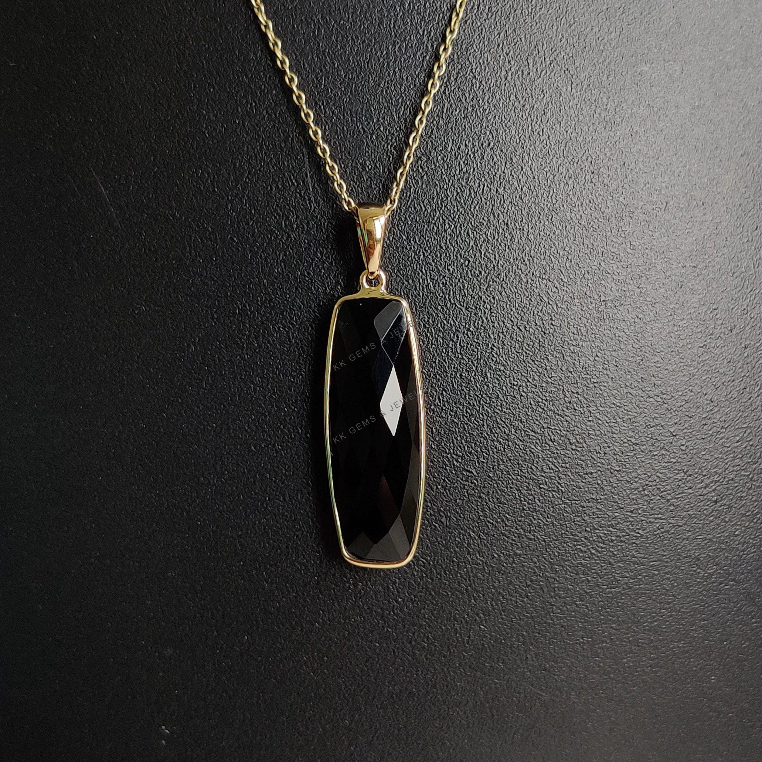 1 review for Checker Briolette Natural Black Onyx Birthstone Pendant Set in 14K Solid Gold