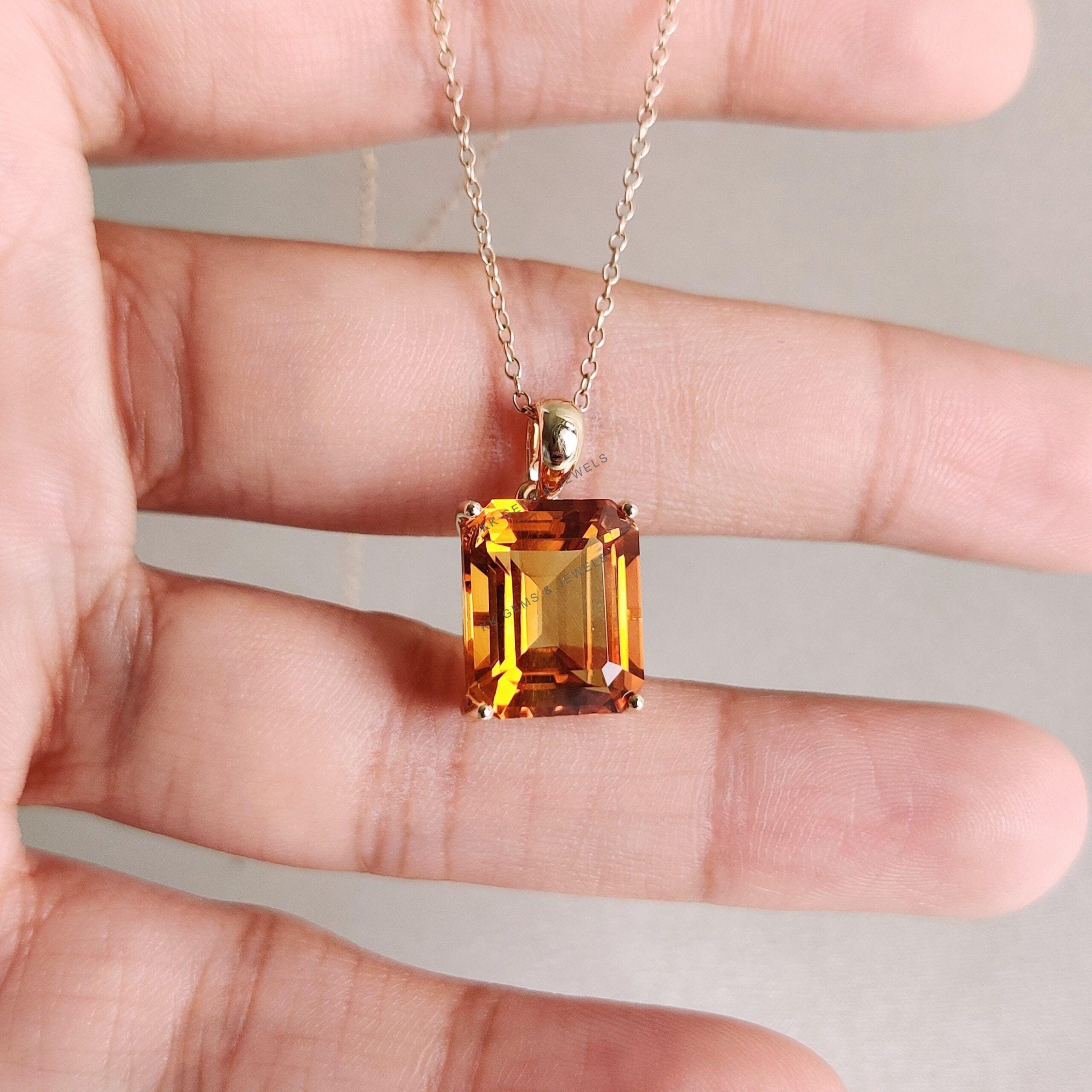 This stunning pendant is set in 14K Solid Yellow Gold with Natural Madeira Citrine with utmost precision. It is an unique gemstone pendant for nearly every occasion and is completely hassle-free jewelry.