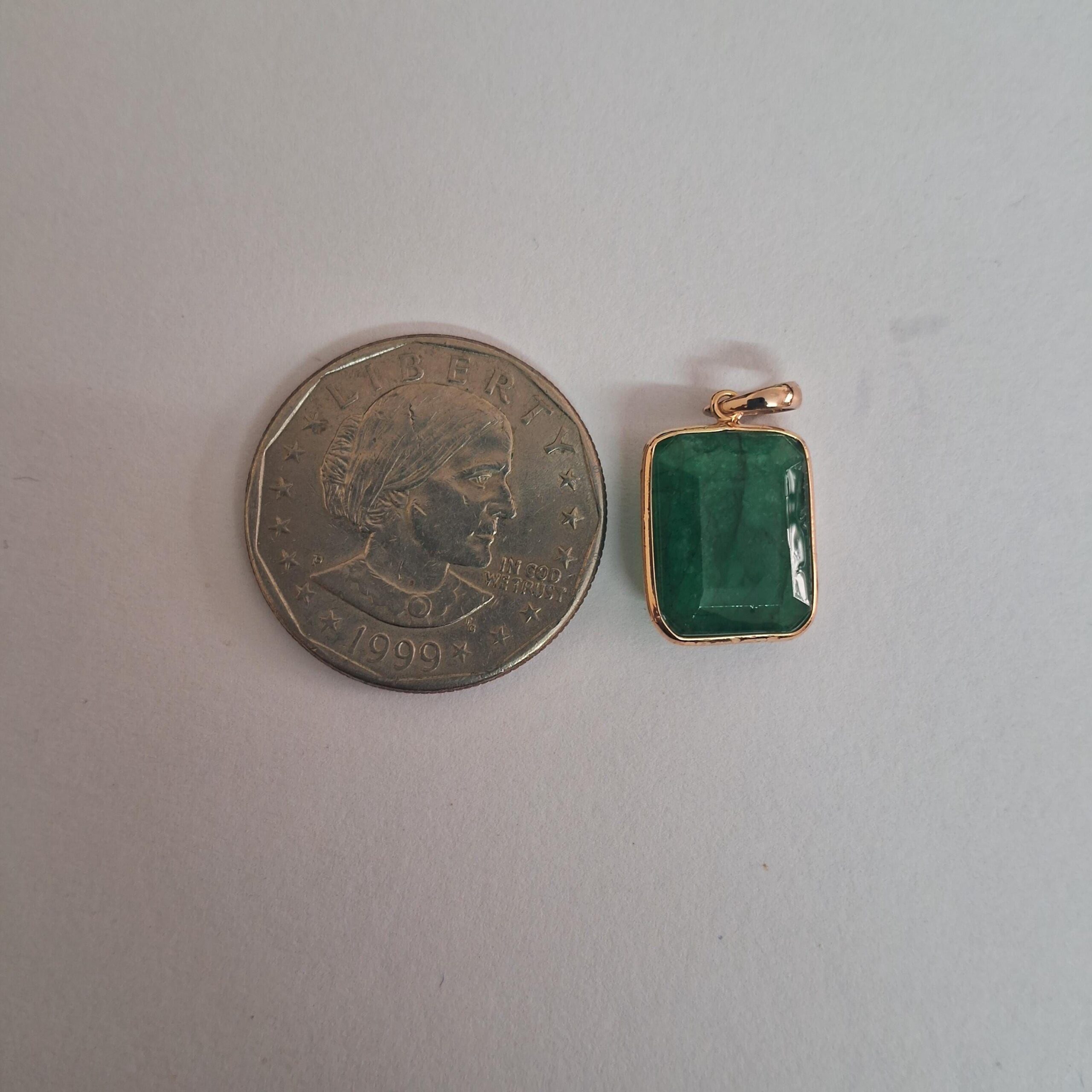 Octagon Shape Natural Emerald May Birthstone Pendant Set in 14K Solid Gold