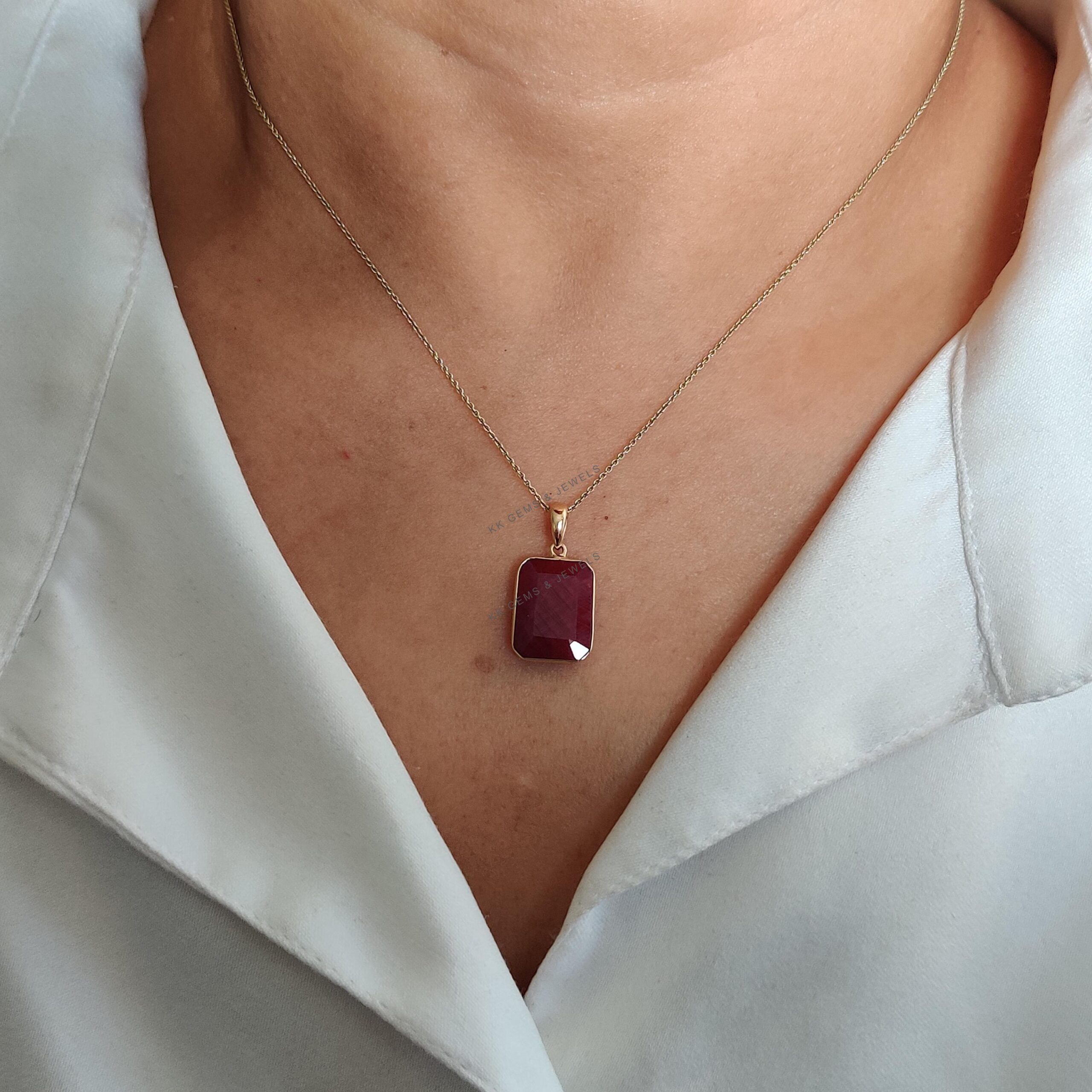 2 reviews for Octagon Shape Natural Ruby Birthstone Pendant Set in 14K Solid Gold