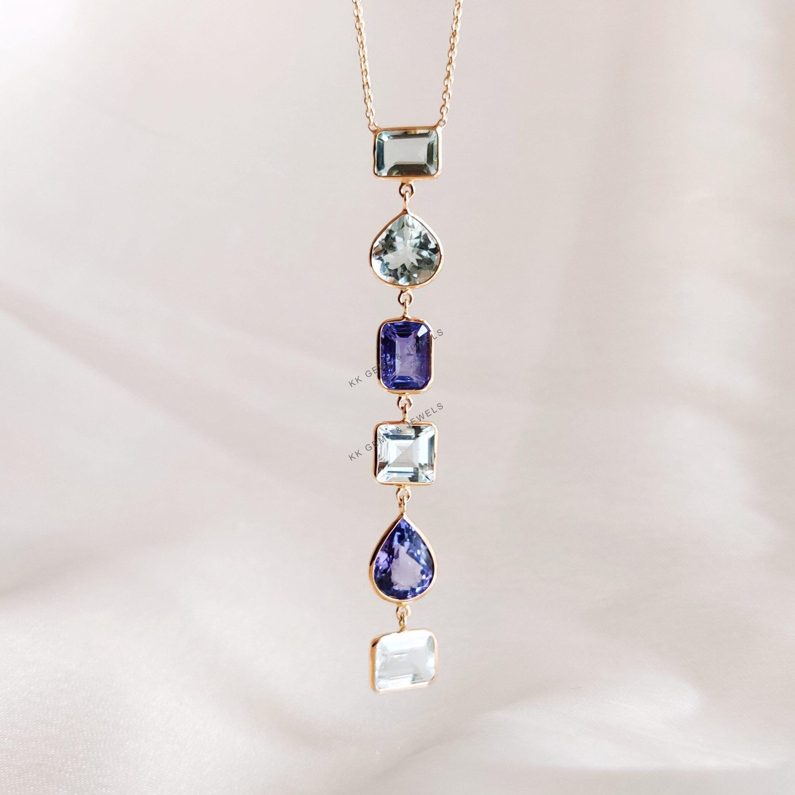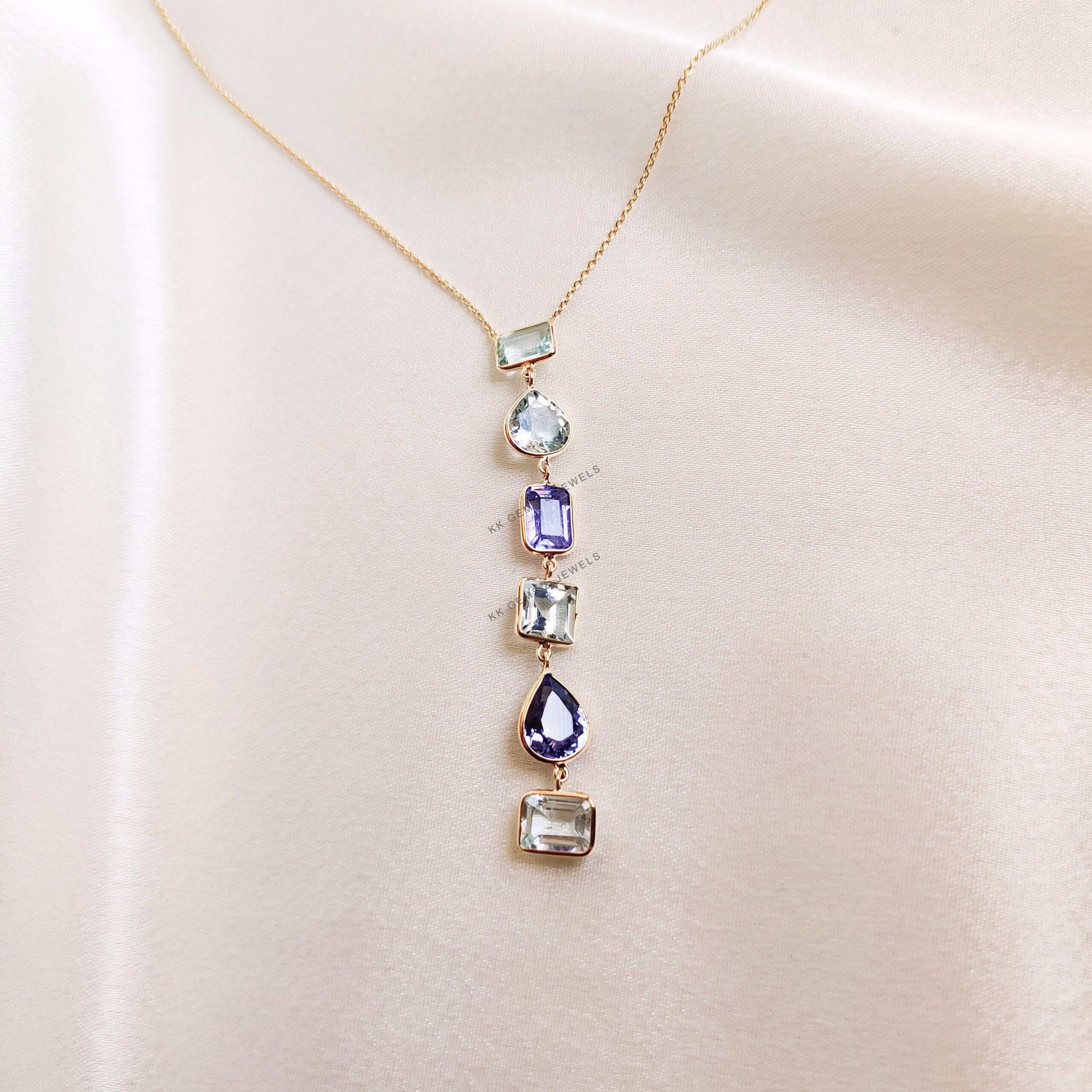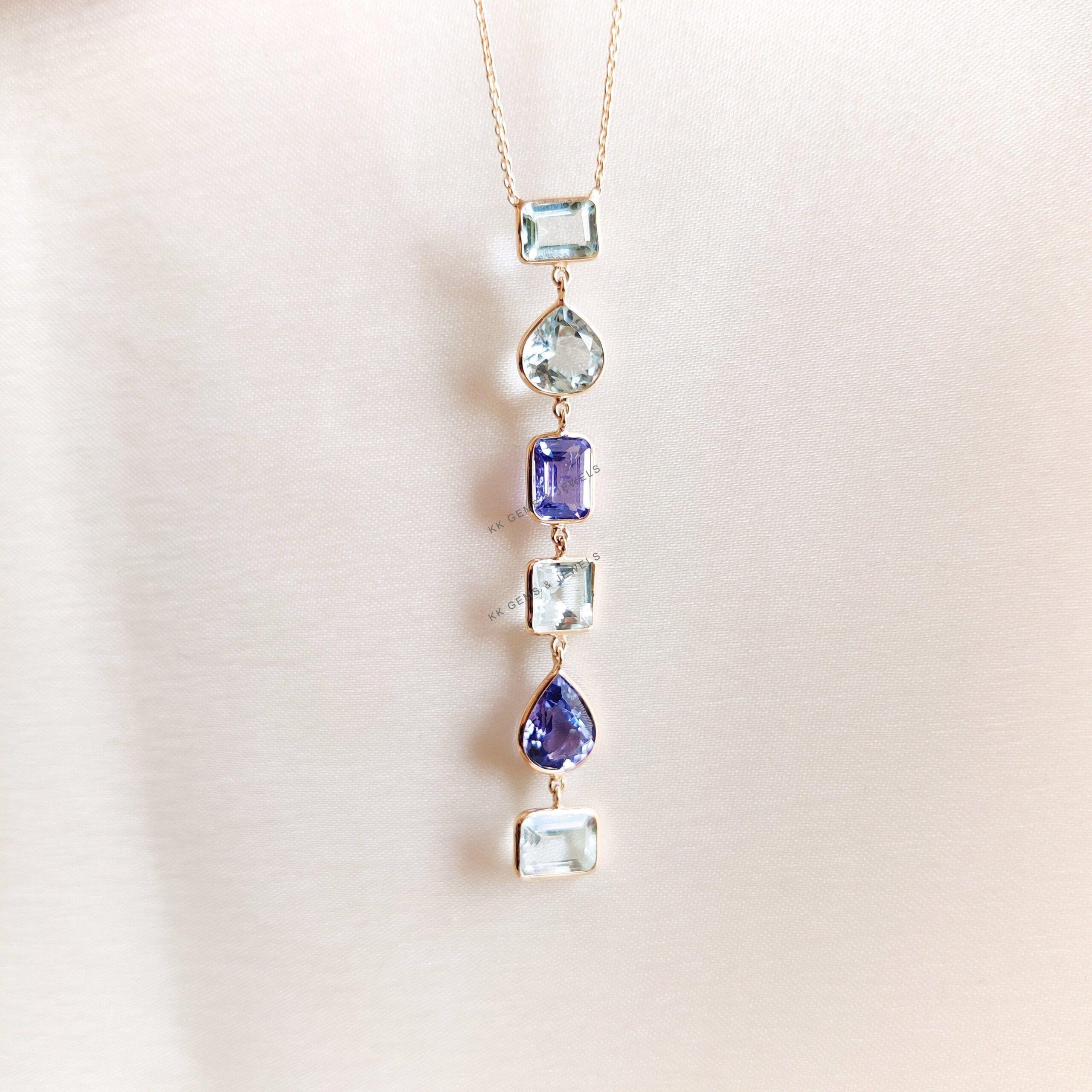 This stunning necklace is set in 14K Solid Yellow Gold with Natural Tanzanite and Aquamarine with utmost precision. It is an unique gemstone necklace for nearly every occasion and is completely hassle-free jewelry. ✓ ABOUT GEMSTONE Tanzanite is a mesmerizing…