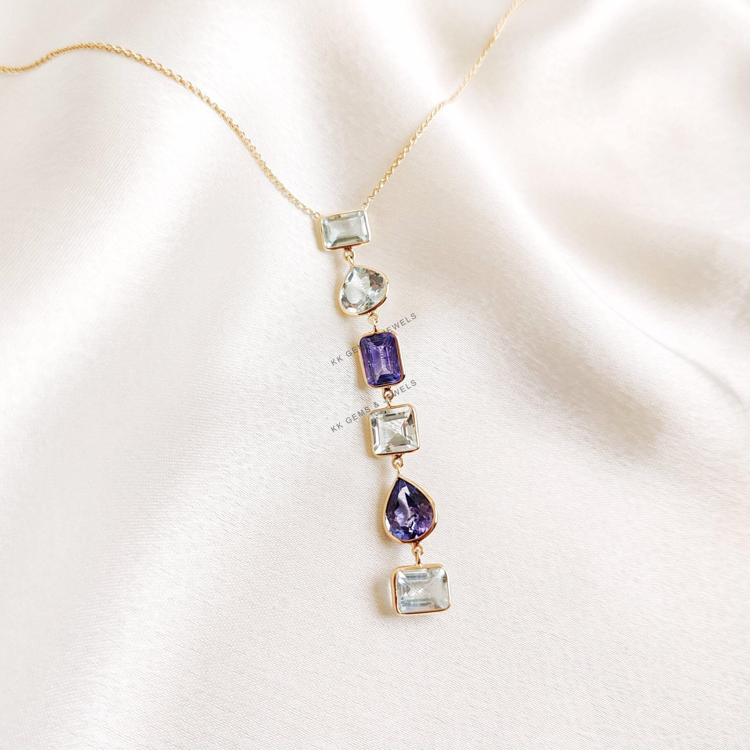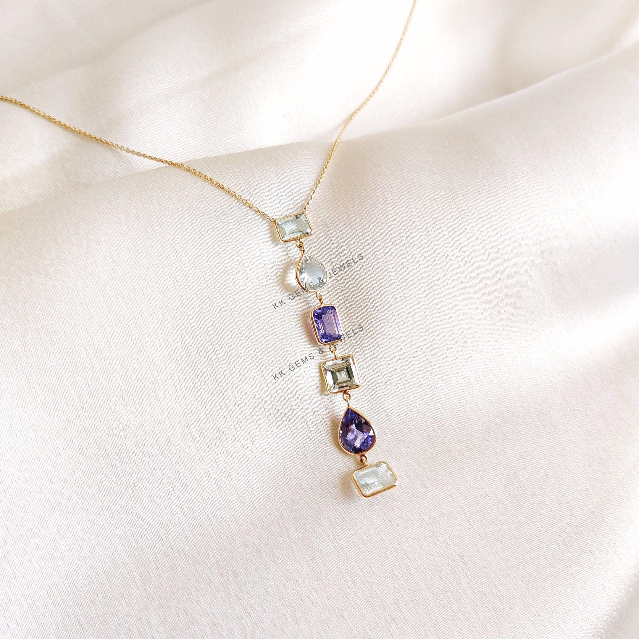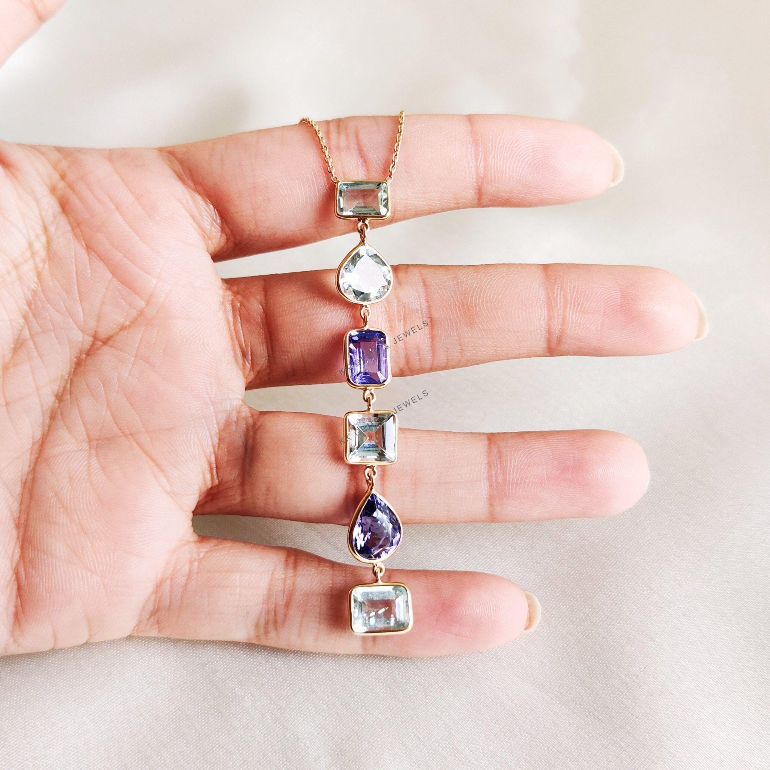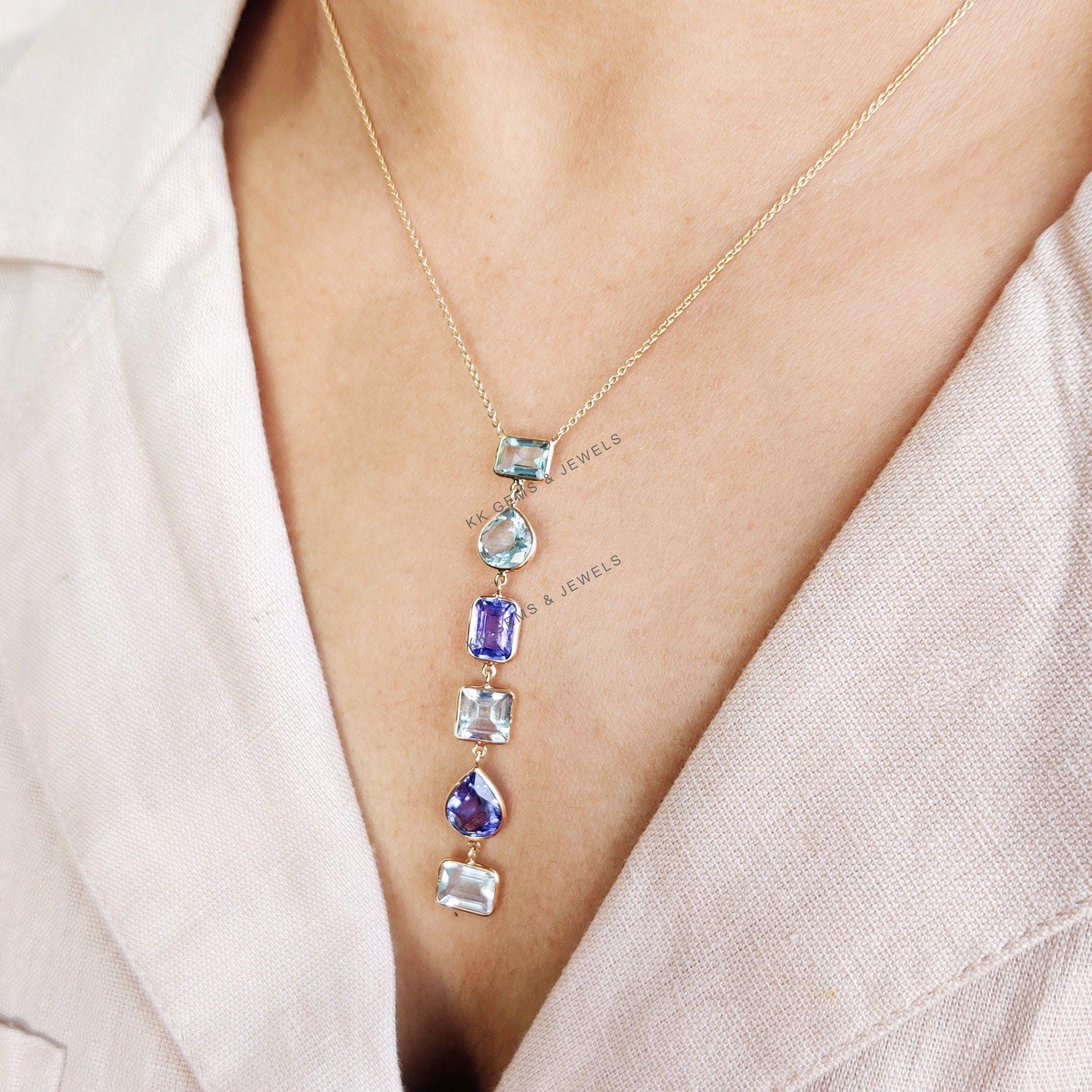 This stunning necklace is set in 14K Solid Yellow Gold with Natural Tanzanite and Aquamarine with utmost precision. It is an unique gemstone necklace for nearly every occasion and is completely hassle-free jewelry. ✓ ABOUT GEMSTONE Tanzanite is a mesmerizing…