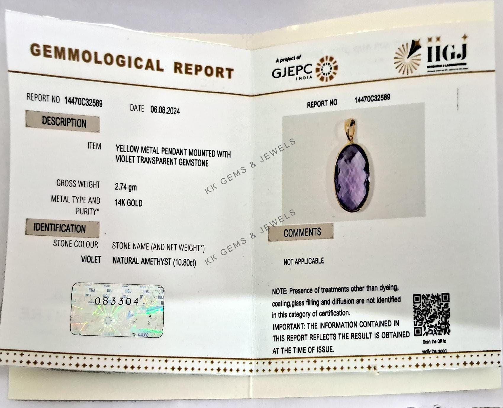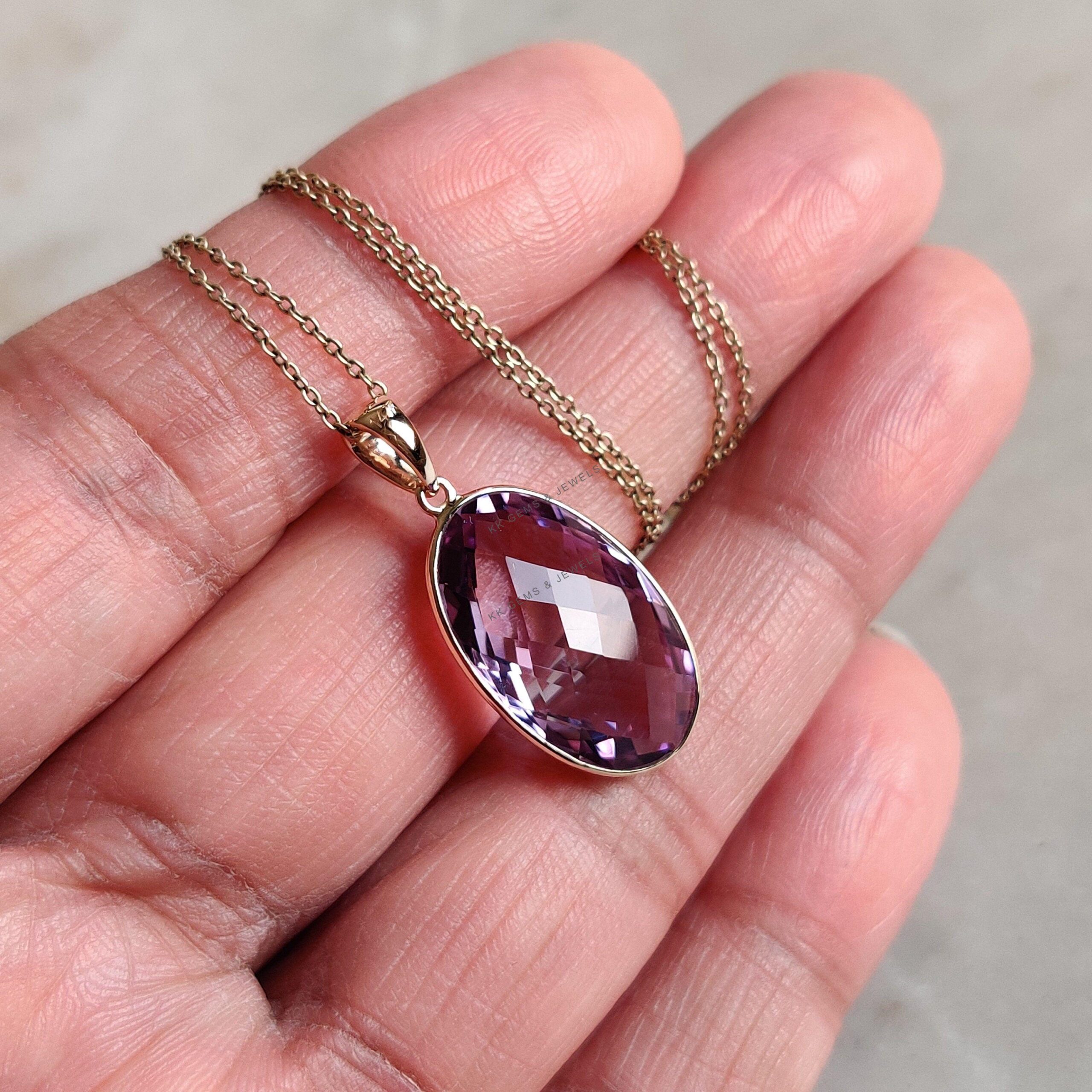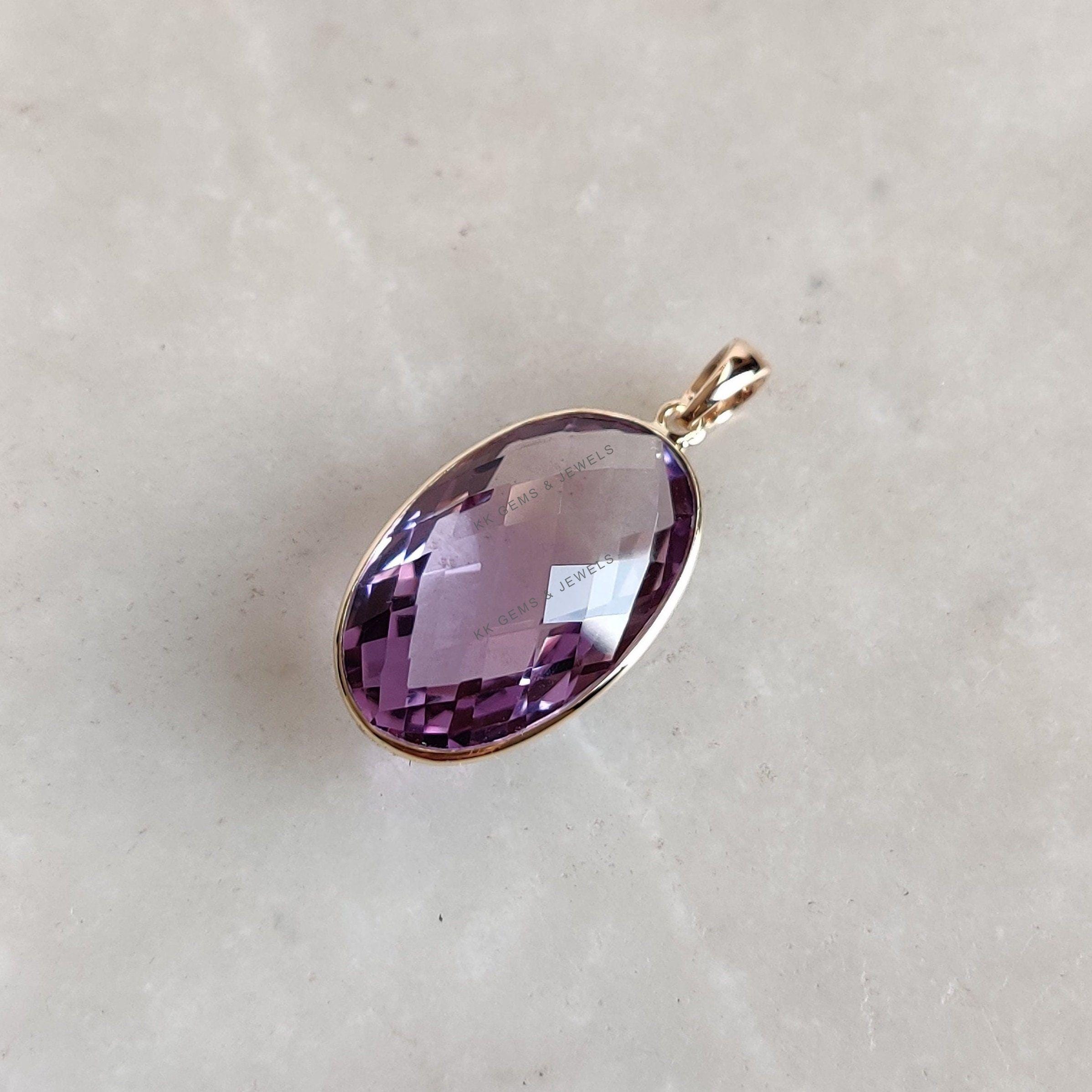This stunning pendant is set in 14K Solid Yellow Gold with Natural Purple Amethyst with utmost precision. It is an unique gemstone pendant for nearly every occasion and is completely hassle-free jewelry.