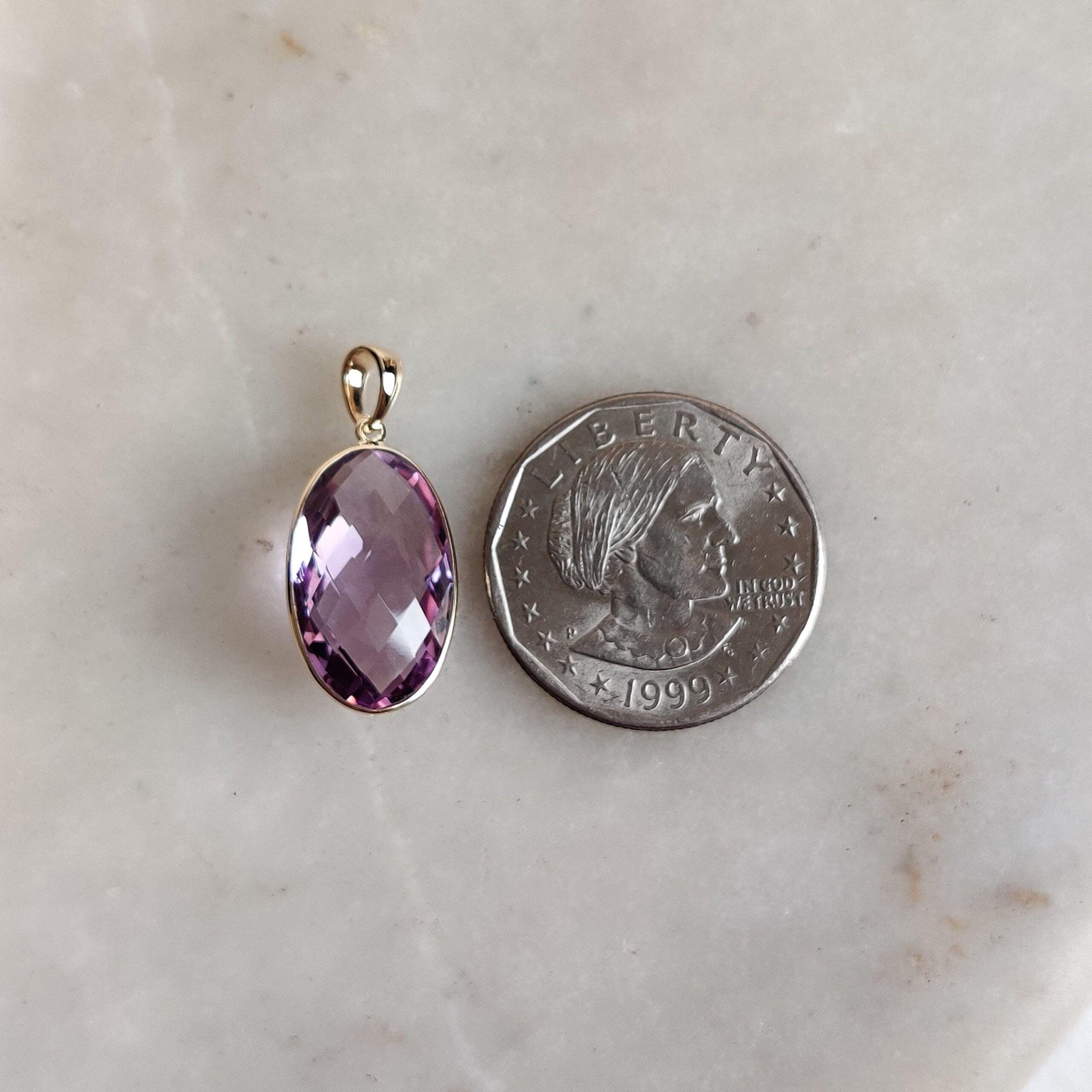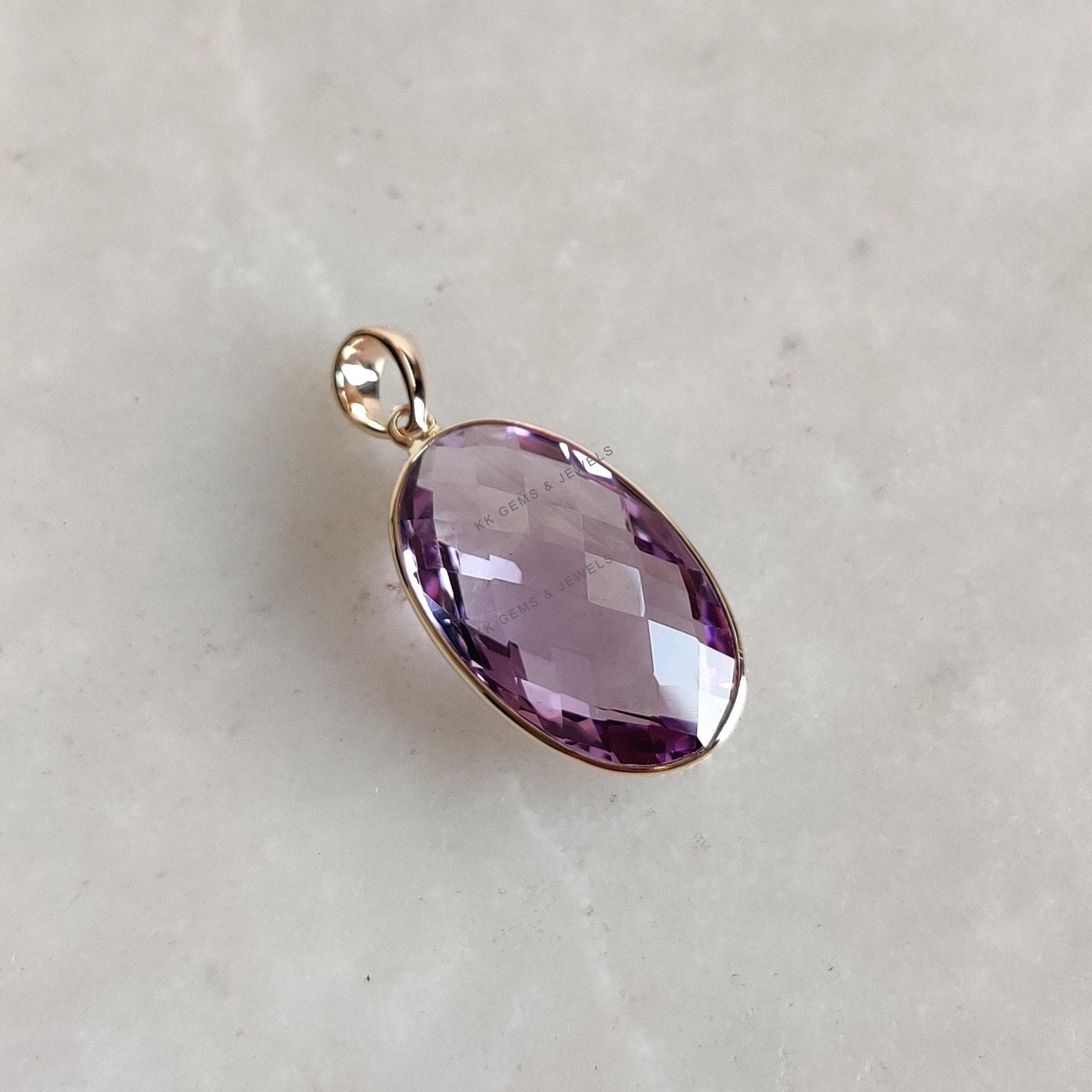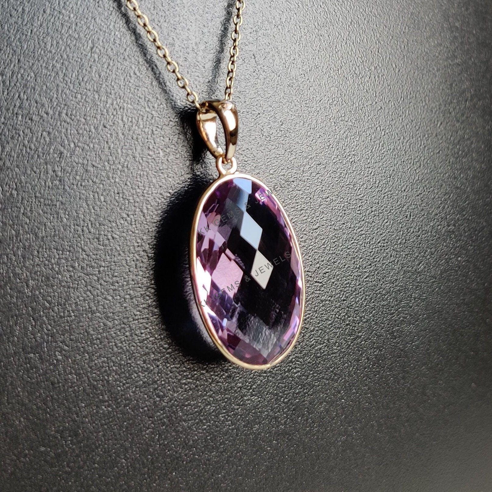 This stunning pendant is set in 14K Solid Yellow Gold with Natural Purple Amethyst with utmost precision. It is an unique gemstone pendant for nearly every occasion and is completely hassle-free jewelry.