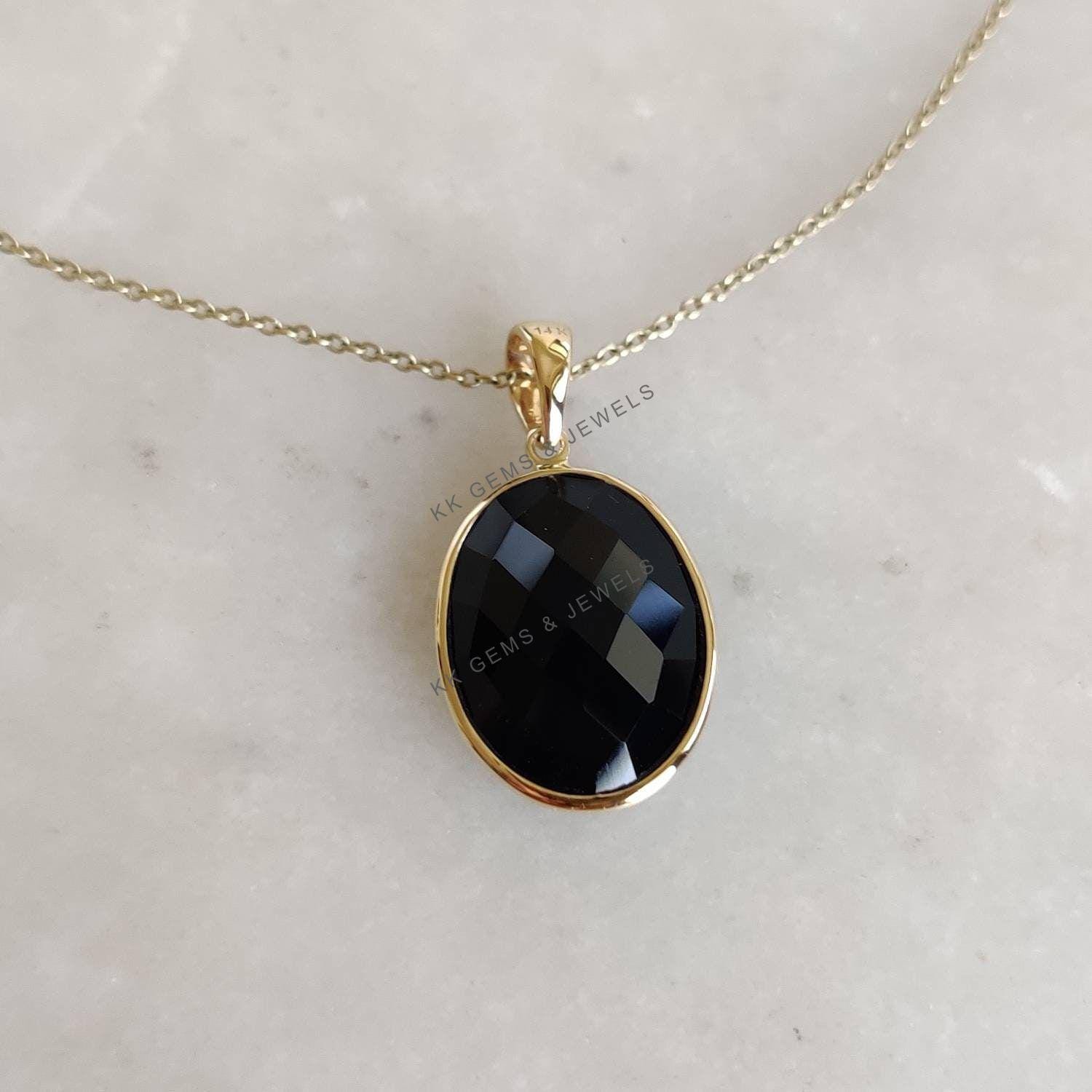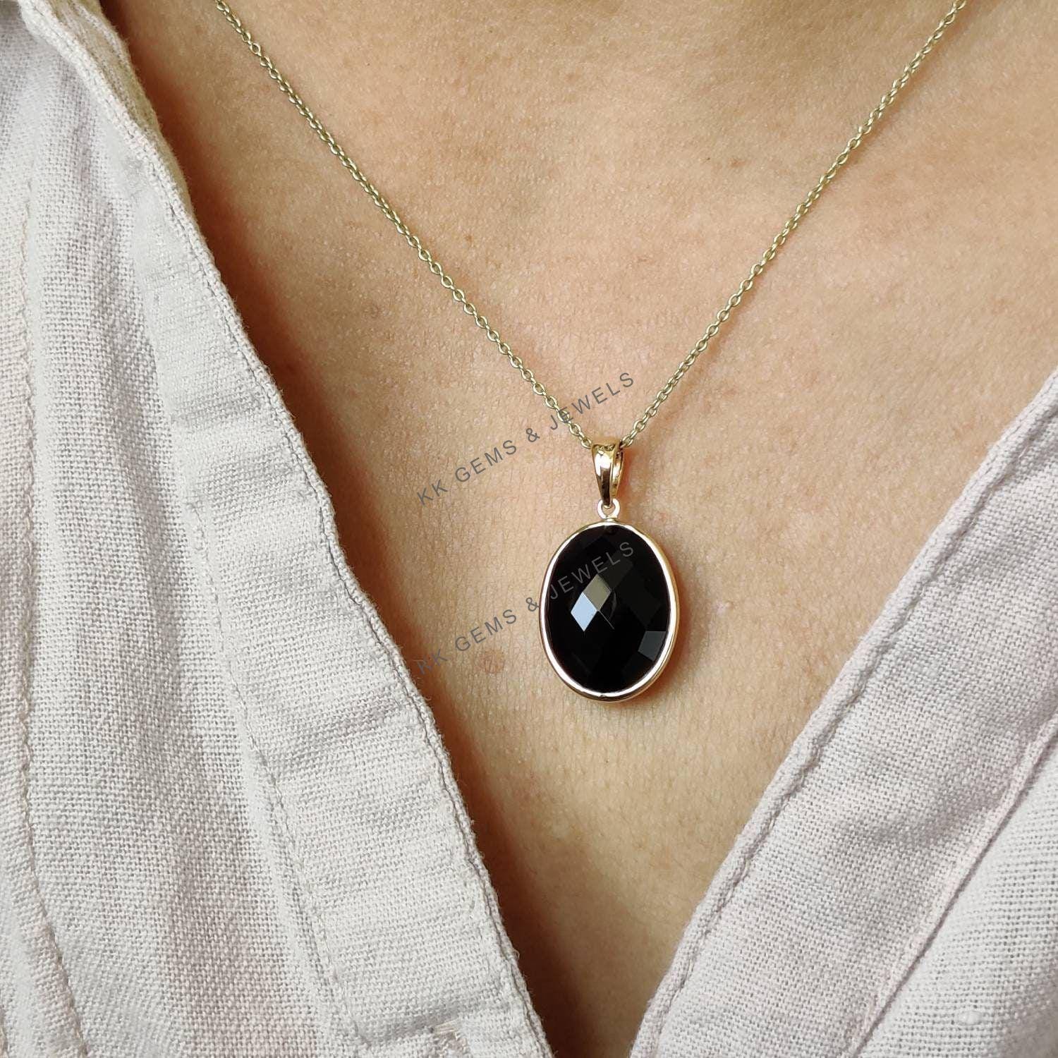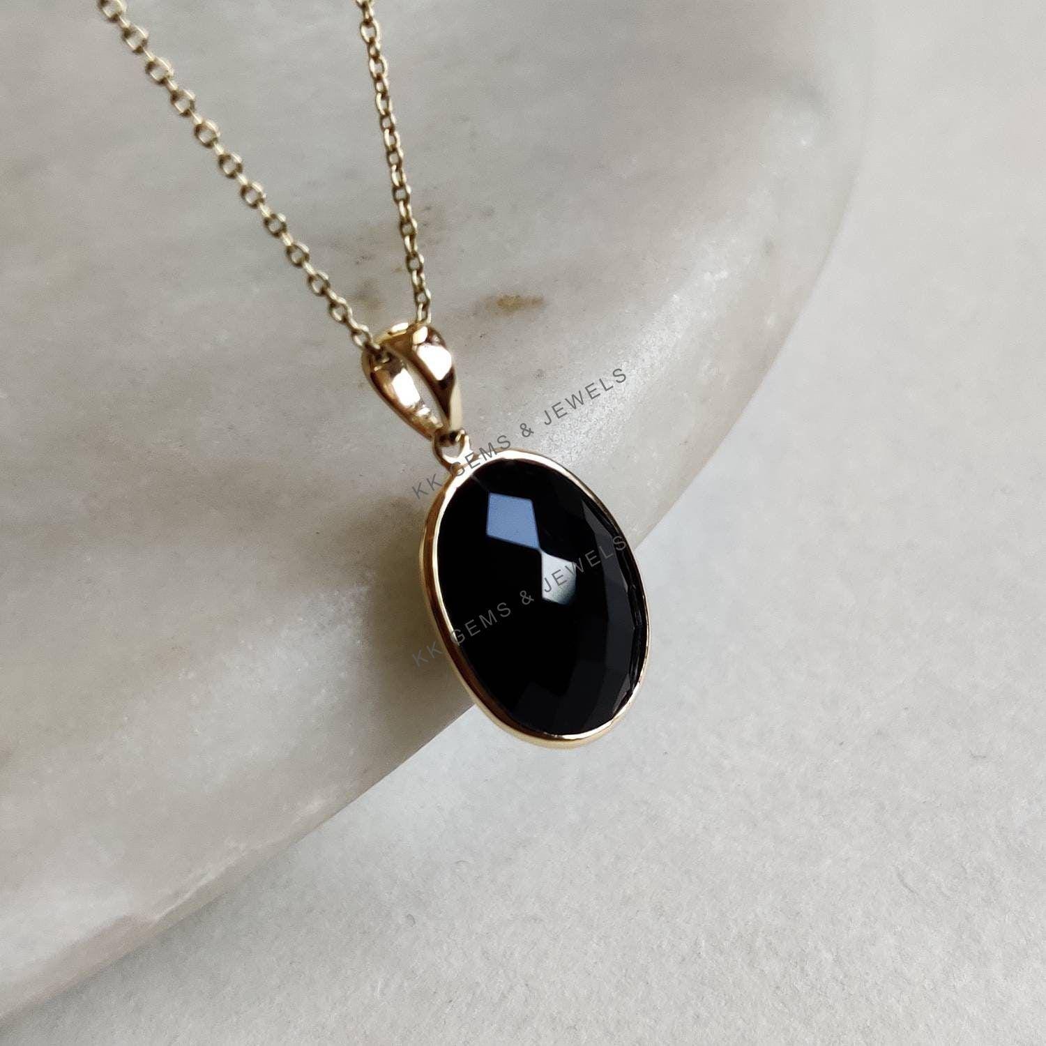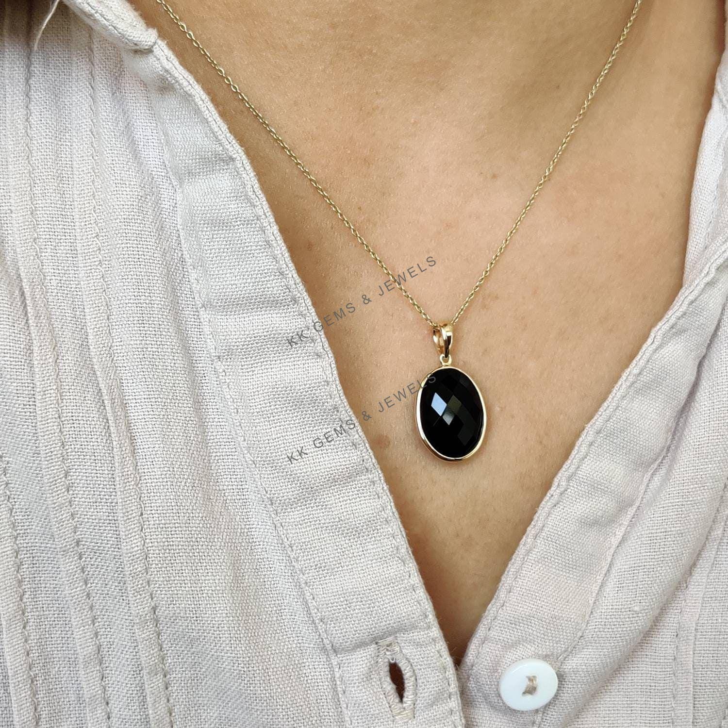 3 reviews for Oval Briolette Natural Black Onyx Birthstone Pendant Set in 14K Solid Gold